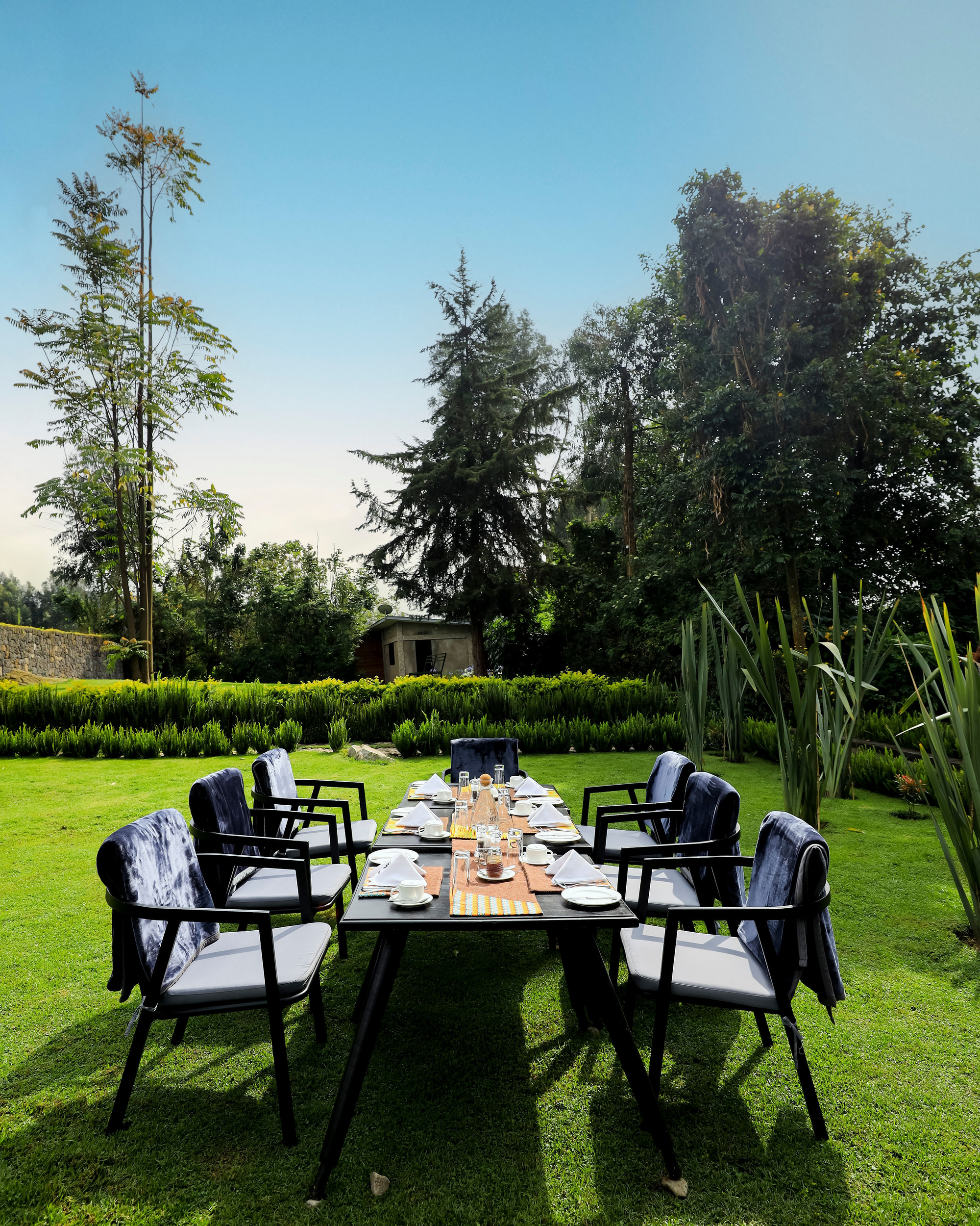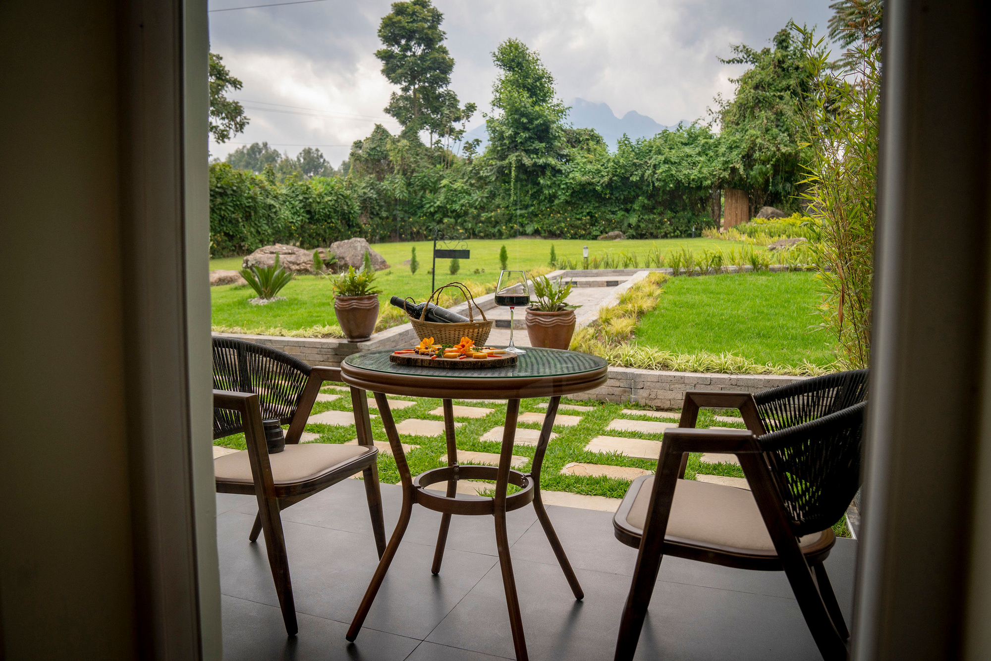 Die Lodge ist von einem gepflegten Garten mit Beeten und Rasenflächen umgeben und liegt im Distrikt Musanze, in der Kinigi Provinz, nordwestlich von Kigali. Sie befindet sich nur etwa 1 km vom Virunga National Park entfernt und ebenfalls 1 km oder etwa 5 Minuten von den Headquarters des Volcanoes National Park, wo die Gorilla Tracks beginnen. Die Umgebung der Lodge besteht überwiegend aus landwirtschaftlich genutzten Flächen.