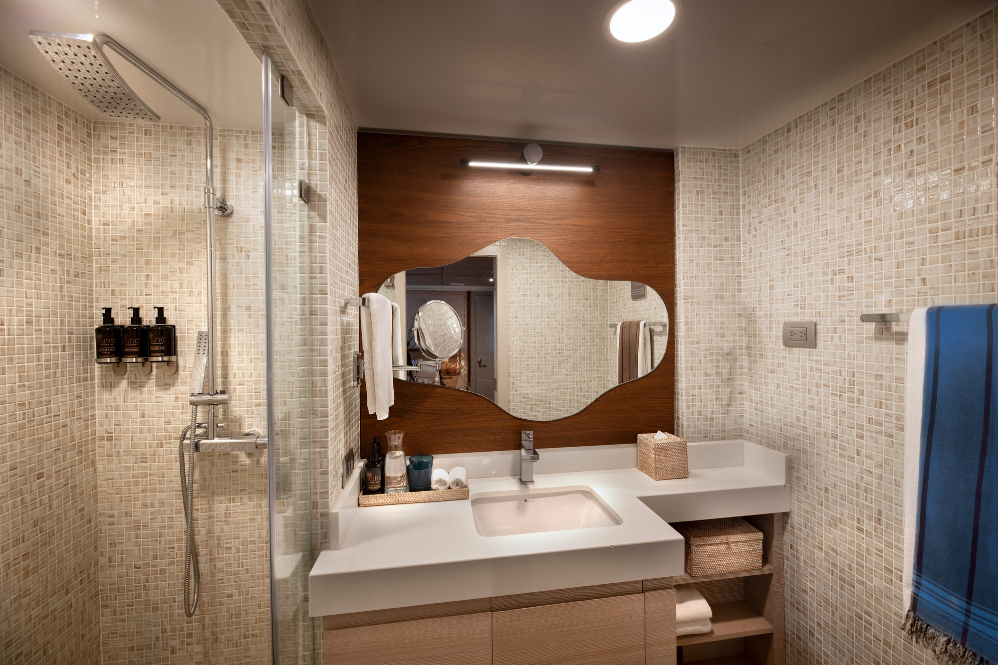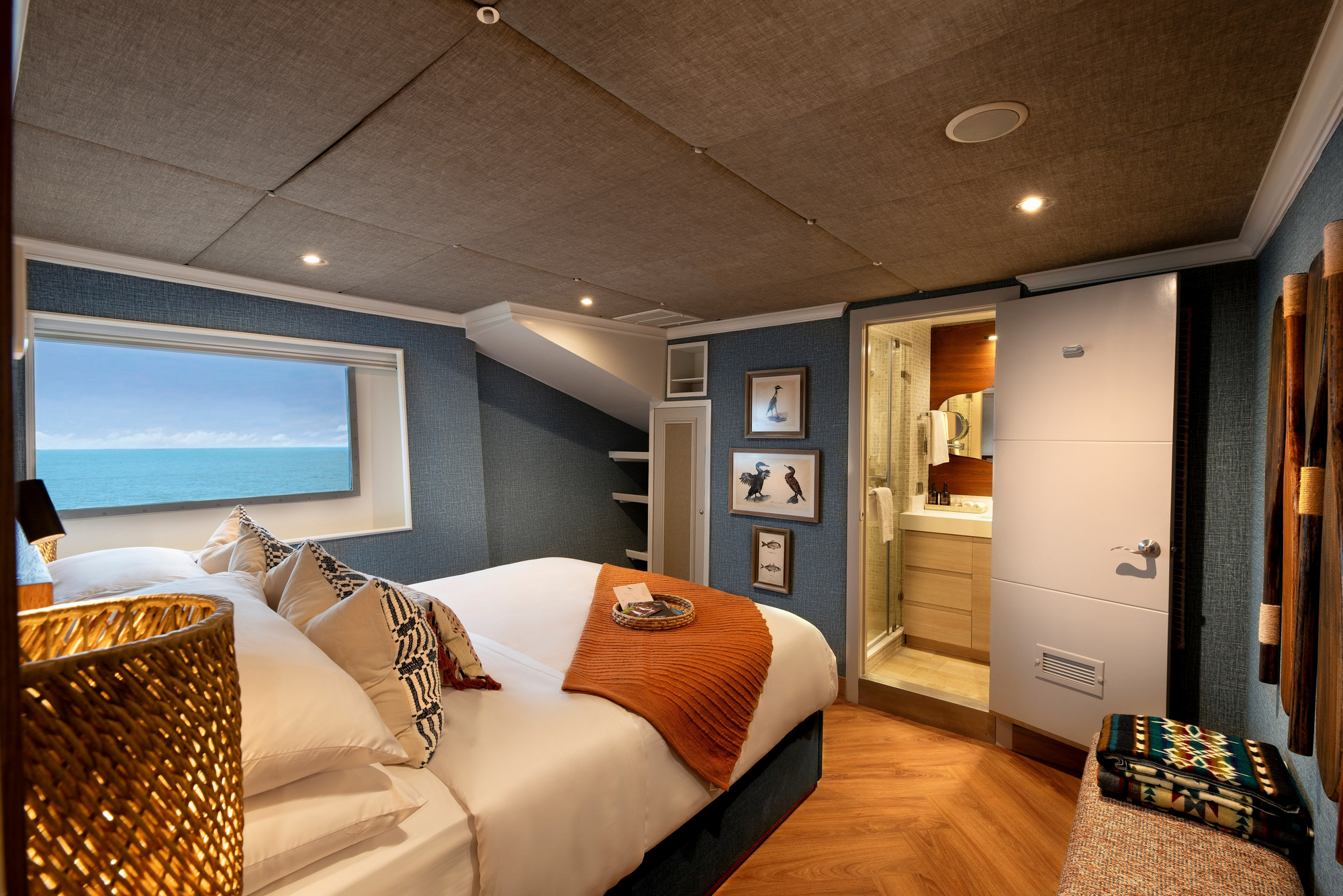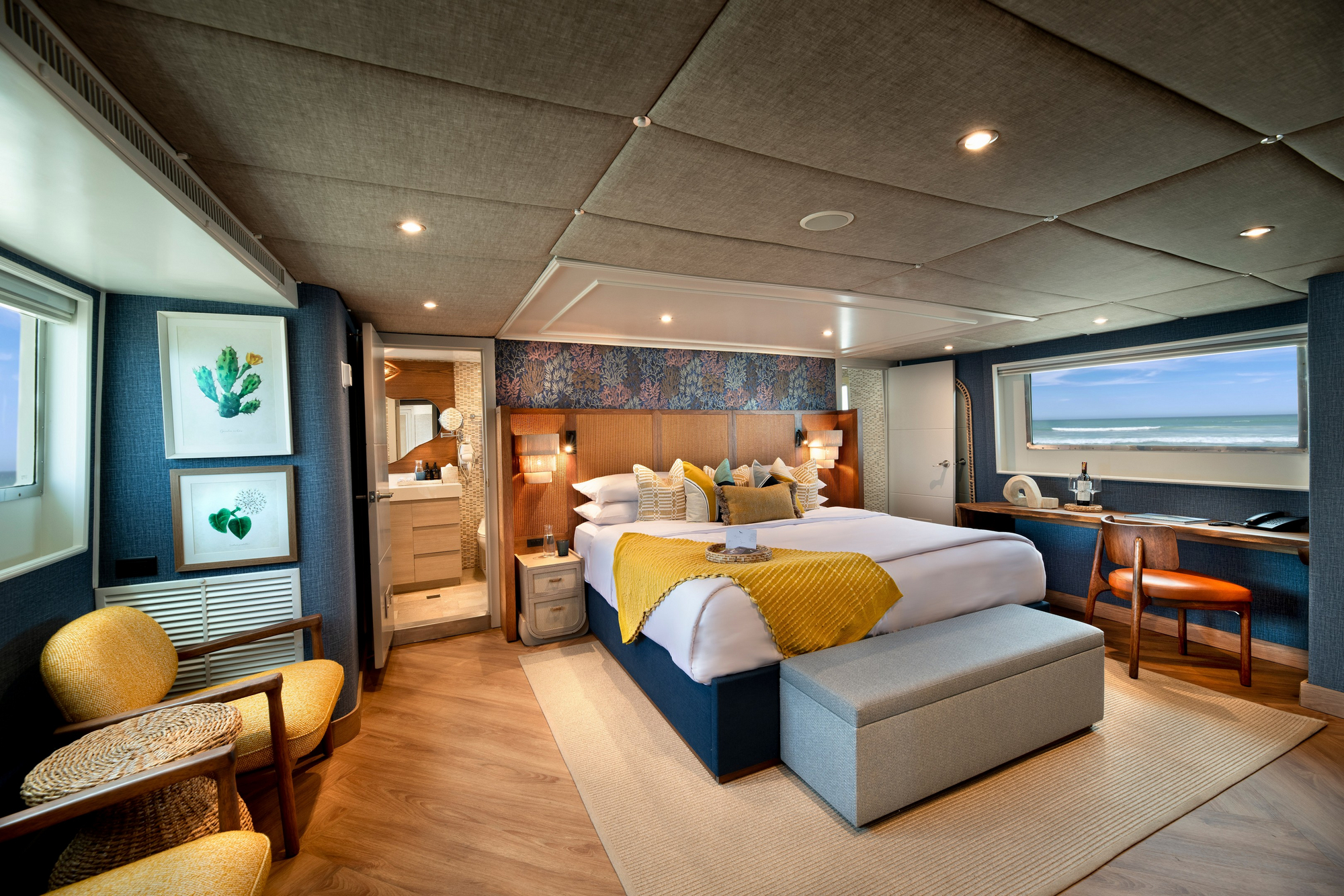 Die Yacht verfügt über geräumige Suiten mit großen Fenstern oder Panoramablick. Jede Kabine ist mit festen Betten, Klimaanlage, eigenem Bad mit Dusche sowie Stauraum ausgestattet. Die höheren Kabinenkategorien bieten mehr Platz und teilweise separate Sitzbereiche. Die Gestaltung ist hell, funktional und hochwertig mit nautischen Elementen. Deck 3 (Upper) 1 x Deluxe View Suite Die größte Suite mit Panoramafenstern. Deck 2 (Middle) 2 x Luxury View Cabin Große Fenster mit direktem Meerblick. Deck 1 (Lower) 1 x Superior Suite Sehr geräumig, mit Bullaugen. Deck 1 (Lower) 2 x Luxury Cabin Klassische Kabinen mit Bullaugen.