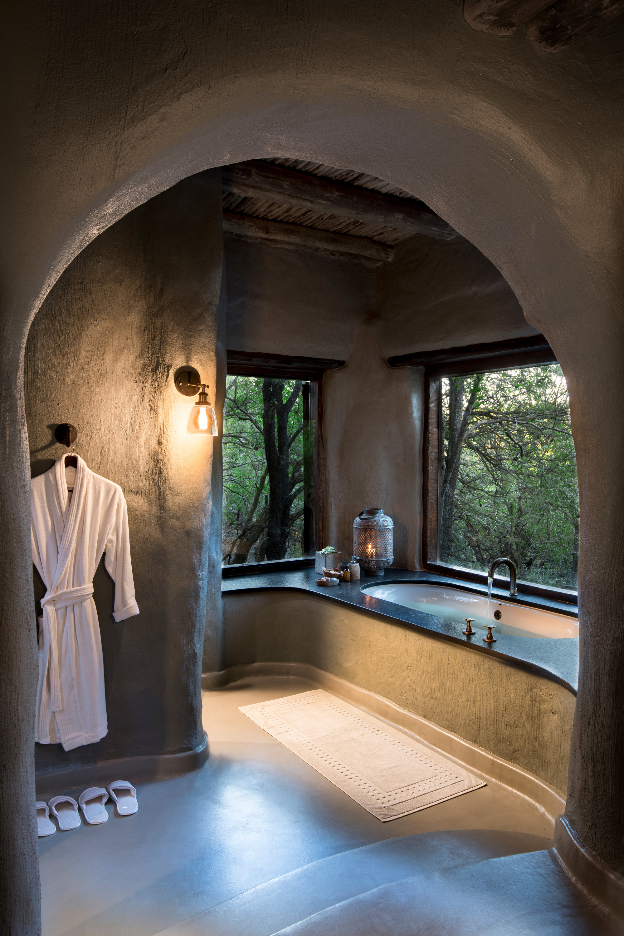 Die sechs freistehenden Suiten sind in den Fels gebaut und bieten maximale Privatsphäre. Jede Suite verfügt über ein Kingsize-Bett, Lounge-Bereich, Klimaanlage, Moskitonetze sowie eine private Terrasse mit eigenem Plunge Pool und weitem Blick über das Reservat. Die Badezimmer sind großzügig gestaltet mit Dusche, Badewanne, WC, Doppelwaschbecken und fließendem Warm- und Kaltwasser. Große Glasfronten öffnen die Räume zur Landschaft, während natürliche Materialien und moderne Elemente kombiniert werden.