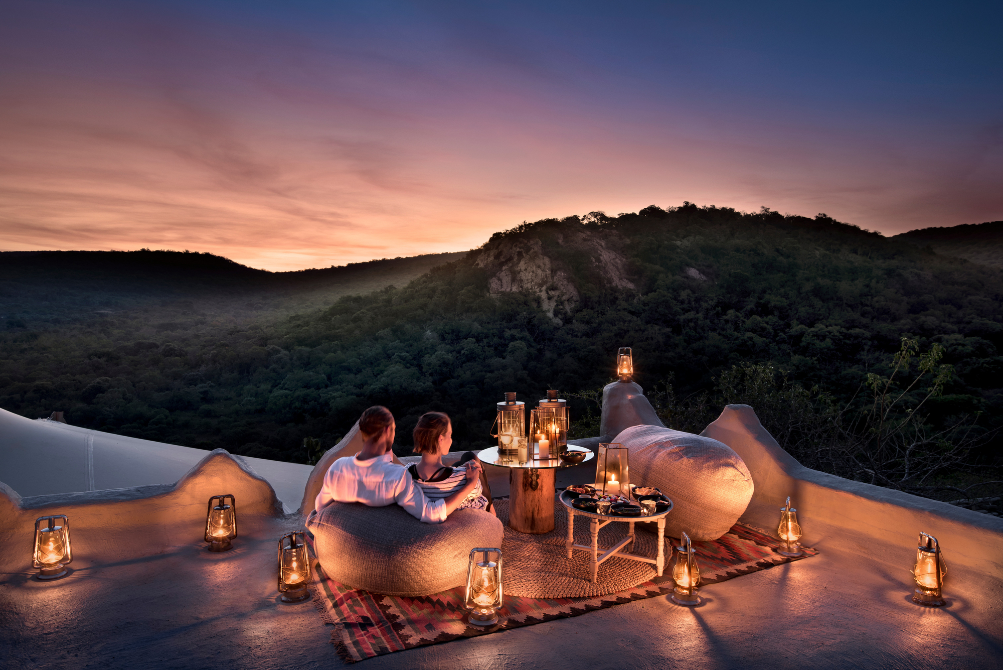 Die Lodge verfügt über einen zentralen Lounge- und Essbereich, Bar, Terrasse mit Panoramablick, Swimmingpool mit Aussicht über das Tal sowie eine Boma für Abendessen im Freien. Spa-Behandlungen werden in den Suiten angeboten. Die Anlage ist kompakt, aber exklusiv gestaltet und über Treppen und Wege in die Felsstruktur integriert. WLAN ist verfügbar.