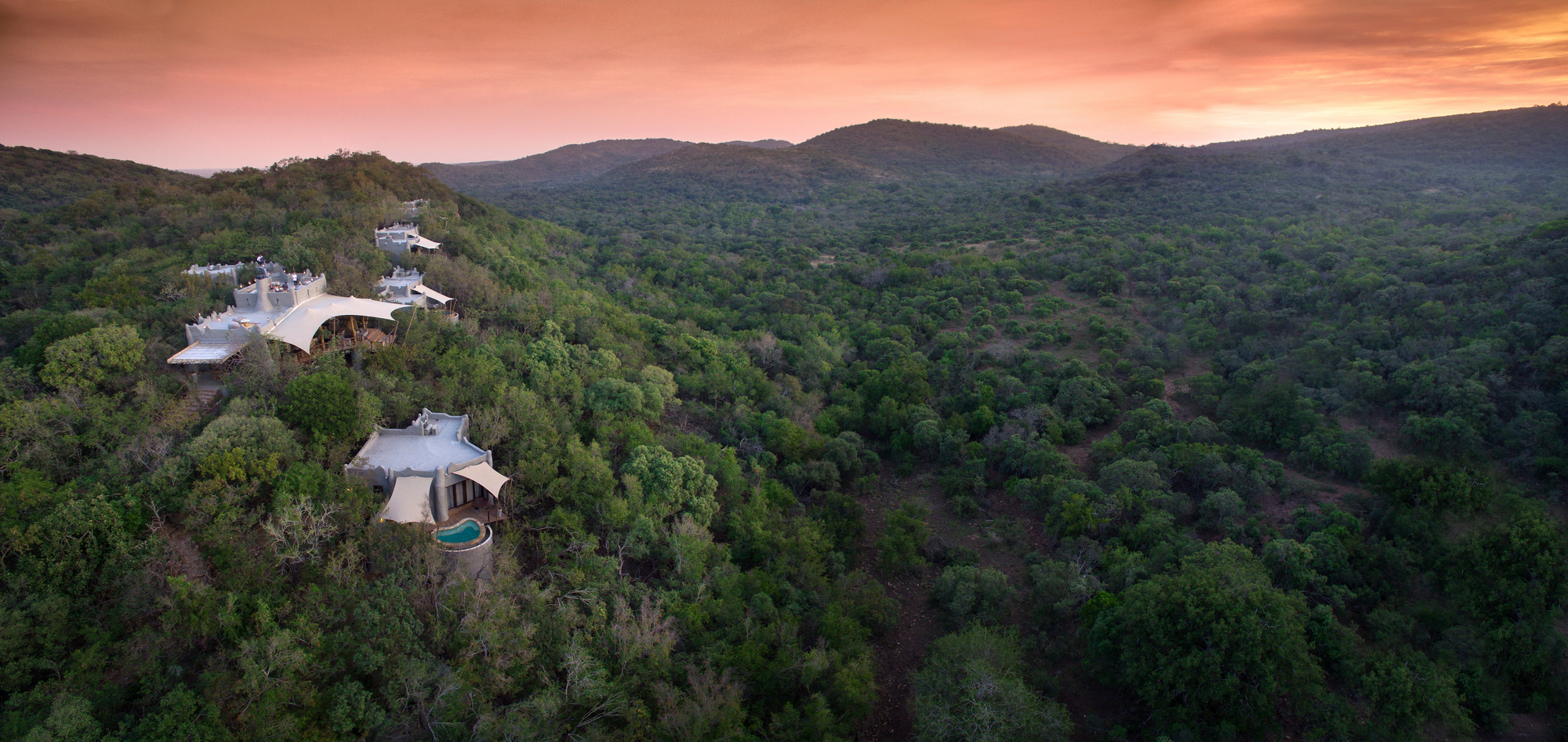 Phinda Rock Lodge liegt im Phinda Private Game Reserve in KwaZulu-Natal im Nordosten Südafrikas und ist spektakulär in eine steile Felswand integriert. Die Suiten sind entlang der Felsen gebaut und bieten weite Ausblicke über ein bewaldetes Tal mit dichtem Busch und vereinzelten offenen Flächen. Direkt unterhalb der Lodge erstreckt sich unberührte Wildnis, in der sich Tiere frei bewegen und regelmäßig gesichtet werden können. Die Umgebung ist geprägt von einer Kombination aus Sandwald, Buschland und offenen Savannen, die sich in unmittelbarer Nähe abwechseln. Durch die erhöhte Lage entsteht ein besonders intensives Naturerlebnis mit Blick über große Teile des Reservats. Trotz der abgeschiedenen Lage befindet sich die Lodge nur etwa eine Stunde vom Indischen Ozean entfernt. Dadurch lassen sich klassische Safari-Erlebnisse mit Ausflügen zu den Stränden und in das iSimangaliso Wetland Park kombinieren, einem UNESCO-Weltnaturerbe.