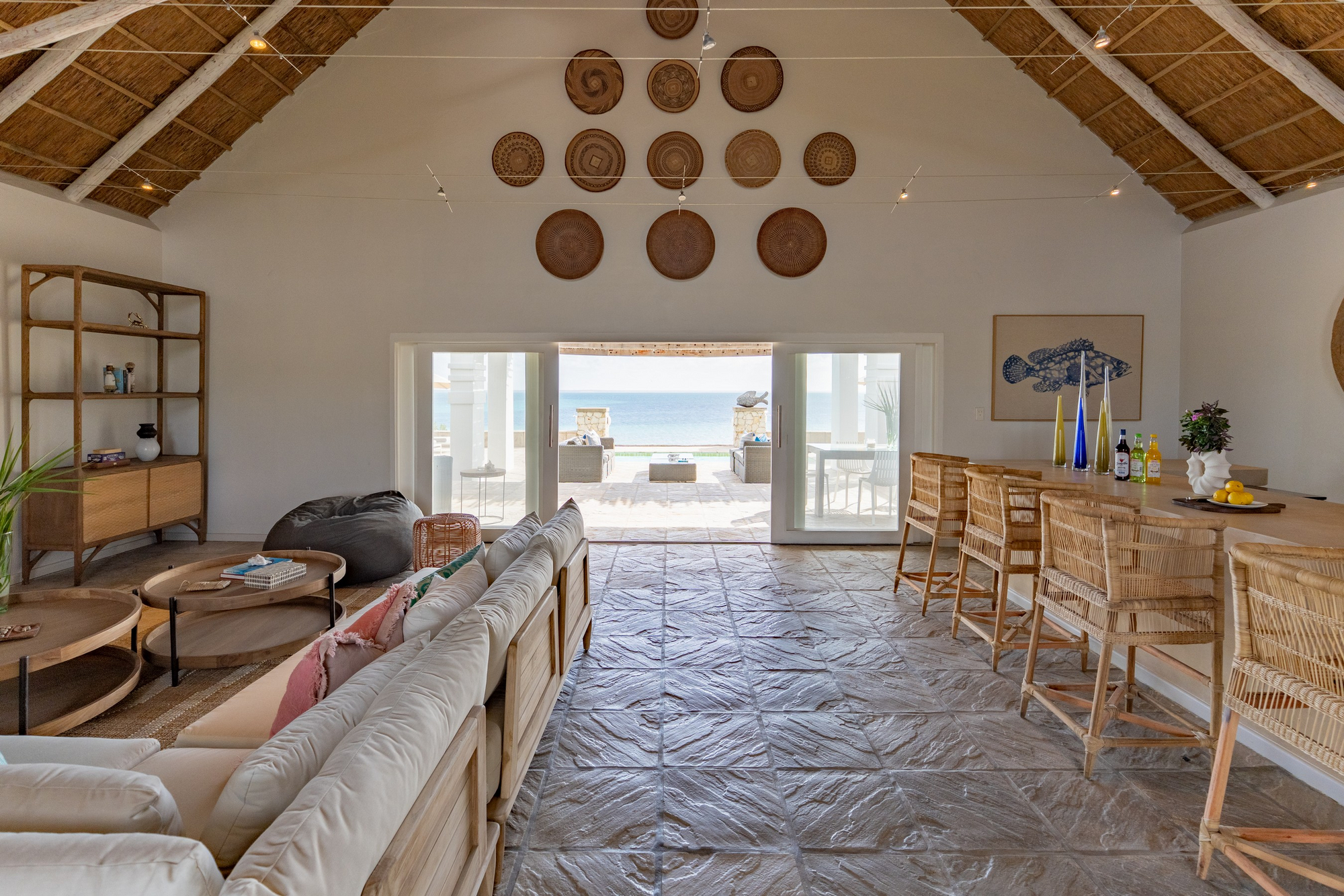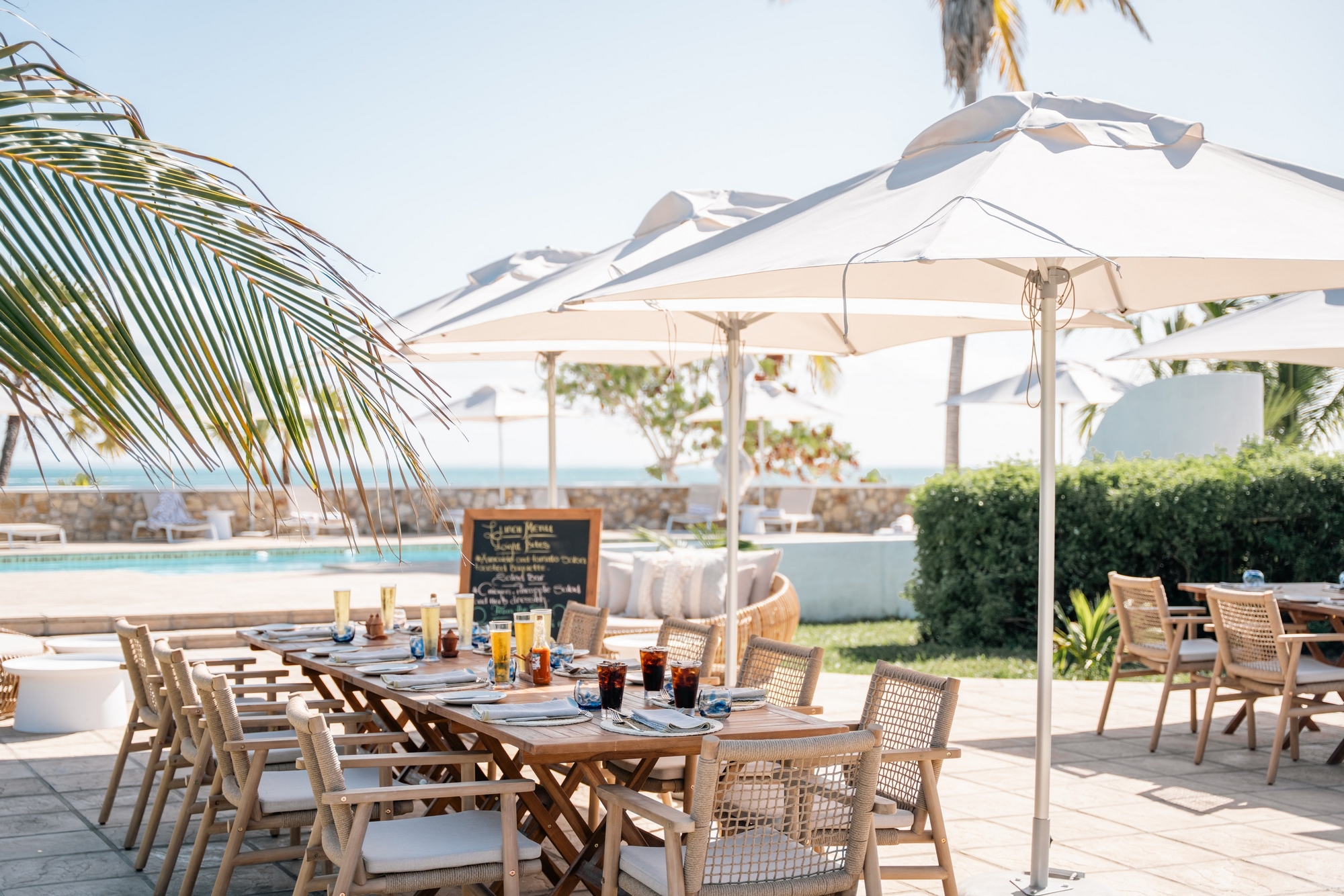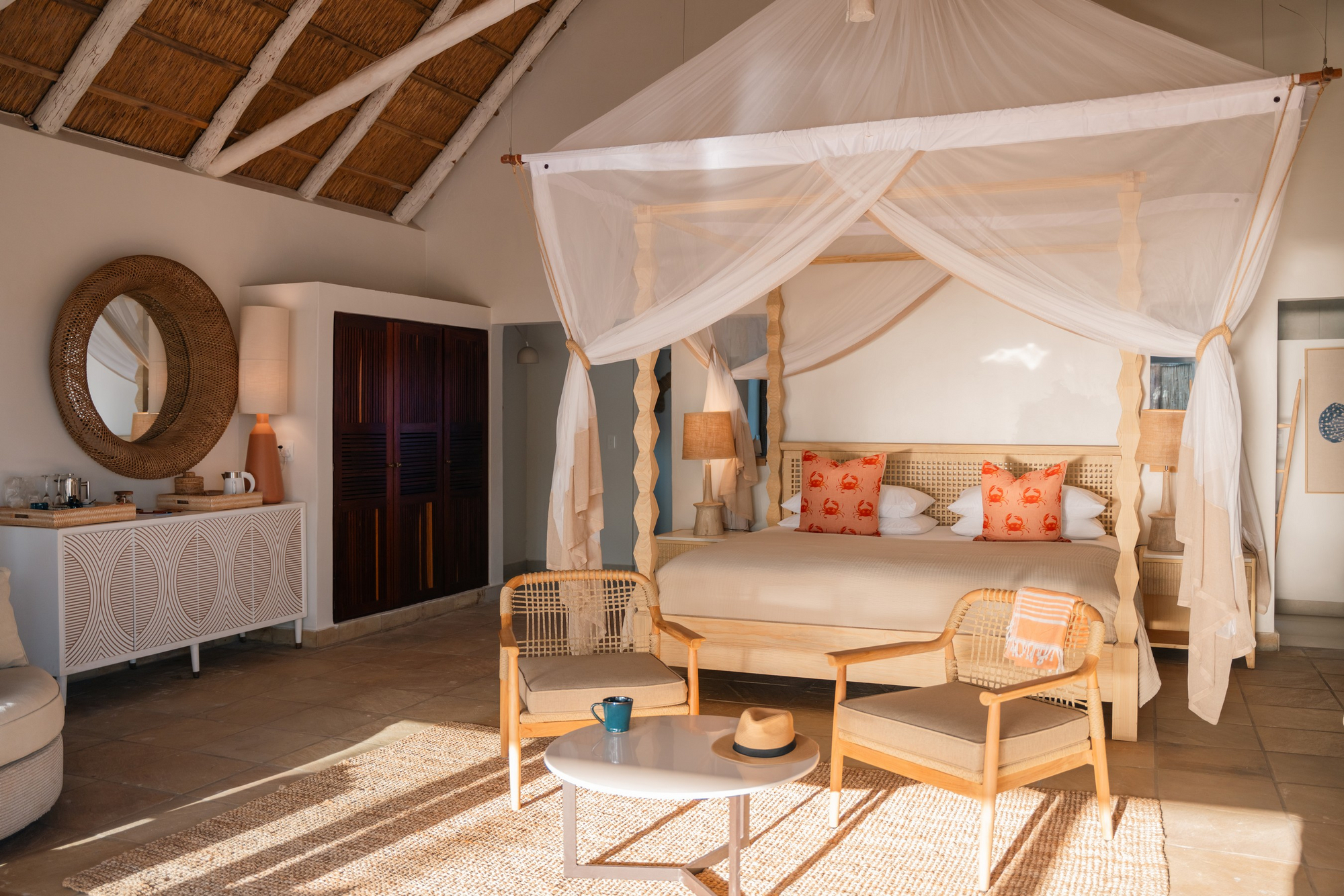 Die Gäste haben einen persönlichen Butler Host der die Mahlzeiten serviert, während die Küche Gerichte aus saisonalen und frischen Zutaten zubereitet. Auf besondere Wünsche nimmt das Küchenteam gerne Rücksicht. Jede Mahlzeit wird an einem anderen Ort serviert, wobei die Gäste am Strand, im Jelly Fish Restaurant, im Peri Peri Beach Club, auf der eigenen Terrasse oder im Weinkeller essen können. Tagsüber gibt es auch die Möglichkeit ein privates Picknicks auf Paradise Island, North Point oder Wildside zu buchen.Es gibt saisonale und nachhaltig gefangene Meeresfrüchte – Hummer, Garnelen, Tintenfisch, Krabben und verschiedene Fischsorten. Diese werden von lokalen Fischern geliefert. Alle Gerichte werden mit einer Auswahl an Weinen serviert.