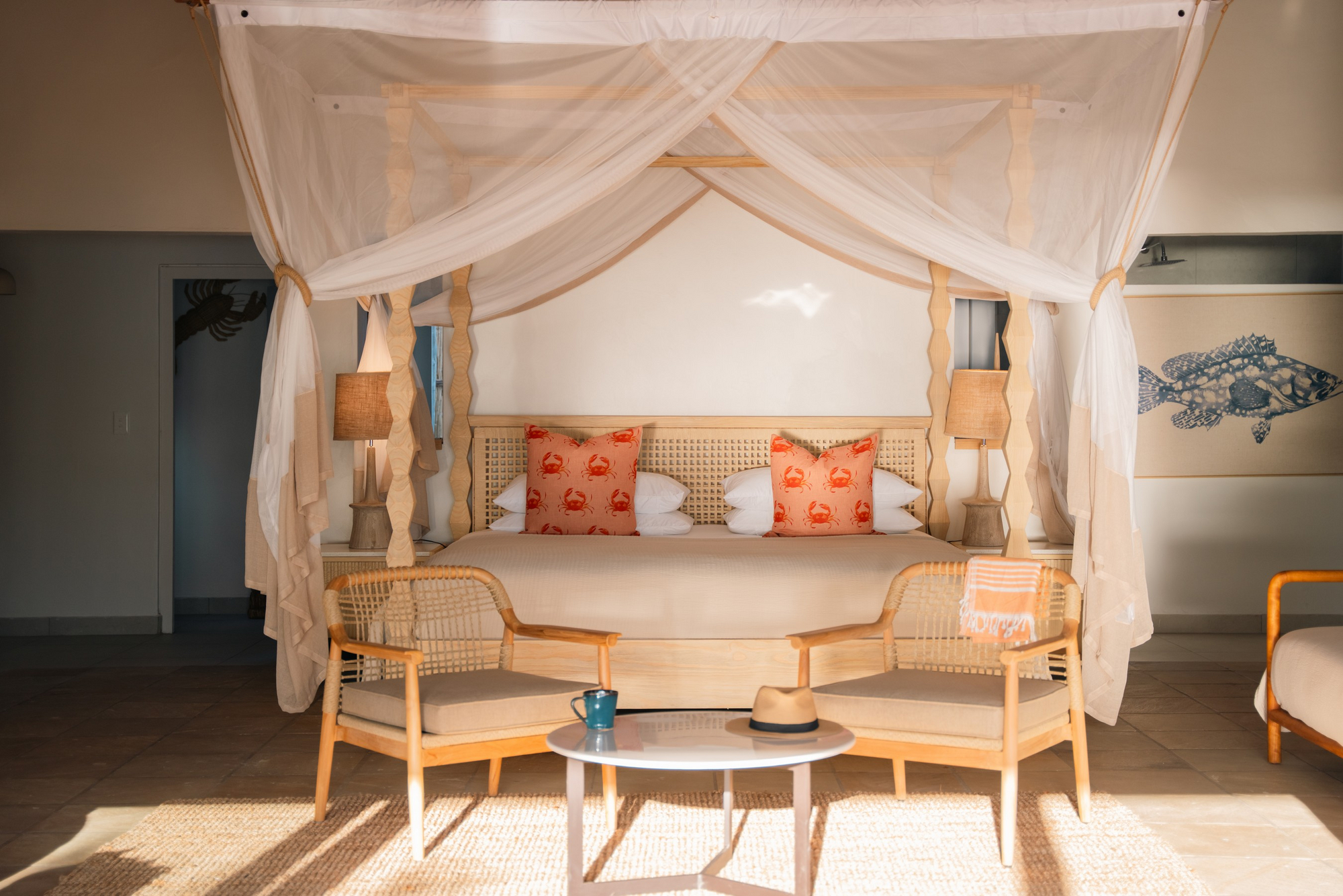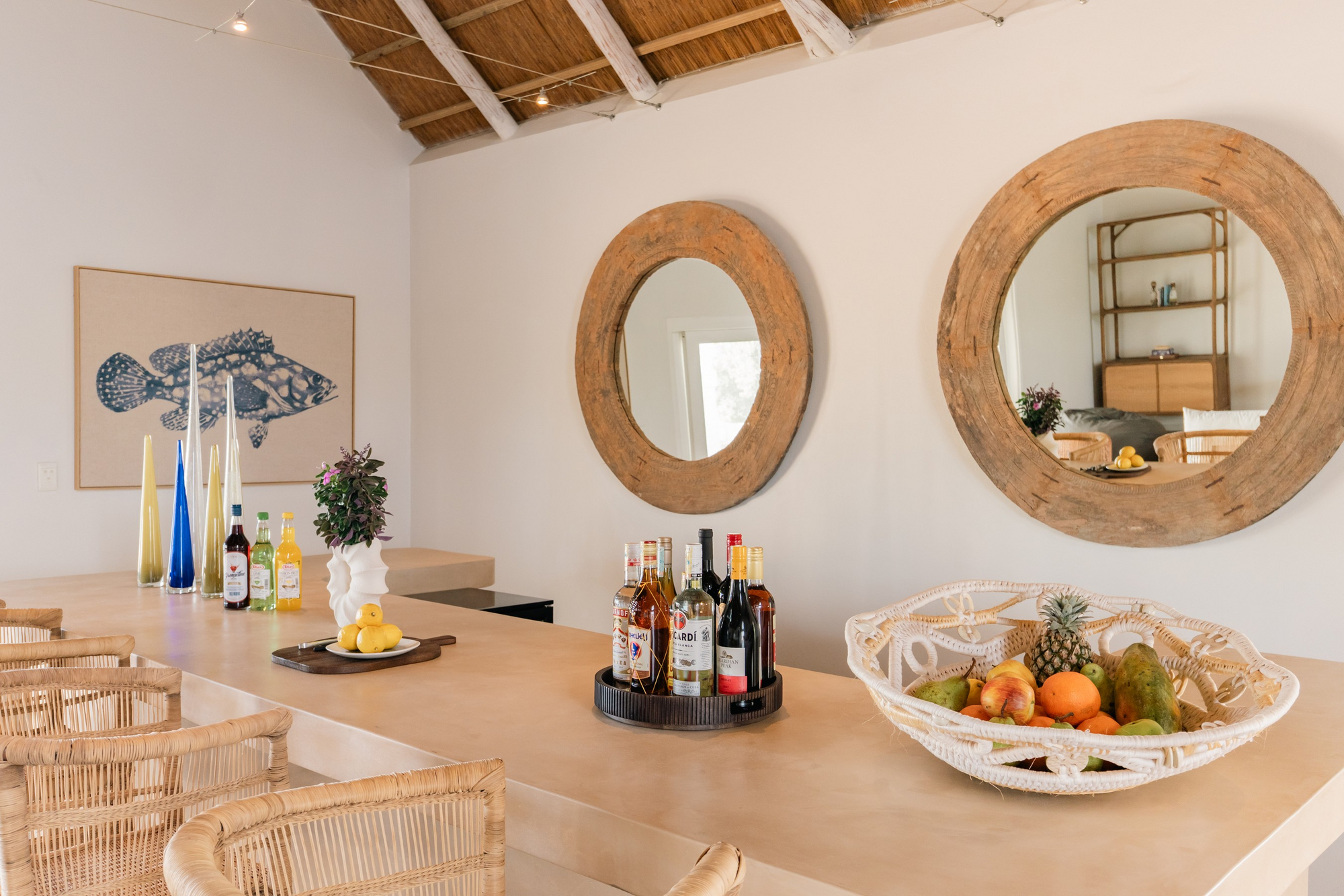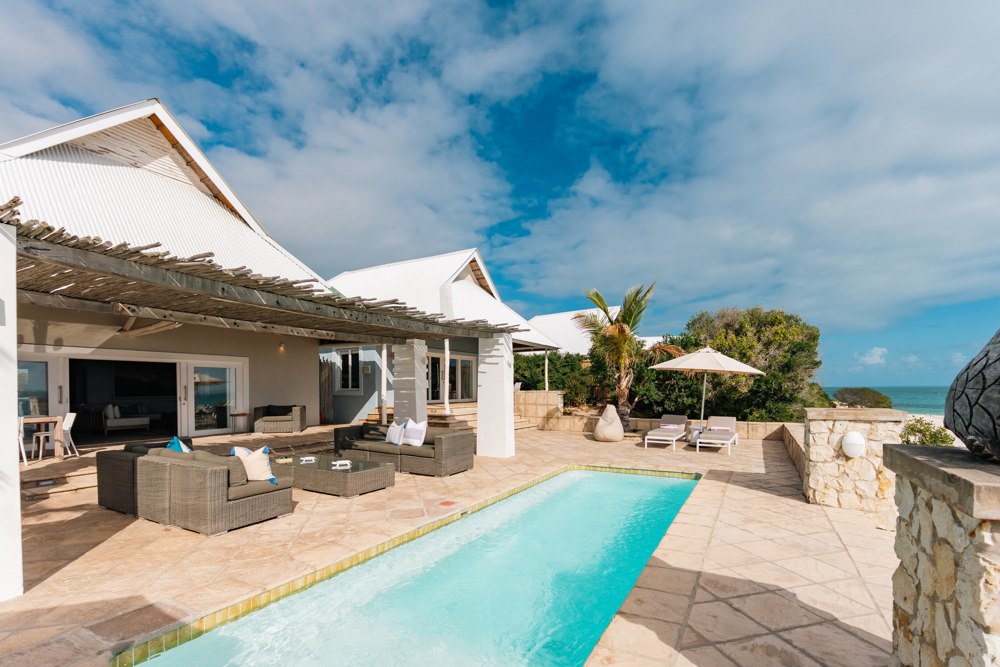 Die Gäste haben einen persönlichen Butler Host der die Mahlzeiten serviert, während die Küche Gerichte aus saisonalen und frischen Zutaten zubereitet. Auf besondere Wünsche nimmt das Küchenteam gerne Rücksicht. Jede Mahlzeit wird an einem anderen Ort serviert, wobei die Gäste am Strand, im Jelly Fish Restaurant, im Peri Peri Beach Club, auf der eigenen Terrasse oder im Weinkeller essen können. Tagsüber gibt es auch die Möglichkeit ein privates Picknicks auf Paradise Island, North Point oder Wildside zu buchen.Es gibt saisonale und nachhaltig gefangene Meeresfrüchte – Hummer, Garnelen, Tintenfisch, Krabben und verschiedene Fischsorten. Diese werden von lokalen Fischern geliefert. Alle Gerichte werden mit einer Auswahl an Weinen serviert.