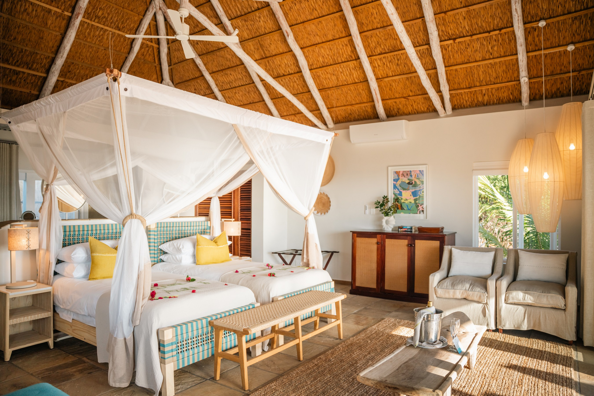 Azura Marlin Beach verfügt über zehn Villen, die alle einen Meerblick und direkten Zugang zum Strand bieten. Die geräumigen und lichtdurchfluteten Villen verfügen über einen eigenen Butler. Es gibt verschiedene Zimmertypen, darunter die Beach Villa, Beach Villa Grande und Villa Vista. Die sechs Beach Villas (jeweils 100 m²) liegen nur wenige Schritte vom Meer entfernt und bieten Meerblick, Kingsize- oder Einzelbetten mit Moskitonetzen sowie Innen- und Außenduschen. Jede Villa verfügt über eine private Terrasse. Mit einer Fläche von 132 m² bieten die Beach Villa Grandes etwas mehr Platz und eignen sich daher besonders für Familien oder Paare. Sie verfügen über den gleichen Komfort wie die Beach Villas, bieten Platz für zwei Kinder im Wohnbereich und liegen in der Nähe des Hauptbereichs des Hotels. Die Villa Vista ist 380 m² groß und bietet damit Platz für bis zu vier Gäste in zwei Schlafzimmern mit eigenem Bad. Dazu gehören ein großer Innenbereich mit Ess- und Wohnbereich sowie ein privater Pool.