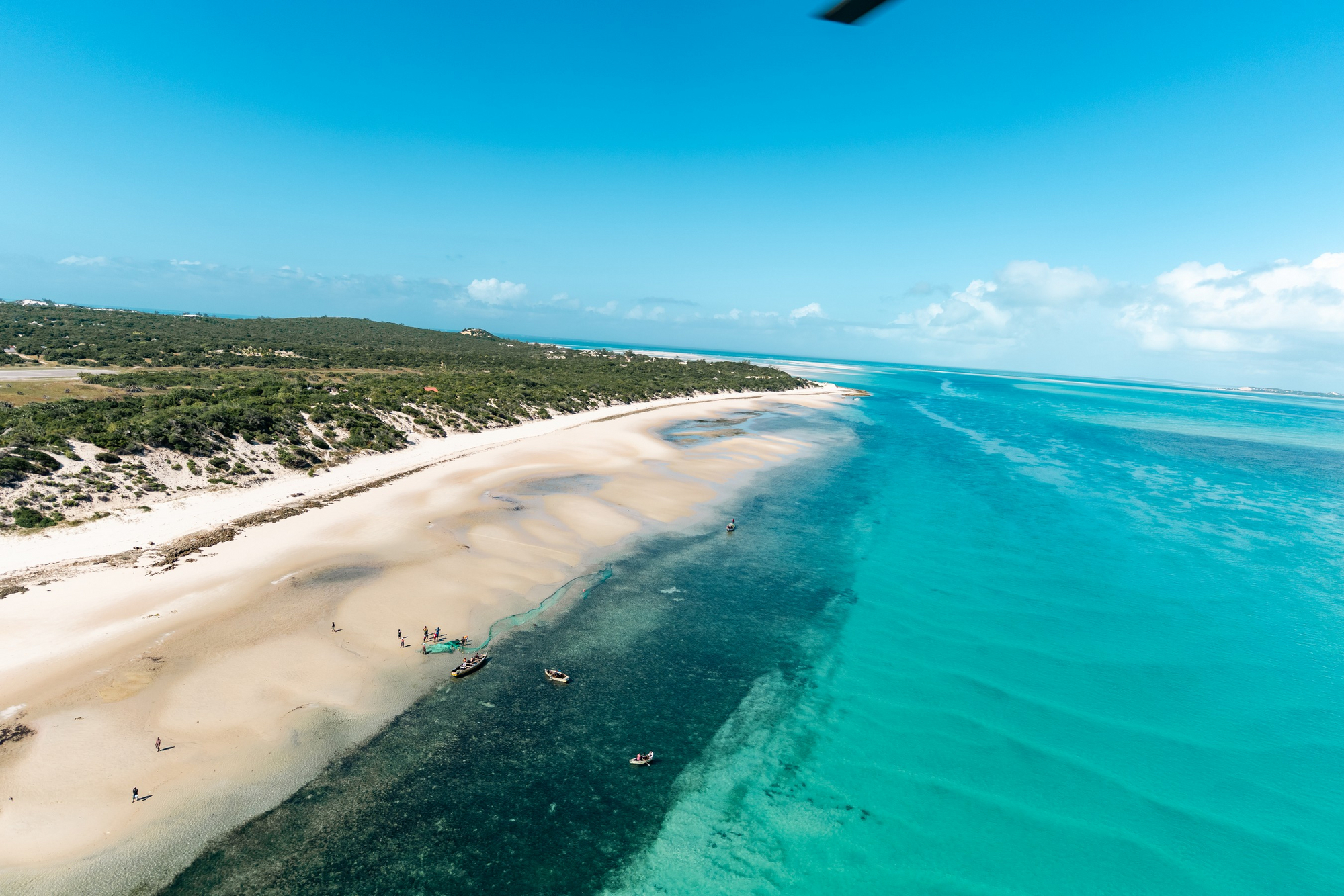 Der nächstgelegene Flughafen ist der Vilanculos International Airport (VNX) auf dem mosambikanischen Festland. Von Johannesburg (OR Tambo International Airport) gibt es tägliche Verbindungen mit Airlink, die rund 80 Minuten dauern. Auch vom Kruger Mpumalanga Airport (MQP) bestehen Flüge, die sich ideal für eine Kombination aus Safari und Strandaufenthalt eignen. Von Juli bis Januar sind diese Verbindungen direkt, während sie im restlichen Jahr über Johannesburg führen. Nach der Ankunft in Vilanculos erfolgt der Transfer nach Benguerra Island per Hubschrauberflug.