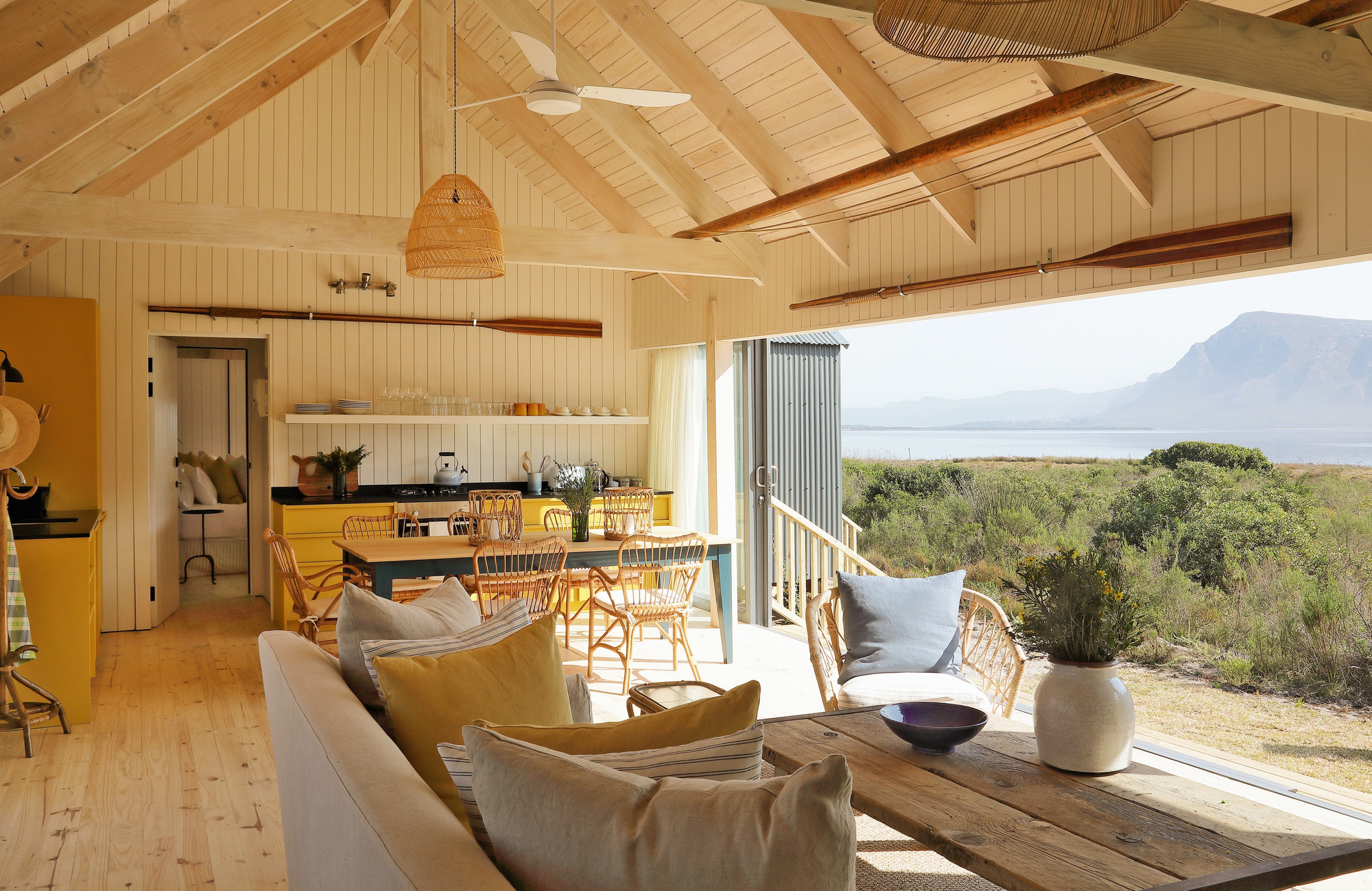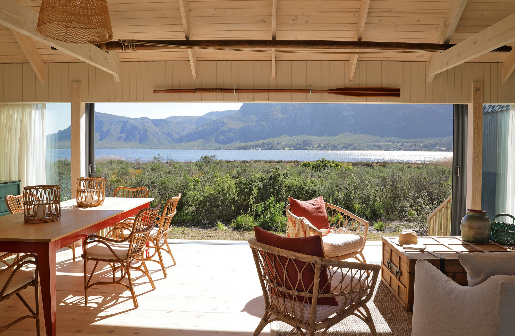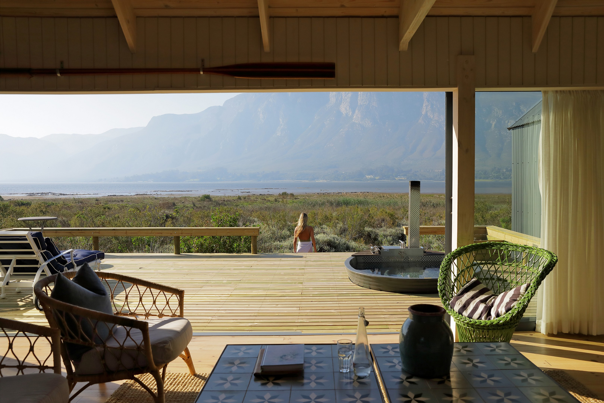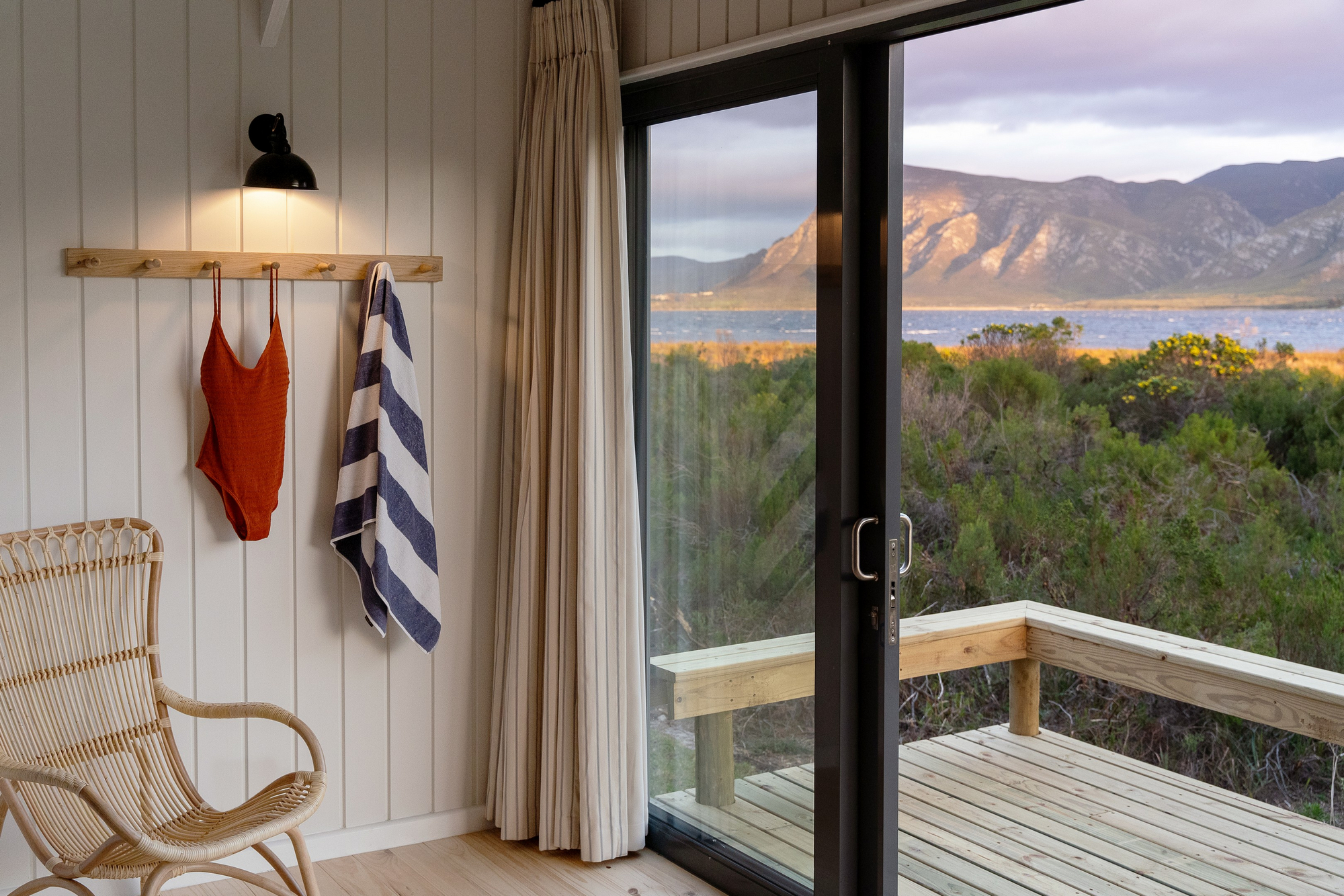 Die Unterkünfte im Coot Club sind weniger klassische Hotelzimmer als vielmehr private Rückzugsorte am Wasser. Jede Einheit ist individuell gestaltet und vermittelt das Gefühl eines persönlichen Ferienhauses. Helle Farben, natürliche Materialien, große Fensterflächen und Terrassen schaffen eine unmittelbare Verbindung zur Lagune, zum Himmel und zur umliegenden Fynbos-Landschaft. Innenräume sind wohnlich, ruhig und bewusst reduziert, mit Fokus auf Komfort, Licht und Aussicht statt formaler Struktur. Viele Unterkünfte öffnen sich direkt zum Wasser oder zu geschützten Gärten und ermöglichen einen fließenden Übergang zwischen Wohnen, Natur und Bewegung im Freien.