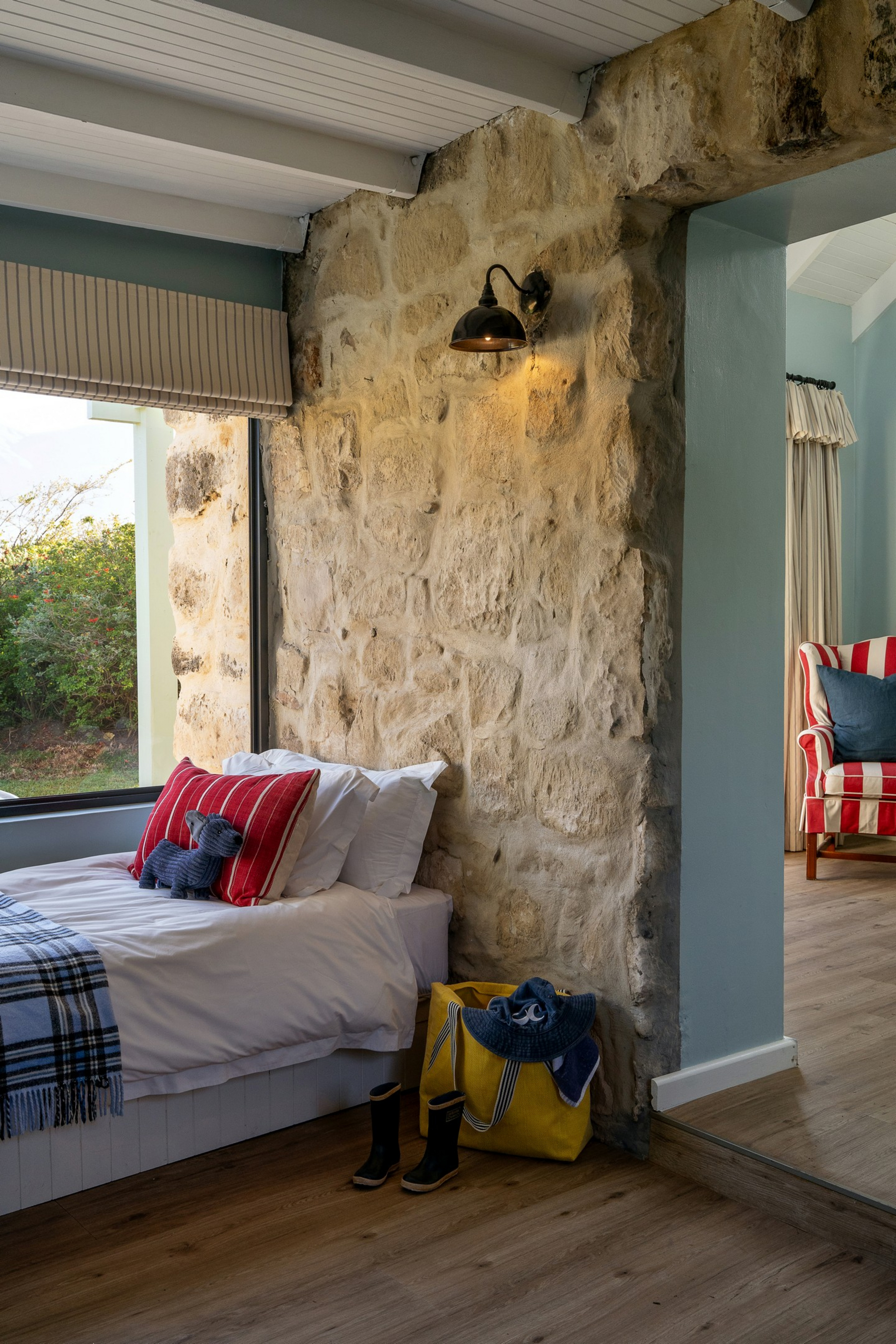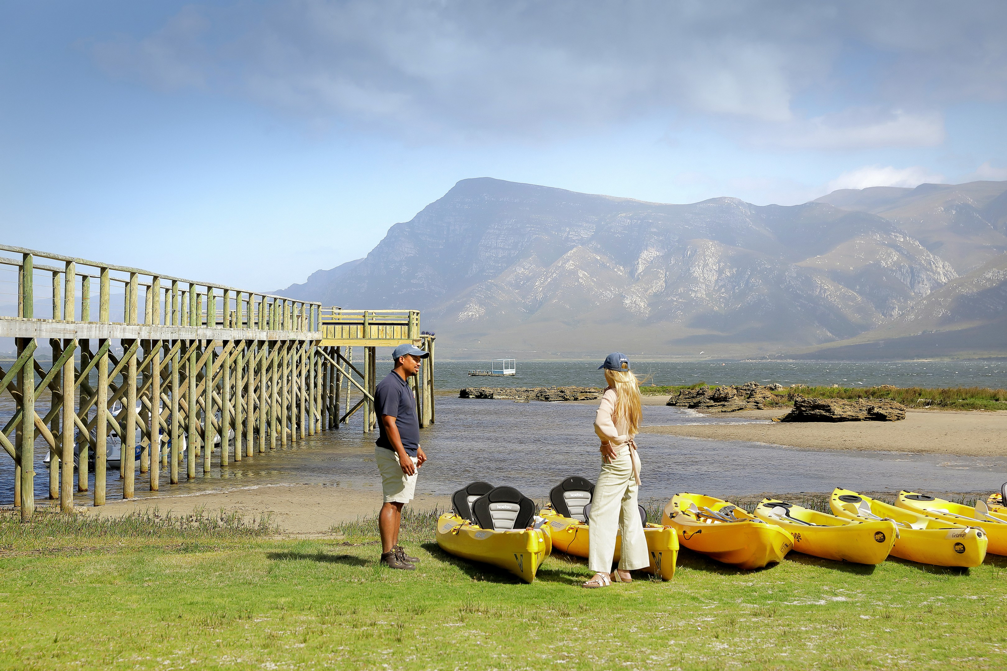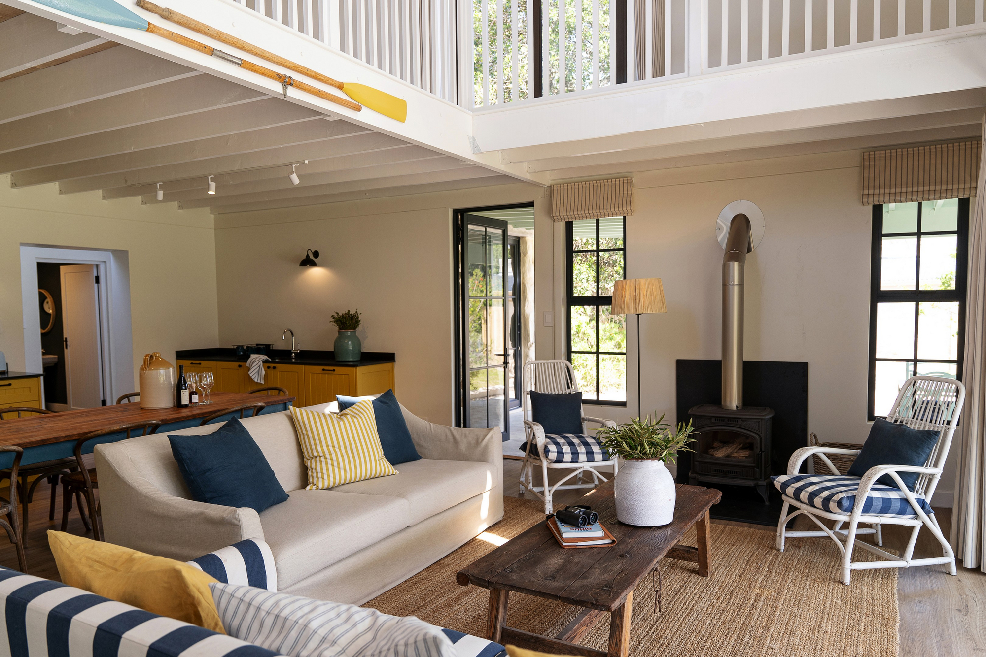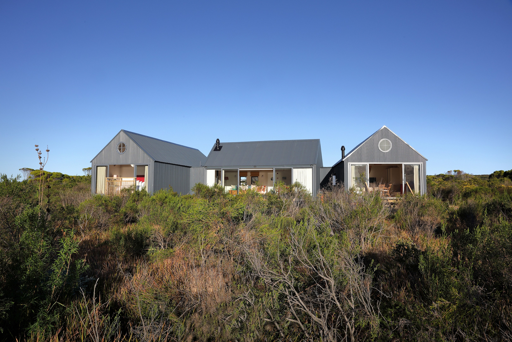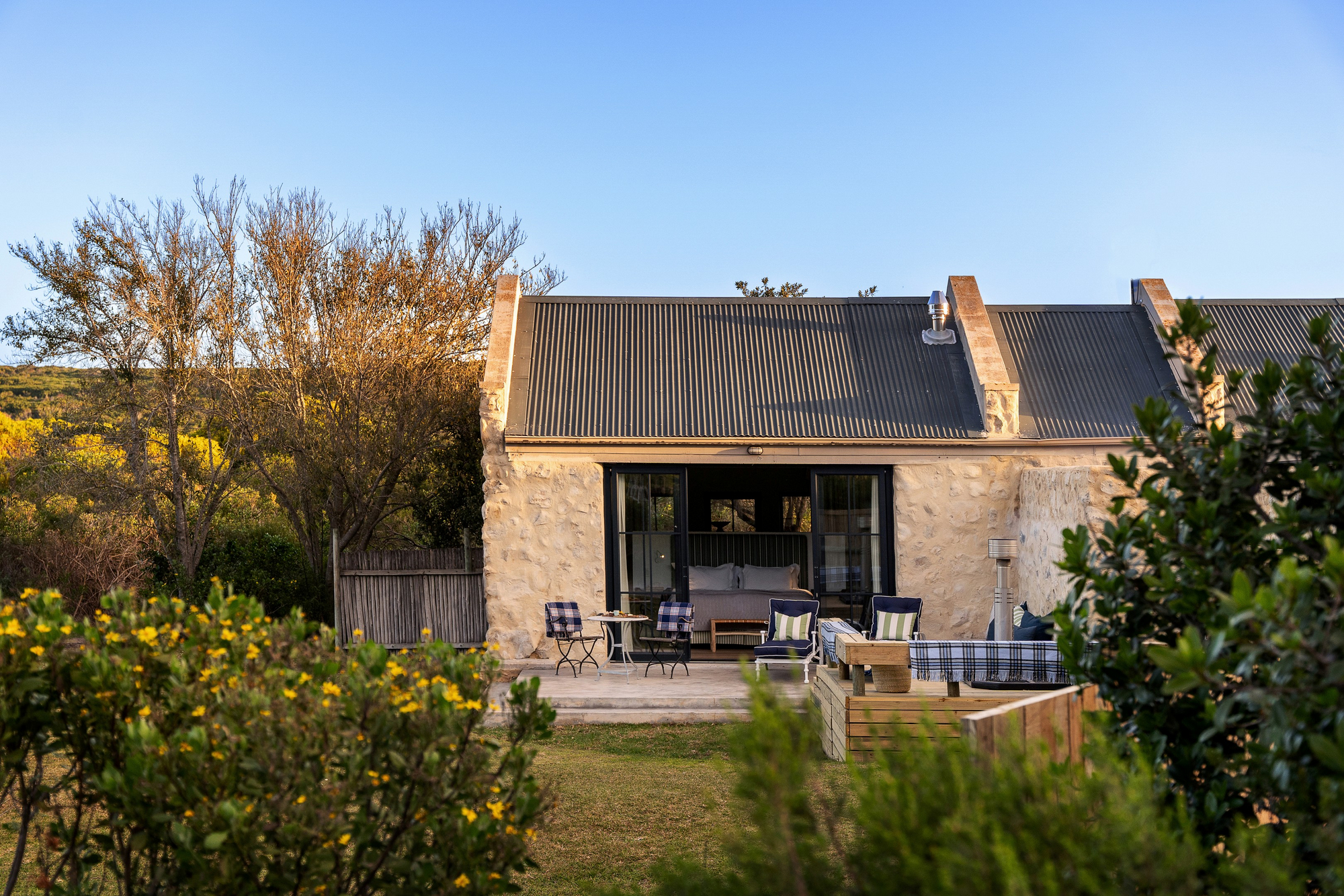 Die Unterkünfte im Coot Club sind weniger klassische Hotelzimmer als vielmehr private Rückzugsorte am Wasser. Jede Einheit ist individuell gestaltet und vermittelt das Gefühl eines persönlichen Ferienhauses. Helle Farben, natürliche Materialien, große Fensterflächen und Terrassen schaffen eine unmittelbare Verbindung zur Lagune, zum Himmel und zur umliegenden Fynbos-Landschaft. Innenräume sind wohnlich, ruhig und bewusst reduziert, mit Fokus auf Komfort, Licht und Aussicht statt formaler Struktur. Viele Unterkünfte öffnen sich direkt zum Wasser oder zu geschützten Gärten und ermöglichen einen fließenden Übergang zwischen Wohnen, Natur und Bewegung im Freien.