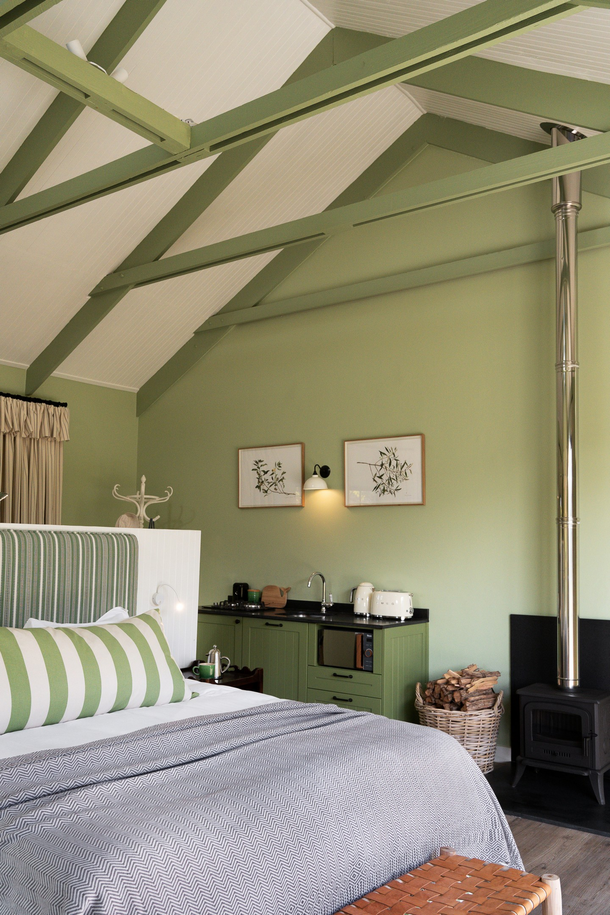 Leeward Large (2 Varianten). 1 Schlafzimmer, aber mit zusätzlicher Schlafmöglichkeit für ein Kind im Wohnbereich; entscheidend sind die Unterschiede zwischen Large 2 (mehr “Waldgarten”, Four-Poster, keine Twin-Option, Badewanne + Indoor-Shower) und Large 3 (Bett teilbar, Outdoor-Shower, Deck mit Mountain Views).