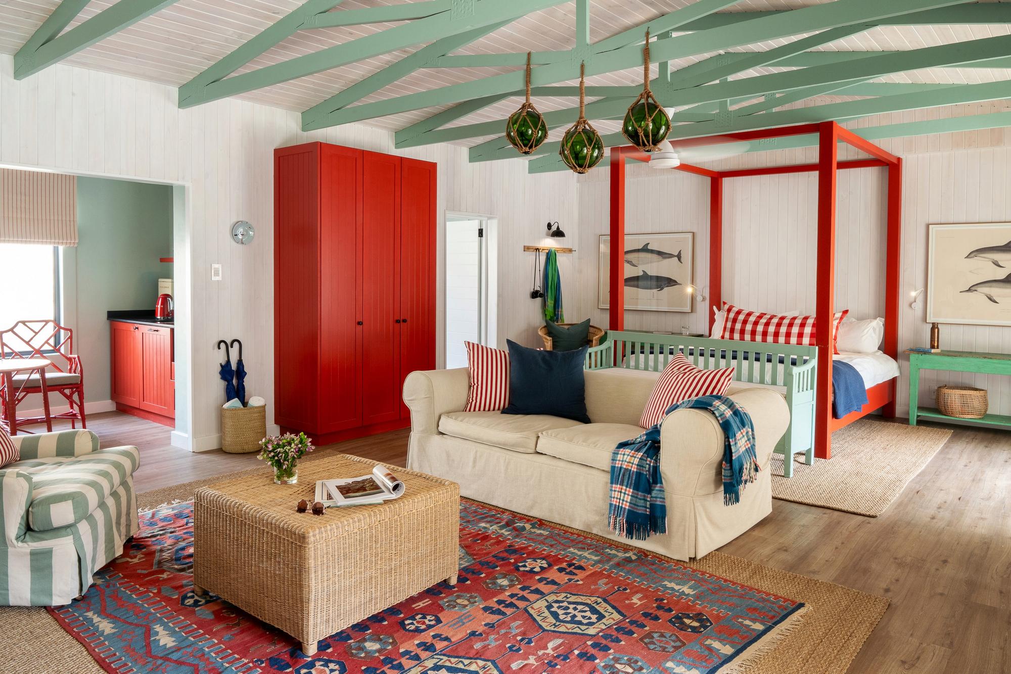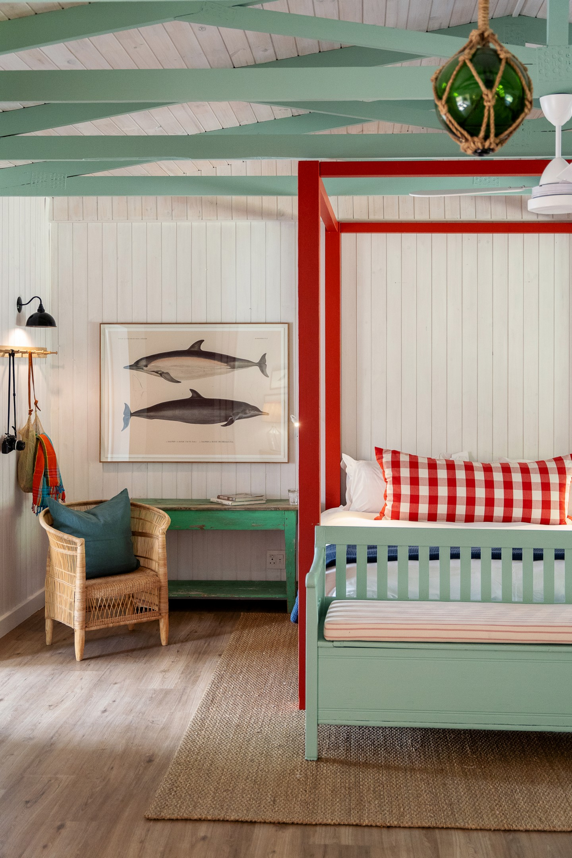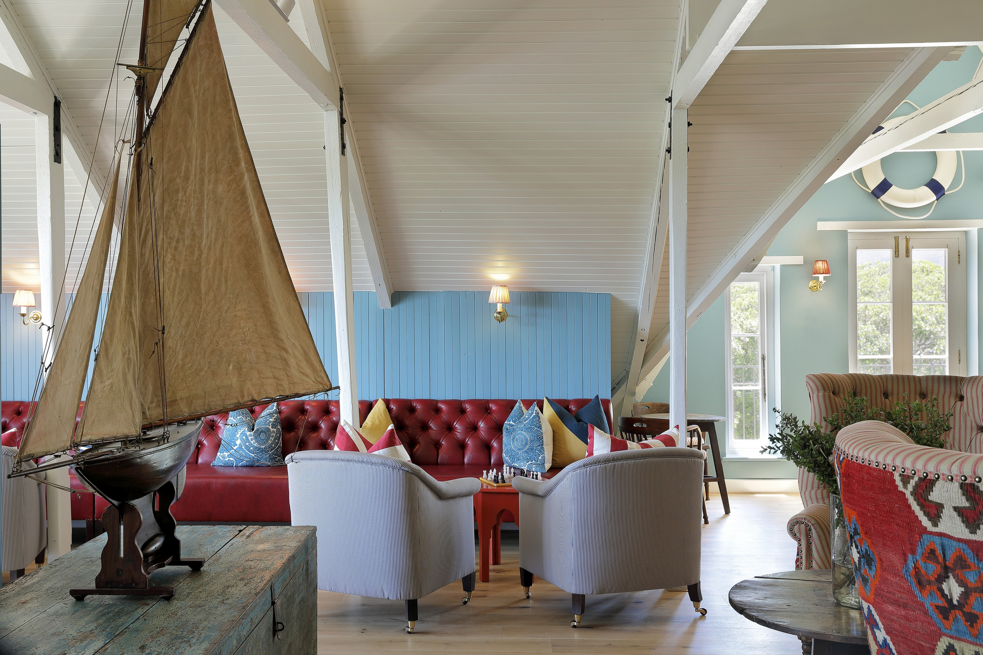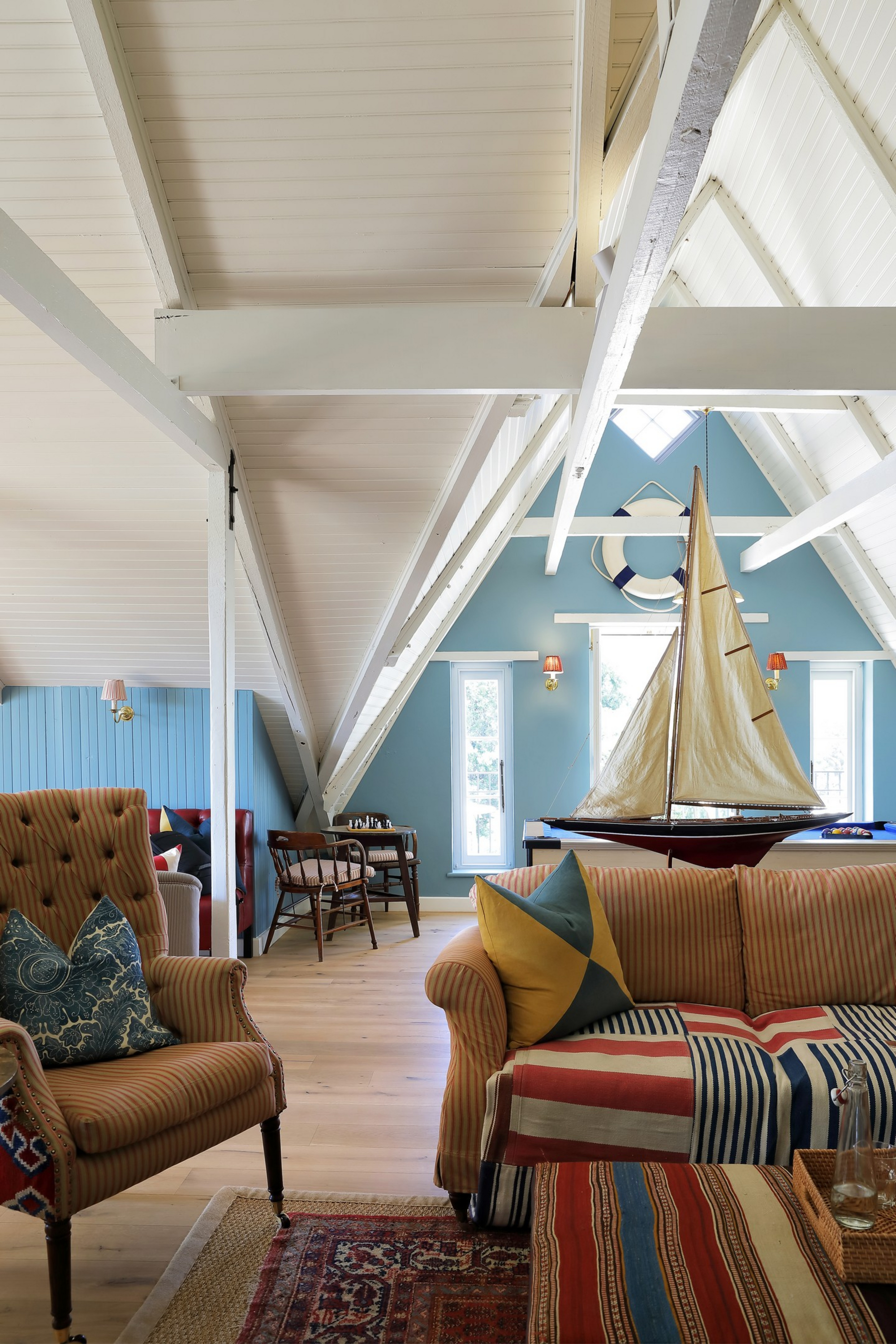 Starboard (2 Bedroom Boathouse). Kompakter (104 qm) und explizit für kleinere Familien; Master en-suite mit Lagunenblick plus Twin-Zimmer mit separatem Bad, zusätzlich ein “snug” als Rückzugsnische.
