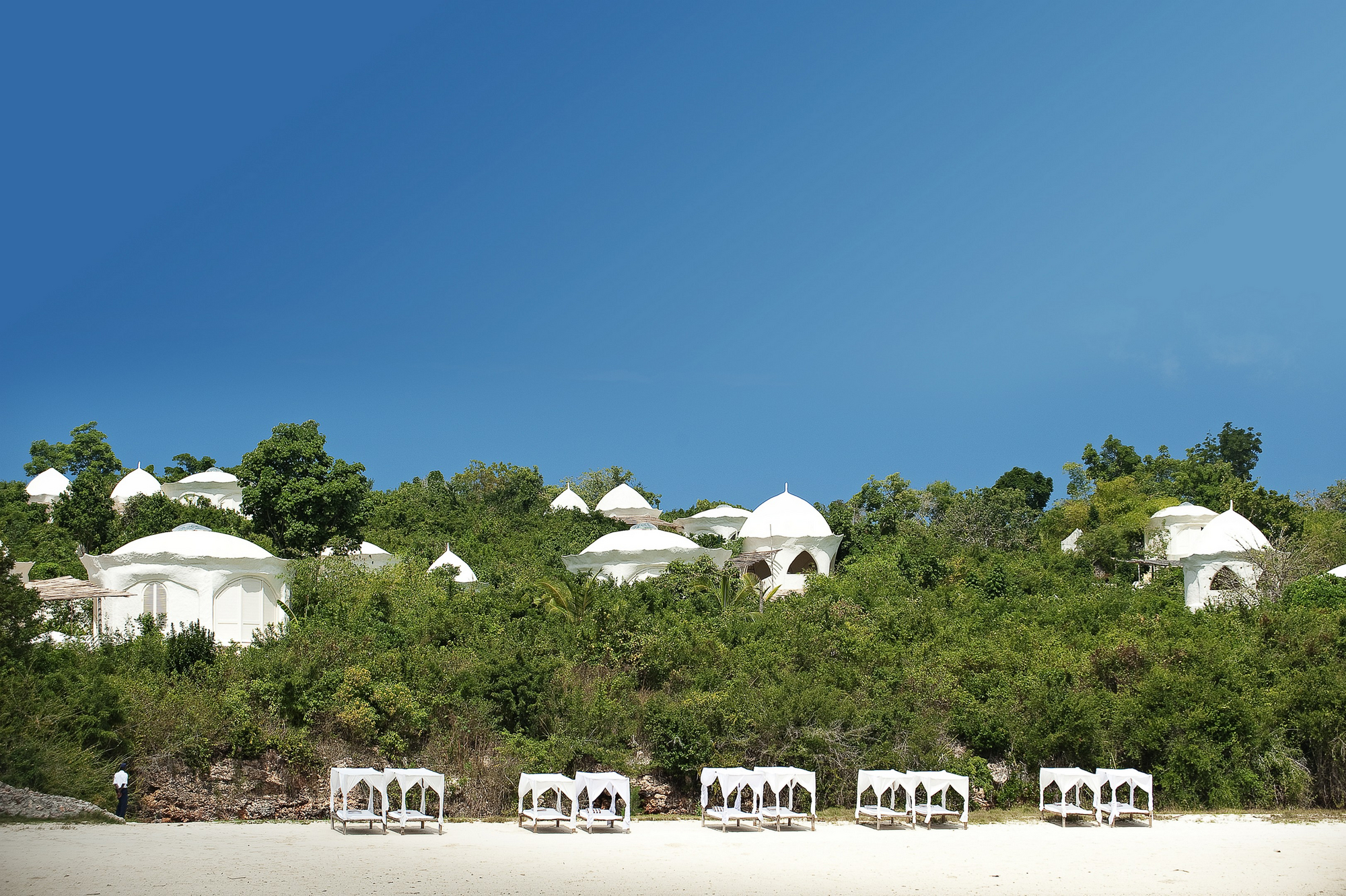 Das Elewana Kilindi Zanzibar liegt direkt am weißen Sandstrand von Kendwa auf Zanzibar und bietet 15 weißkuppelige Pavilions eingebettet in tropische Gärten auf 50 Acres. Jeder Pavilion besitzt einen privaten Plunge Pool und einen separaten Rainfall Shower Room mit offener Sicht zum Ozean oder Garten. Persönlicher Butler-Service, Infinity Pool mit Blick aufs Meer, Speisen auf der Terrasse oder am Strand. Für Paare ideal durch die adults-only Regel ab 16 Jahren. TZ022KILIN