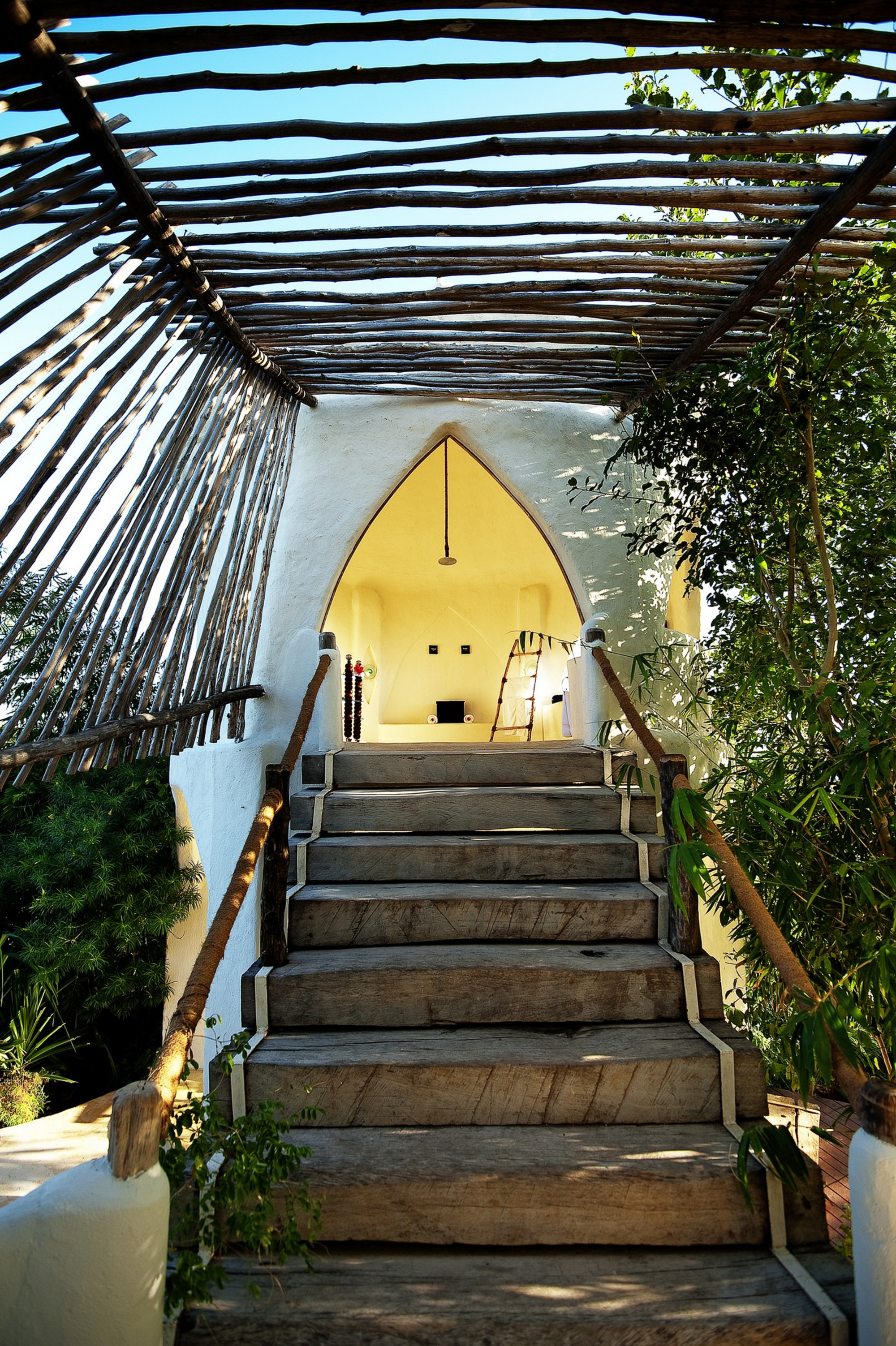 Es gibt 15 Pavilion Suites, jede für zwei Erwachsene, mit privatem Plunge Pool und separatem Rainfall Shower Room, der offen zum Meer oder Garten blickt. Die Pavilions haben große, bogenförmige Fenster ohne Glas (glaslose Fenster), die durch hölzerne Lamellen verschlossen werden können, um frische Meeresbrise hereinzulassen. In jedem Pavilion gibt es ein Kingsize Bett, einen luxuriösen Innenbereich mit Sitzecke, Minibar, Safe, Bademäntel, Tee-/Kaffee-Station, Haartrockner. Badezimmer sind en-suite mit WC und zwei Waschbecken. Klimaanlage vorhanden; Lichtdurchflutung und natürliche Belüftung durch offene Gestaltung des Raumes. Die Pavilions sind über gepflegte Gartenwege verbunden, Jacuzzi oder Night-Outdoor-Dusche gehören nicht zur Standardausstattung, außer dem Rainfall Shower Room.