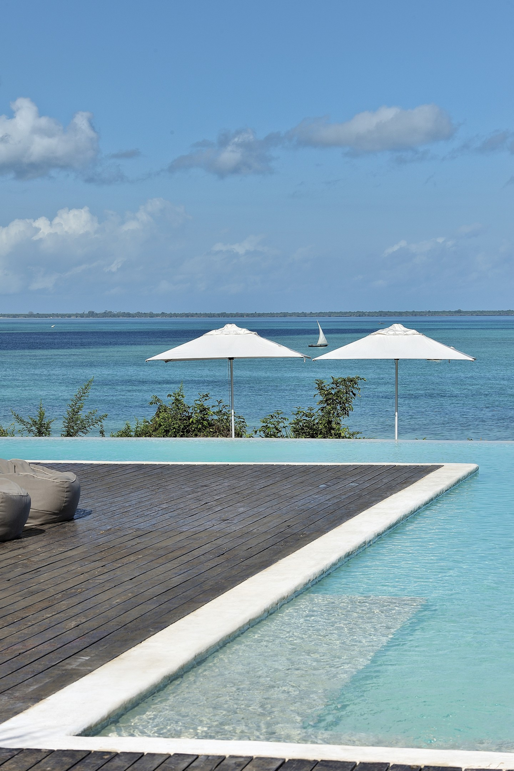 All-Inclusive Option vorhanden; alle Mahlzeiten (Frühstück, Mittagessen, Abendessen) inklusive nicht-alkoholischer Getränke. Speisen werden im Hauptrestaurant mit Terrasse, am Infinity Pool oder am Strand serviert. À la carte-Menüs mit regionalen Fischgerichten, Swahili Küche und internationalen Einflüssen. Romantische Dining-Erlebnisse & private Dinner am Strand sind möglich.