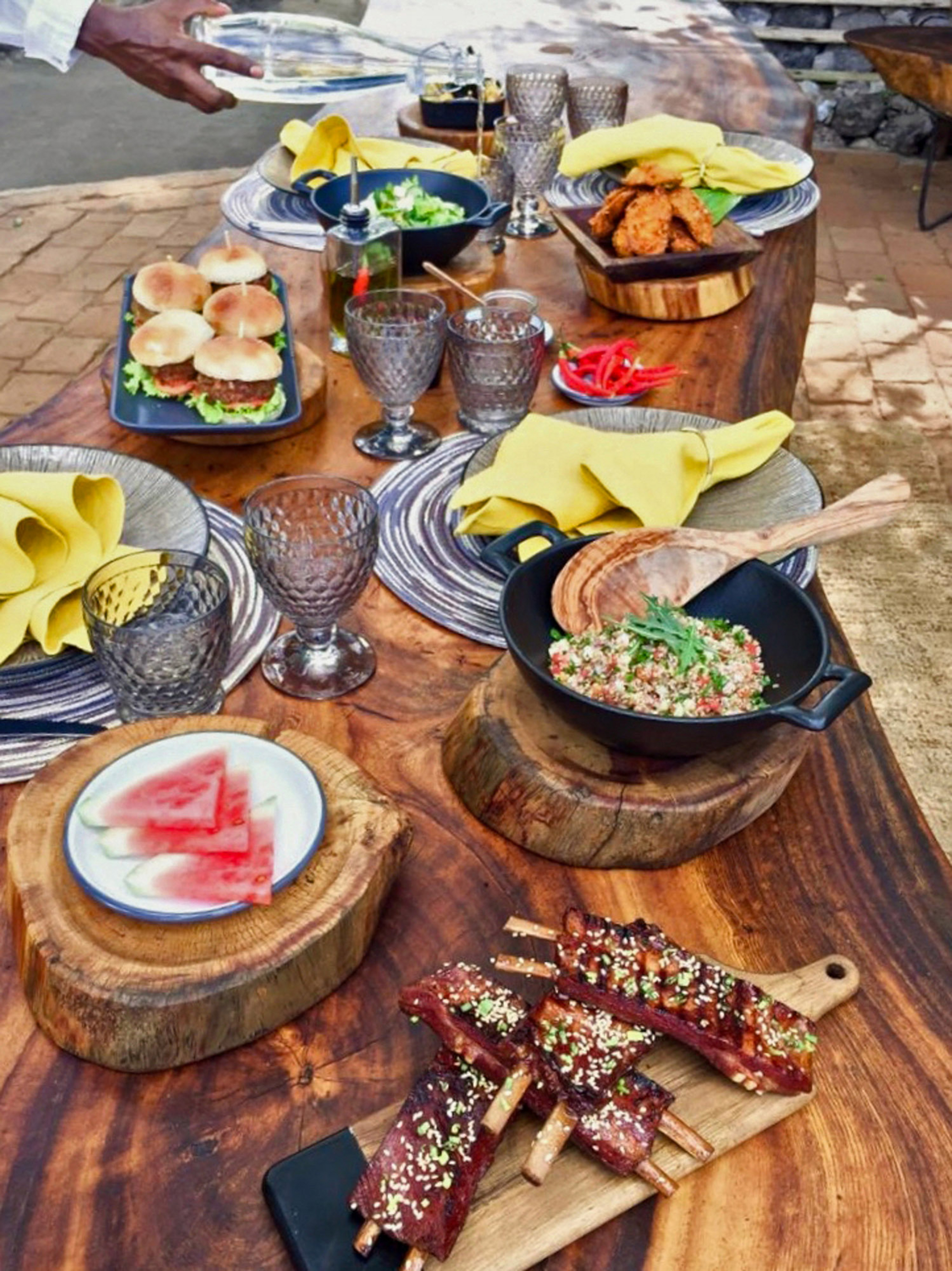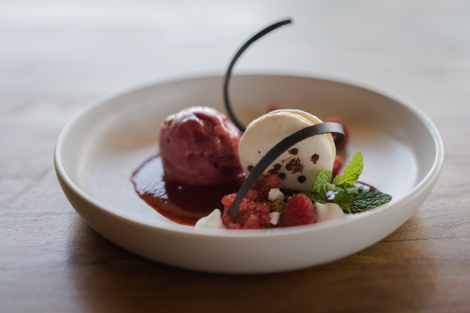 Mehrgängige Menüs mit regionalen Zutaten, serviert im Speisezelt oder unter freiem Himmel. Bar mit Auswahl an Weinen und Spirituosen vorhanden.