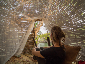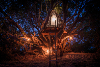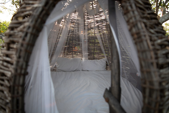 Stromaufwärts am Ufer des Kafue River hat die KaingU Lodge die Tonga Tree Baskets eingerichtet. Die aus einheimischem Muchinga-Zweigen gefertigten Baumkörbe bieten eine einzigartige und sichere Nacht unter dem Sternenhimmel inmitten der Natur. Die Körbe werden saisonal in Bäumen am Flussufern aufgestellt. Die Gäste schlafen zu den entspannenden Klängen des Kafue River ein. Bis zu 6 Personen können an diesem Erlebnis teilhaben. Neben dem Bucket Shower gibt es noch eine „Ash-Pit-Toilette. Die Betten sind mit Moskitonetzen geschützt. Am Morgen wird noch auf der Insel das Frühstück serviert.