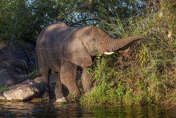 Pflanzenfresser: Elefant, Zebra, Kudu, Eland, Büffel, Südliche Schirrantilope , Pferdeantilope, Rappenantilope, Impala, Bleichböckchen, Greisböckchen, Streifengnu, Kuhantilope, Kronenducker, Großriedbock, Puku, Wasserbock, Rote Moorantilope, Sitatunga-Antilope, Warzenschwein, Buschschwein, Nilpferd. KEINE Giraffen.