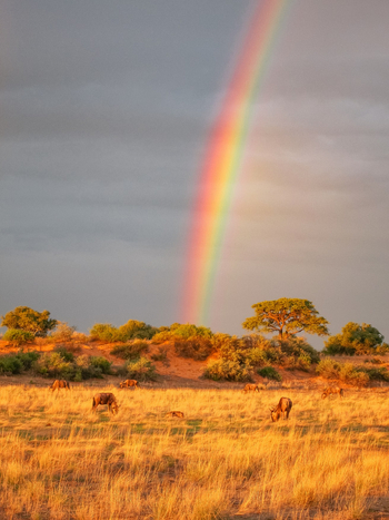 Jedoch sind die Monate November bis April besonders interessant. In dieser Zeit fällt der wenige Regen und treibt das frische Grün aus dem Wüstensand. Der Regen an sich stört kaum. Es gibt vielleicht einen kurzen, kräftigen Schauer. Danach kommt die Sonner wieder raus. Die meisten Gäste werden Regen eher aus der Entfernung sehen. Die Tiere aber reagieren mit erhöhter Aktivität auf die Niederschläge und wandern von Süden her in die Zonen ein, wo jetzt wieder frisches Gras wächst. In der "Green Season" sind auch die Temperaturen recht angenehm.