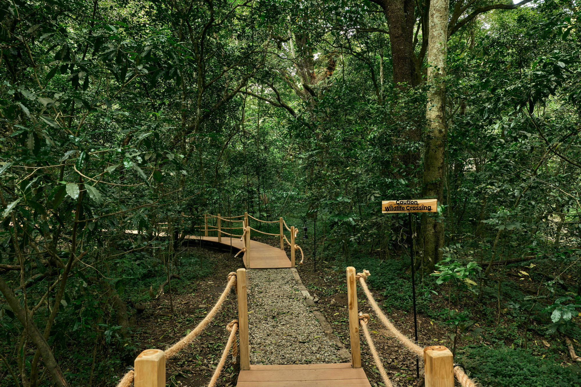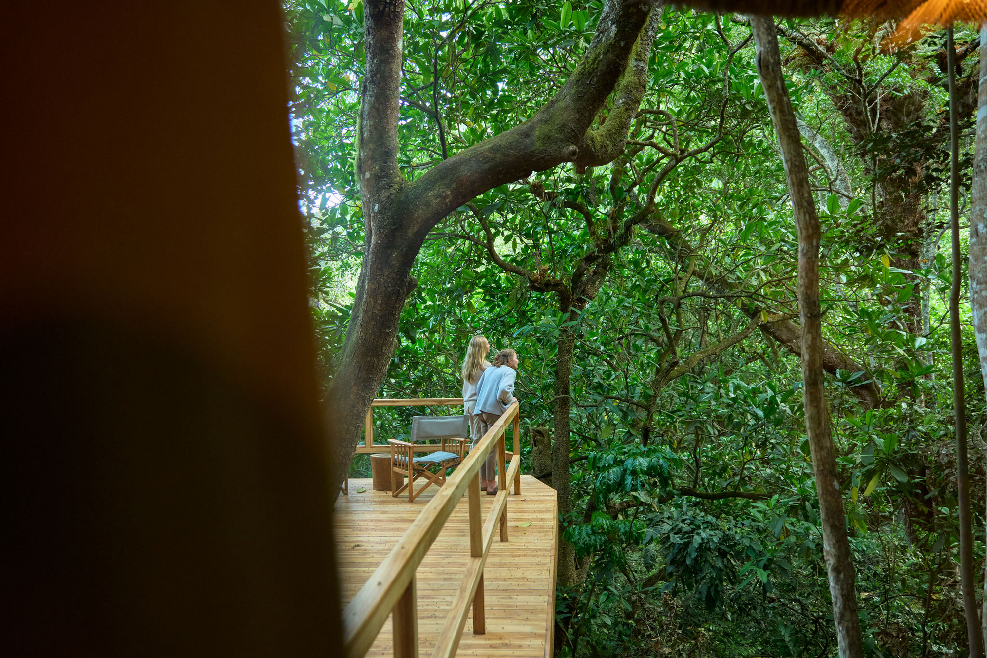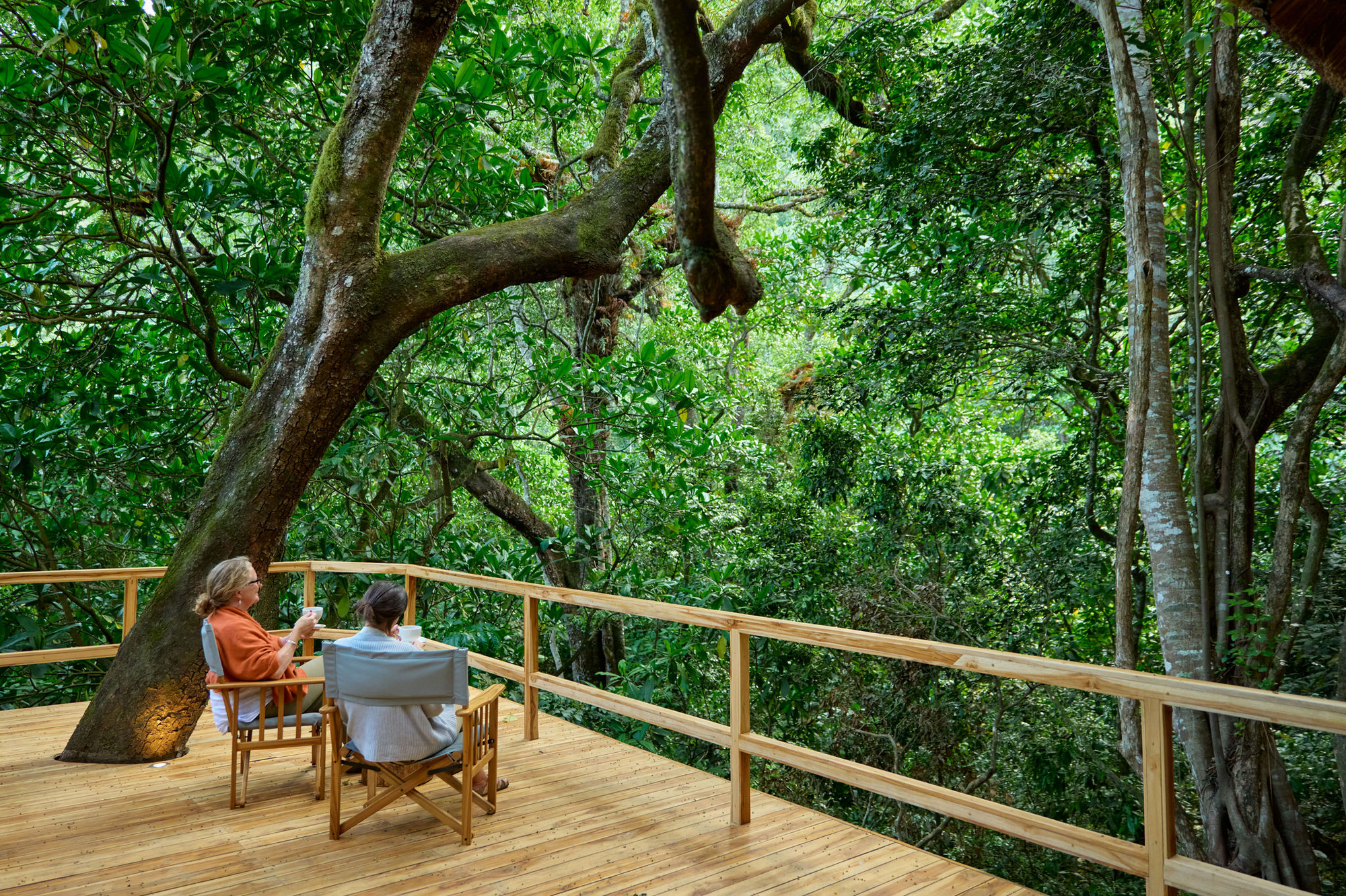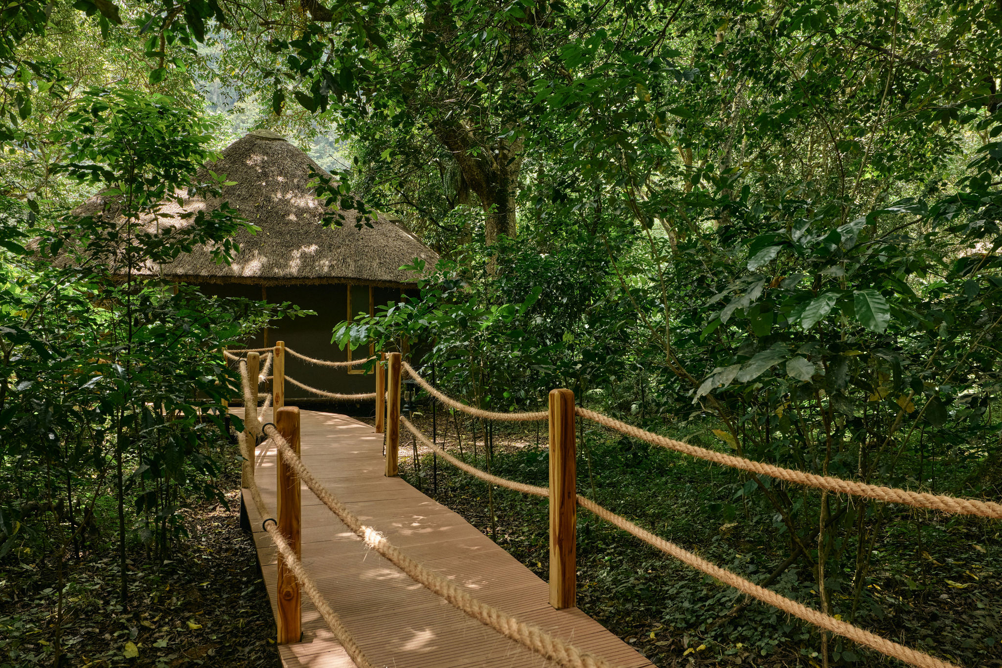 Das Koroi Forest Camp verfügt über eine Lounge, ein Messezelt, Rezeption, Essbereich, ein Baumhaus sowie eine große Lichtung. Die verschiedenen Bereiche sind über Holzpfade miteinander verbunden.