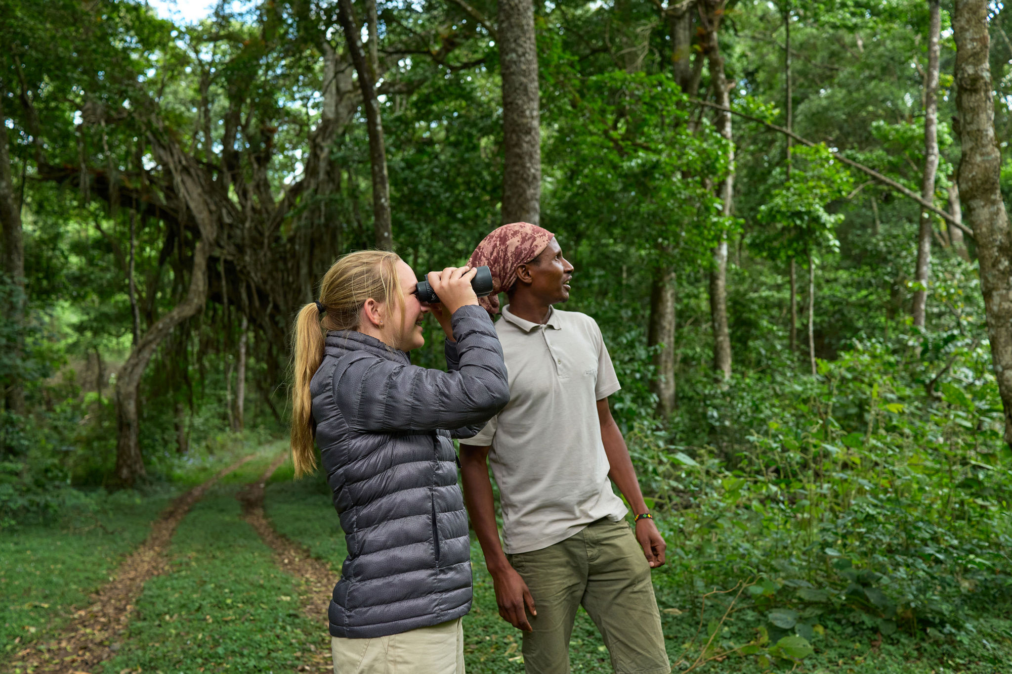 Waldspaziergang, Ngurdoto-Kraterwanderung, Meru-Kraterwanderung, Koroi-Ngurdoto-Wanderung, Schlucht- und Wasserfallwanderung, Vogelbeobachtungsexkursion in den Lark Plains, Vogelbeobachtung im Wald, Erlebnis in einer geheimen Waldlichtung, Aussichtsplattform im Baumkronenbereich, Nacht-Safari und kulturelle Begegnungen mit den Massai Exklusiver Sundowner, Brunch, Mittag- oder Abendessen im Wald
