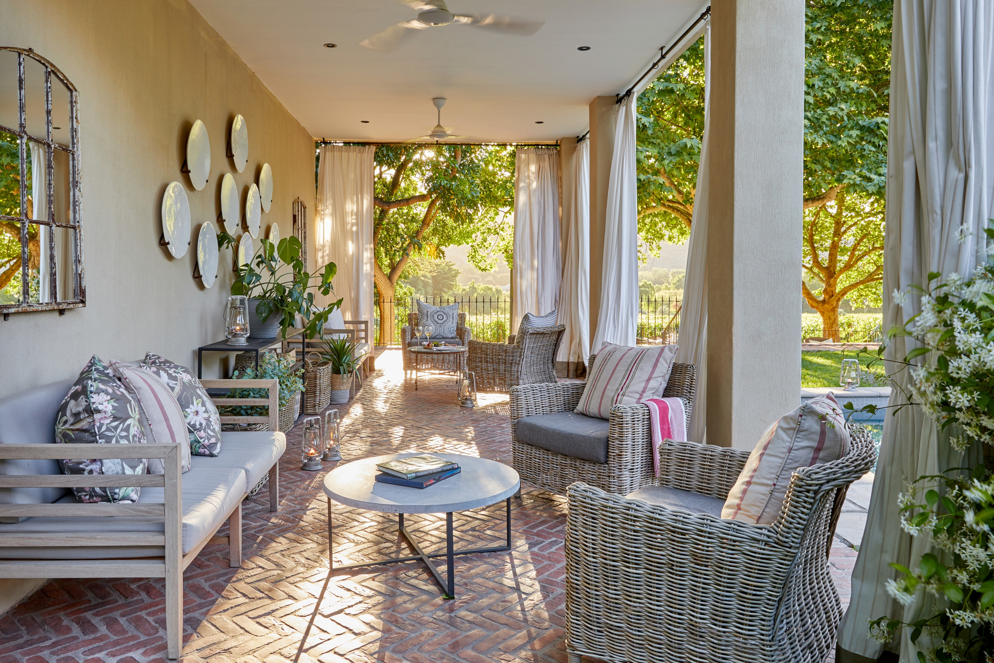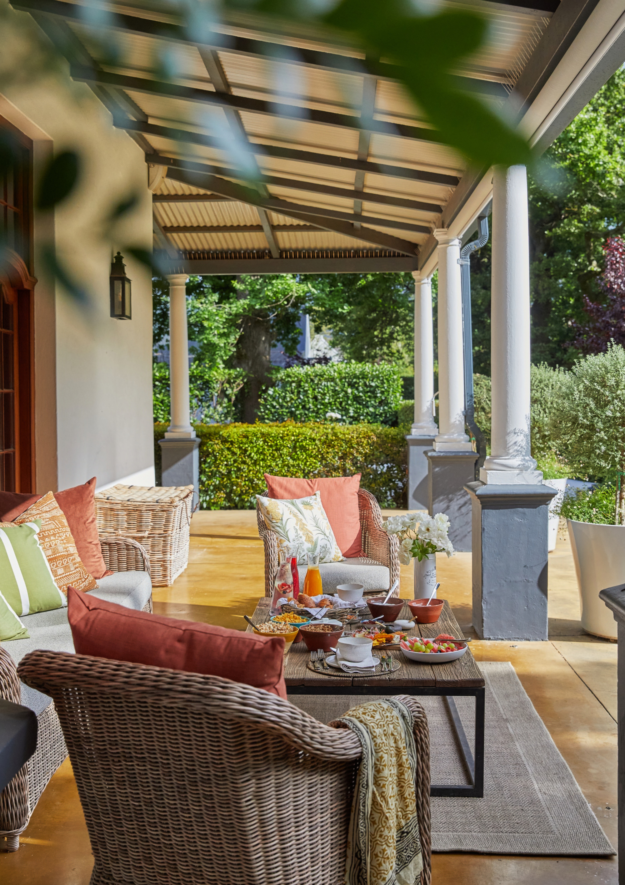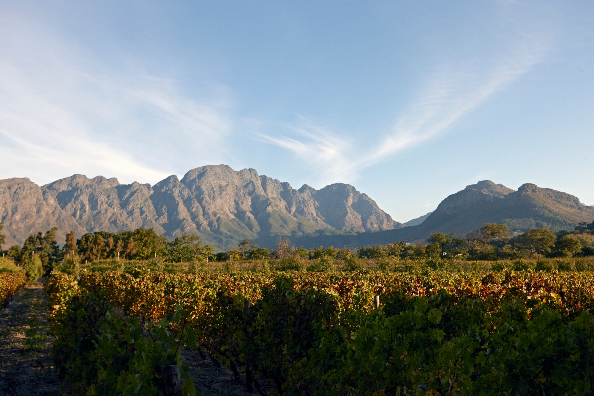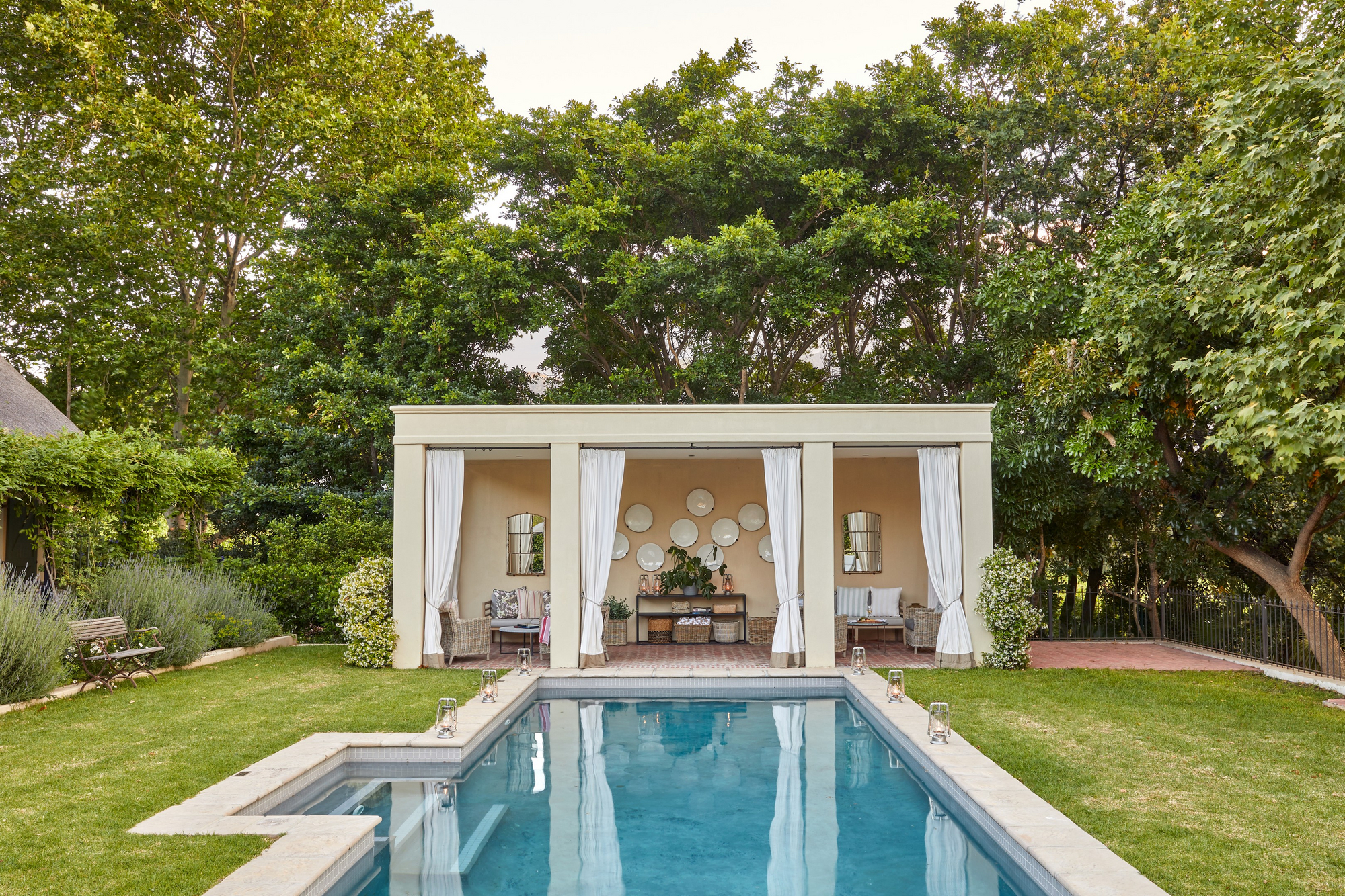 Südafrika, Western Cape, Winelands, Dorf Franschhoek. Die Lodge liegt nahe dem Zentrum des Dorfes, umgeben von Weinbergen und Natur, mit direktem Zugang zu Restaurants, Galerien und lokalen Attraktionen. Die Strecke von Kapstadt International Airport beträgt ca. 50 Minuten Fahrt.