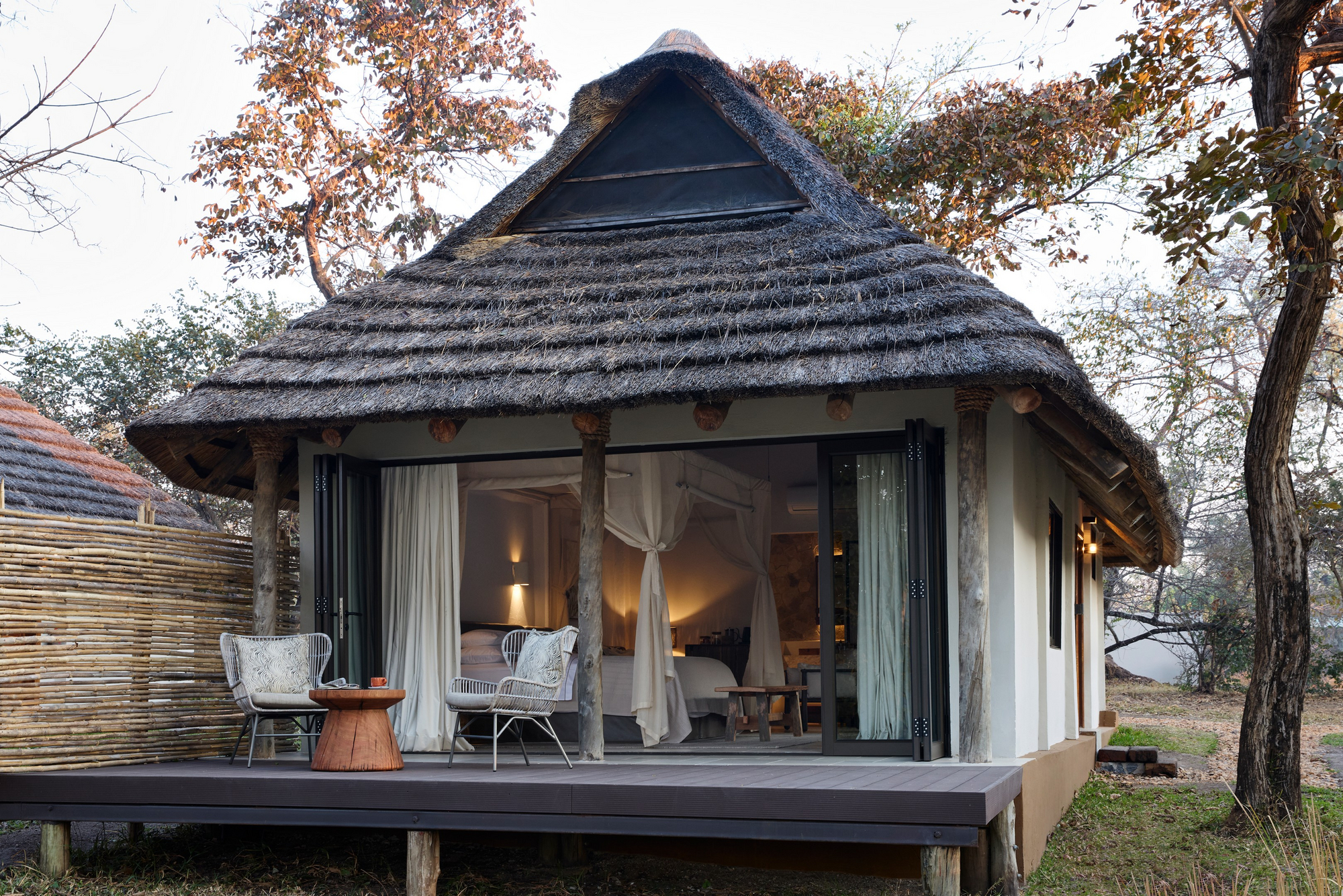 Die Gästeunterkünfte im Lolelunga Private Reserve verbinden modernen Komfort mit der Ursprünglichkeit der afrikanischen Wildnis. Sieben exklusive Suiten bieten maximale Privatsphäre und öffnen sich mit großen Glasfronten zur unberührten Landschaft Sambias. Jede Suite verfügt über eine private Veranda mit Ausblick auf die Natur, ein stilvolles Interieur mit hochwertigen Materialien sowie ein luxuriöses Badezimmer mit Innen- und Außendusche. Mit Klimaanlage, Moskitonetz und Minibar ist für höchsten Komfort gesorgt – ohne die Nähe zur Natur zu verlieren. Die Unterkünfte schaffen einen harmonischen Rückzugsort, an dem sich Ruhe, Stil und Safari-Erlebnis auf einzigartige Weise verbinden.