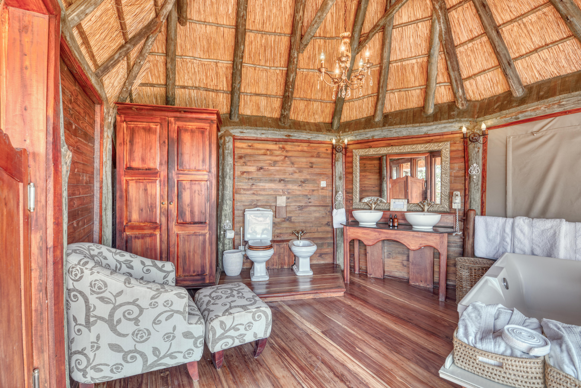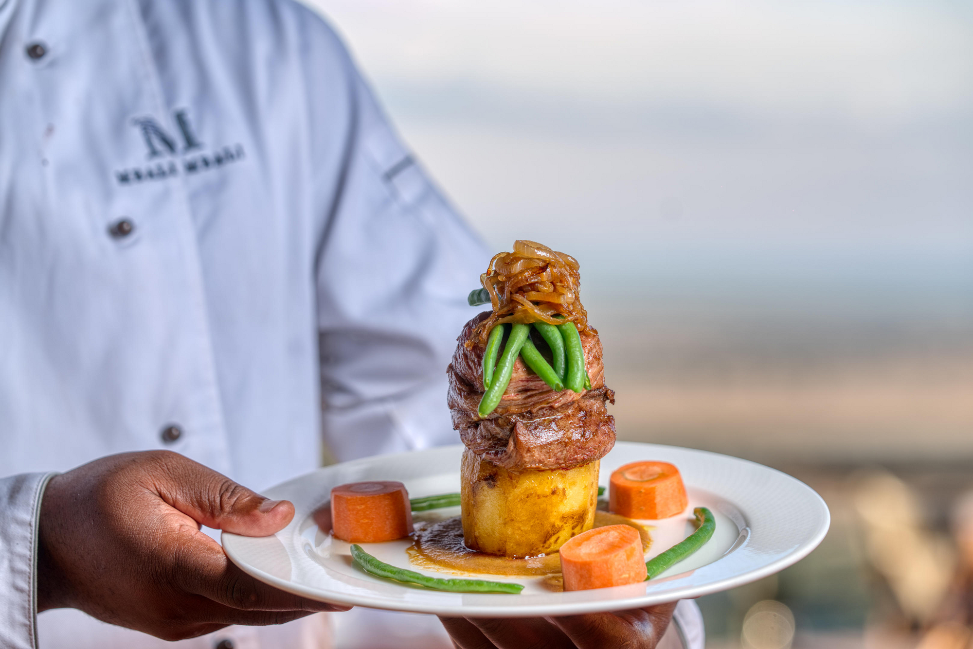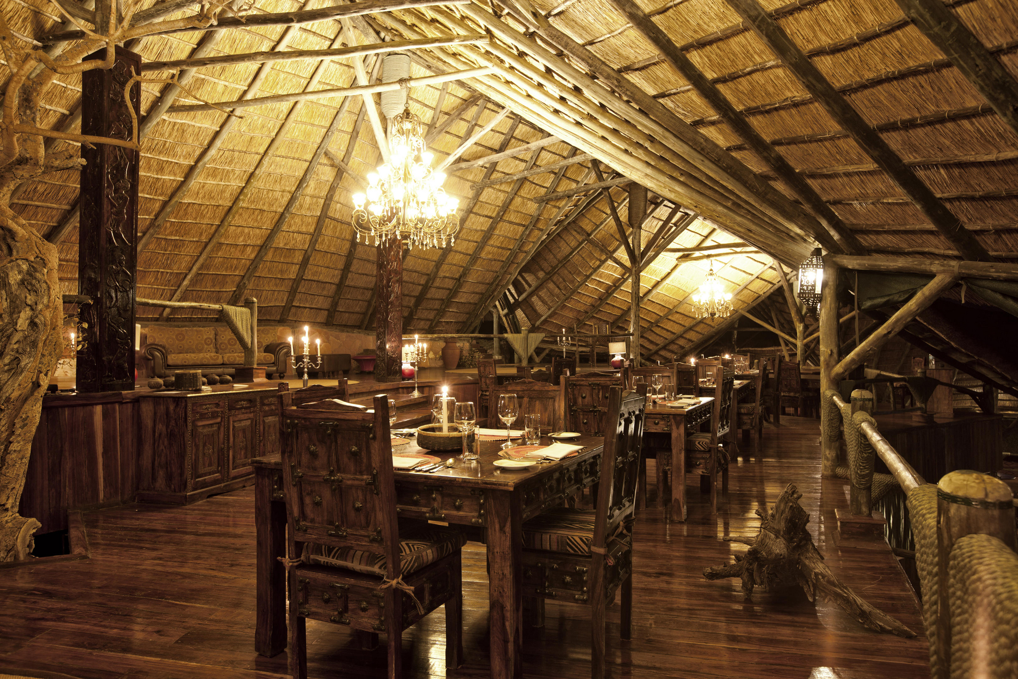 Vollpension mit Frühstücksbuffet, Afternoon Tea und mehrgängigen Abend-Menüs. À-la-carte-Option am Abend, internationale und regionale afrikanische Küche mit vegetarischen und glutenfreien Optionen. Getränke (Basis-Auswahl) inklusive.