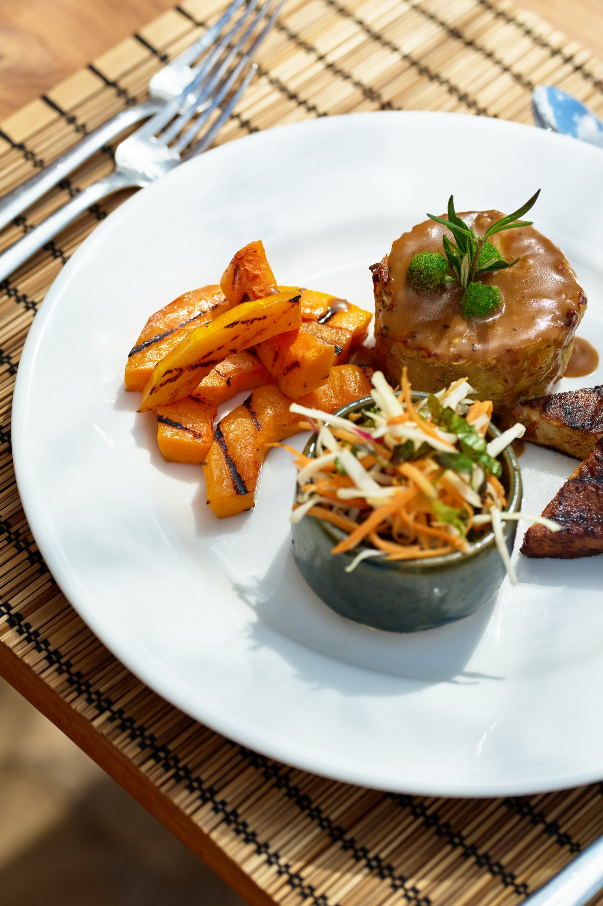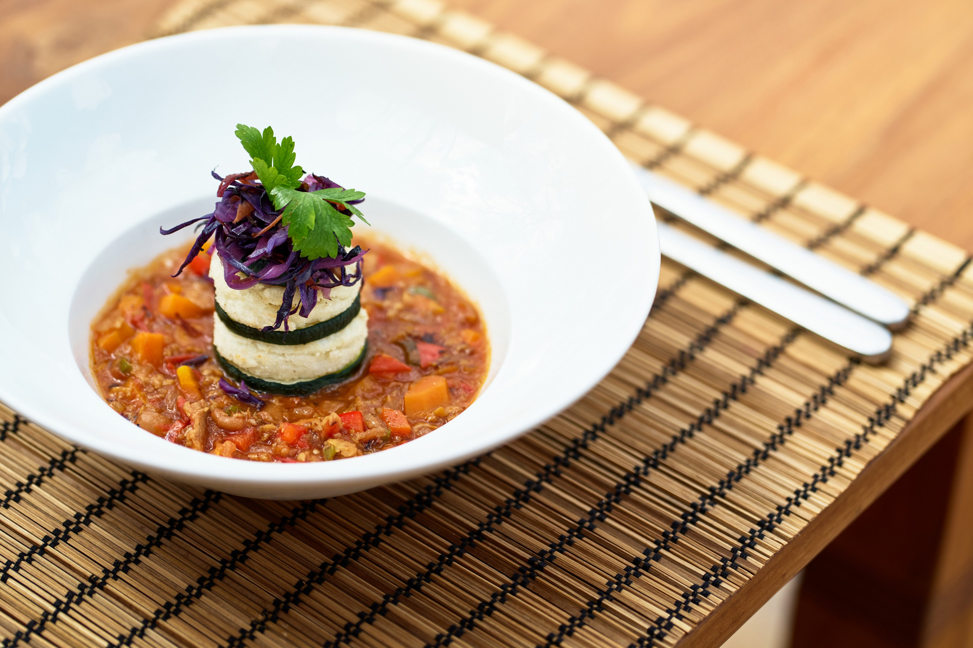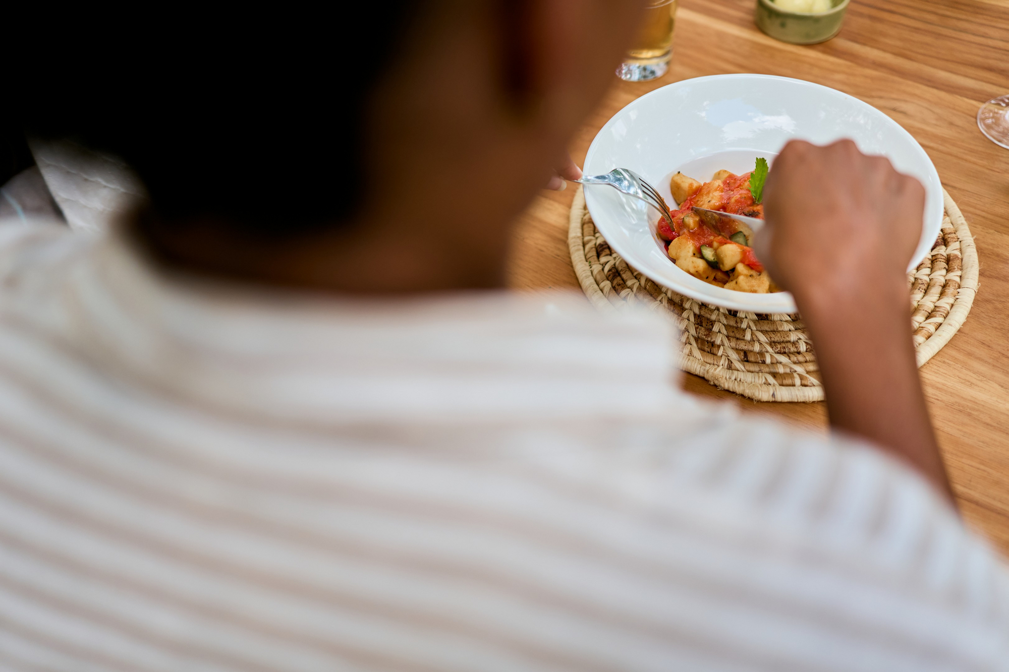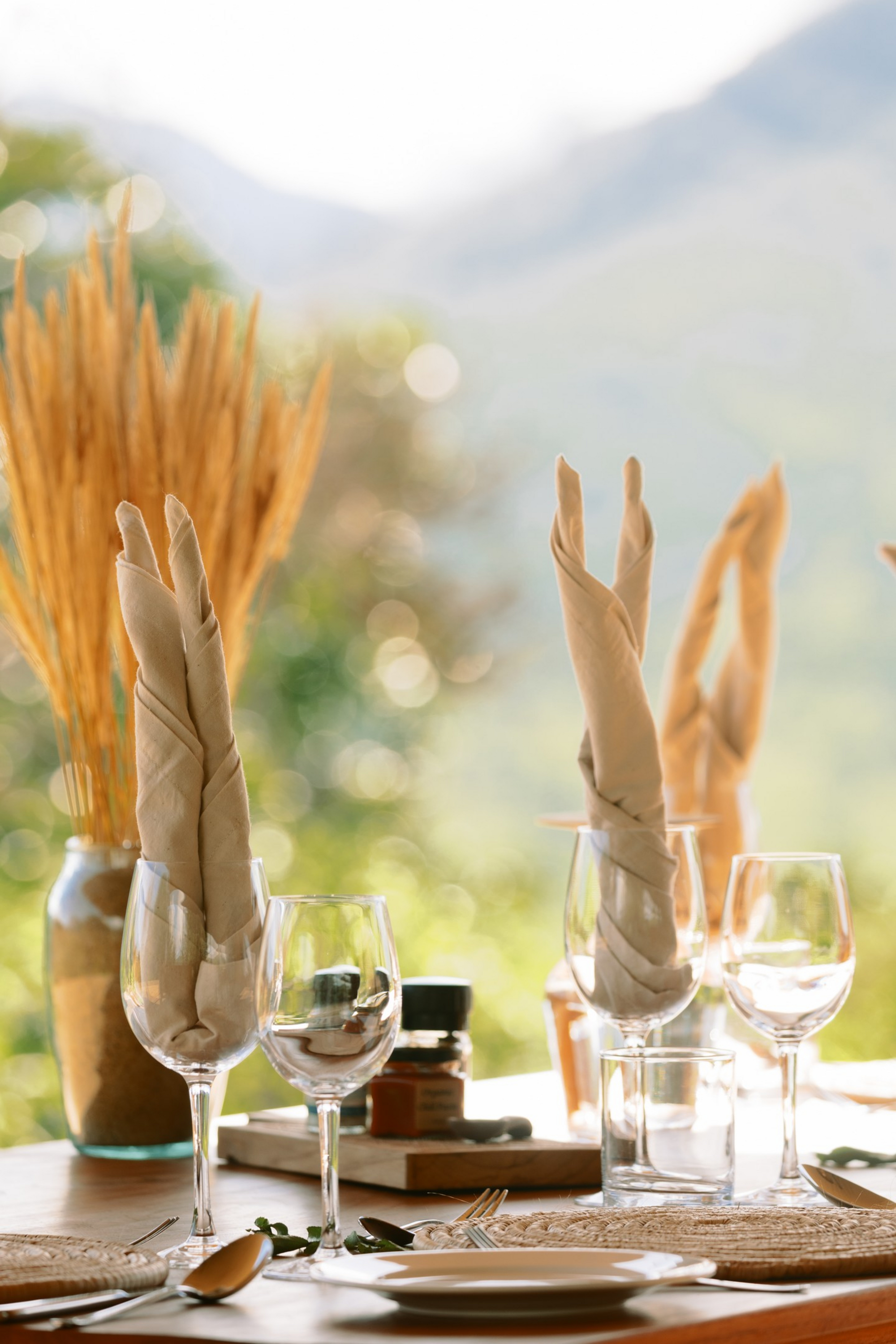 Alle Mahlzeiten werden im zentralen Bereich serviert und sind einfach, frisch und funktional gestaltet. Der Fokus liegt auf gemeinschaftlichen Mahlzeiten und persönlichem Austausch. Getränke sind je nach Arrangement inkludiert.