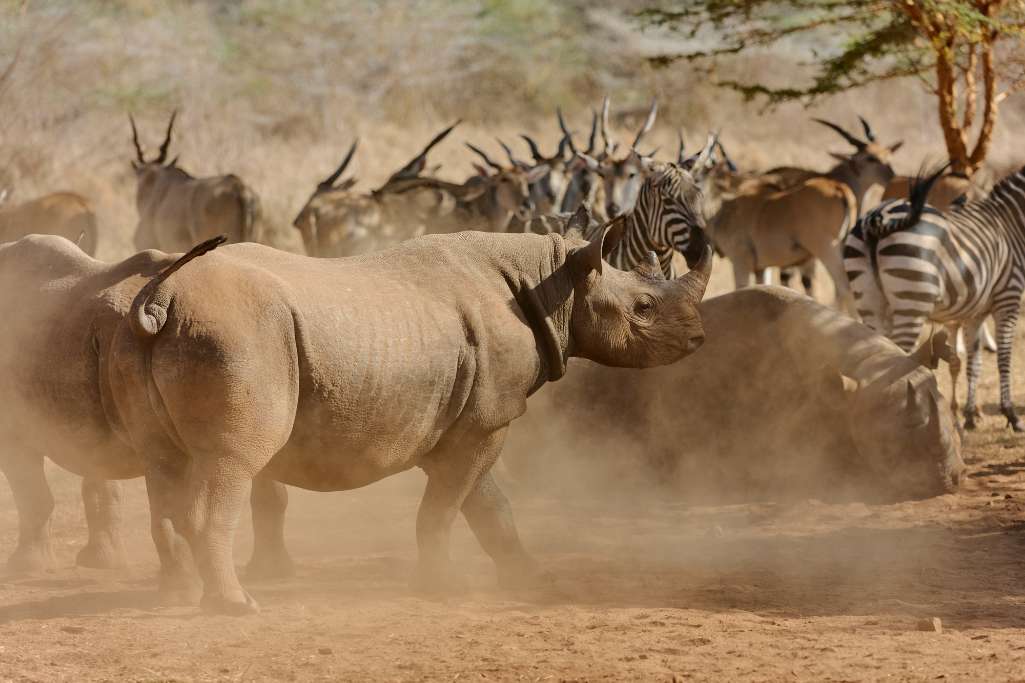 Pflanzfresser und Kleinsäugetiere: Besonders hervorzuheben sind die Schutzprojekte für Spitzmaulnashörner, die in einem gesicherten Bereich leben. Darüber hinaus kommen Elefanten, Giraffen, Zebras sowie verschiedene Antilopenarten wie Oryx und Gerenuk vor, die typisch für trockene Savannenlandschaften sind.