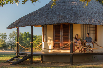 Die hölzernen Veranden am Eingang jedes Rondavels bieten einen guten Blick auf den Fluss.