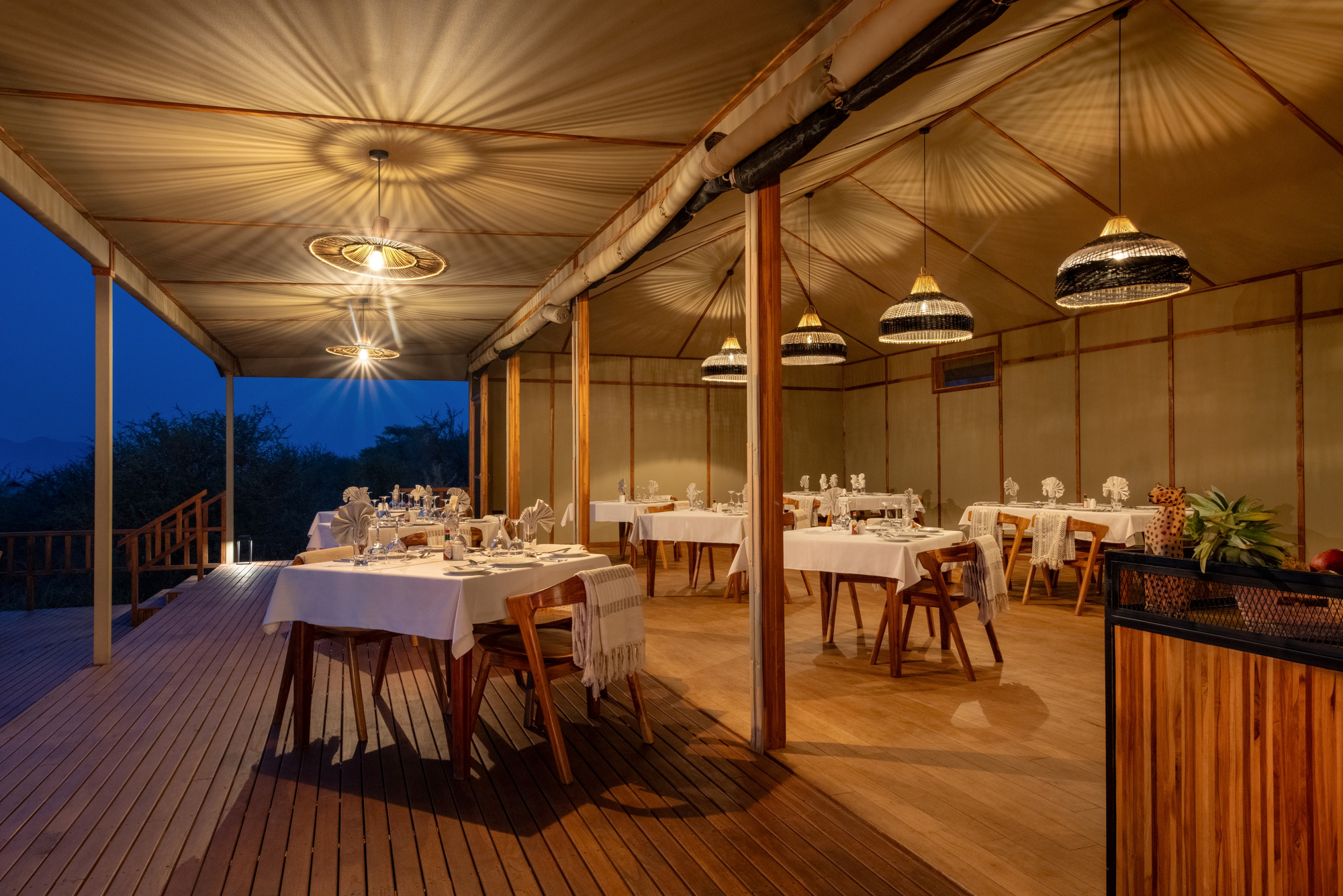 Das Nyikani Camp bucht man auf Basis von Vollpension mit den Mahlzeiten Frühstück, Mittagessen, Nachmittagstee und Abendessen. Das Trinkwasser ist ebenfalls im Preis enthalten. Die Gäste nehmen die Mahlzeiten gemeinsam im Speisezelt oder auf der Terrasse zu sich. Private Arrangements im Freien sind auf Wunsch auch möglich. Die Küche des Kiota Camps greift für ihre Speisen sofern möglich auf biologisch angebaute Gewürze, Gemüse und Früchte zurück. Am Morgen werden die Gäste mit einem Kaffee oder Tee an ihrem Zelt überrascht, den ein Butler auf einem Tablett vorbeibringt. Das Camp bietet seinen Gästen eine vielfältige Auswahl an Weinen und Spirituosen.