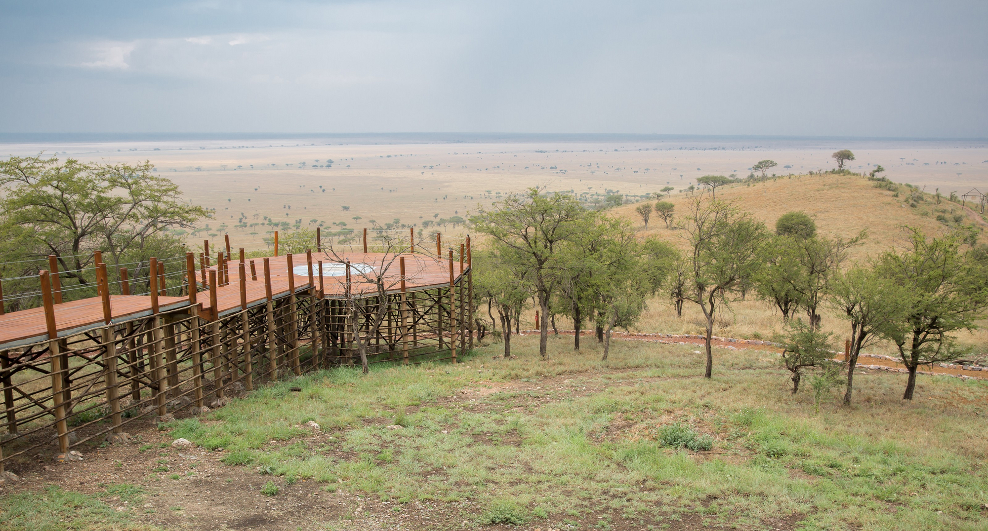 Das Ole Serai Camp Seronera nutzt Solarstrom. Es liegt in einem Bereich mit niedriger Fahrzeug- und Gästezahl und richtet sich auf Naturintegration und Aussicht ohne visuelle Barrieren.
