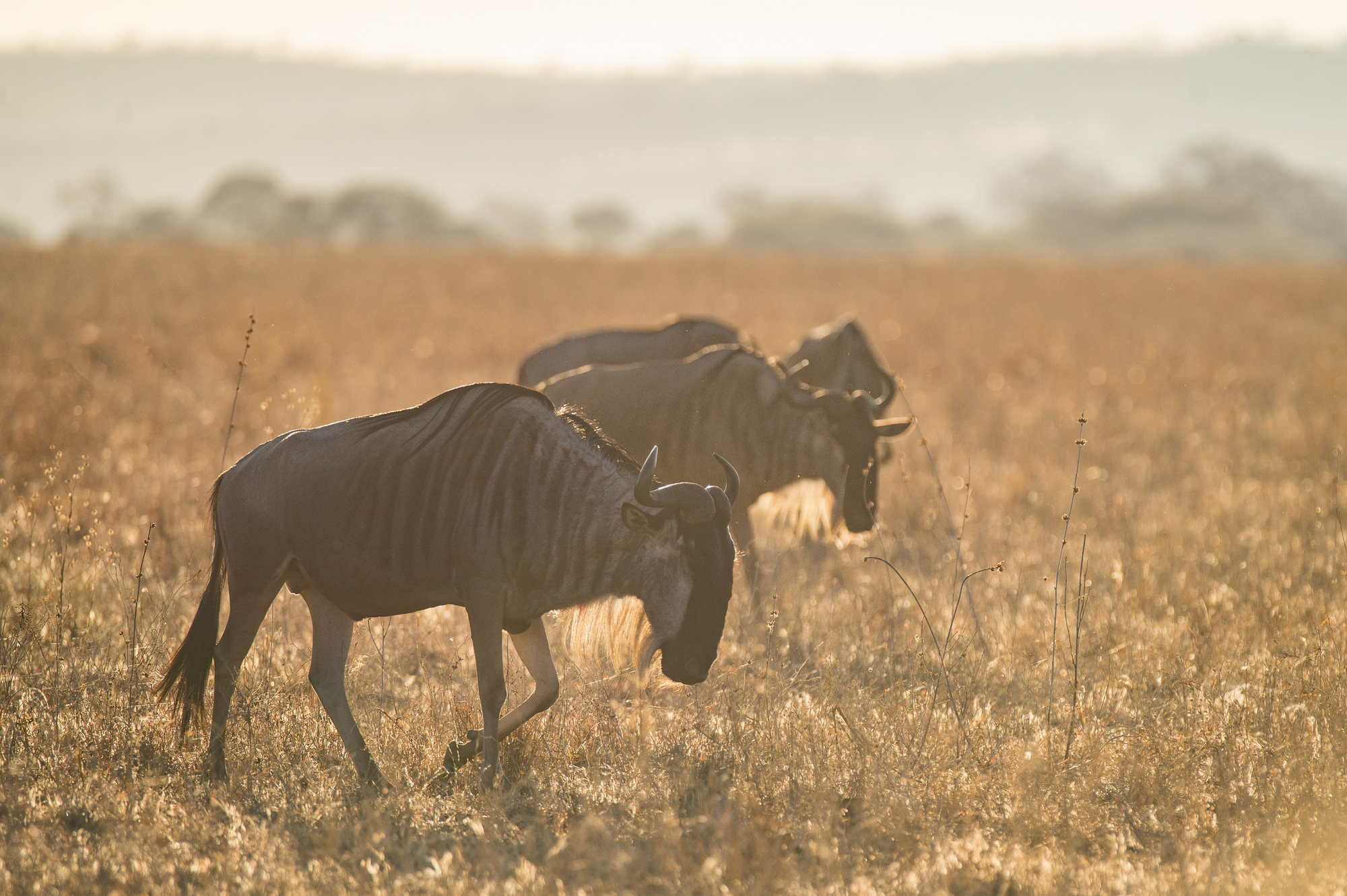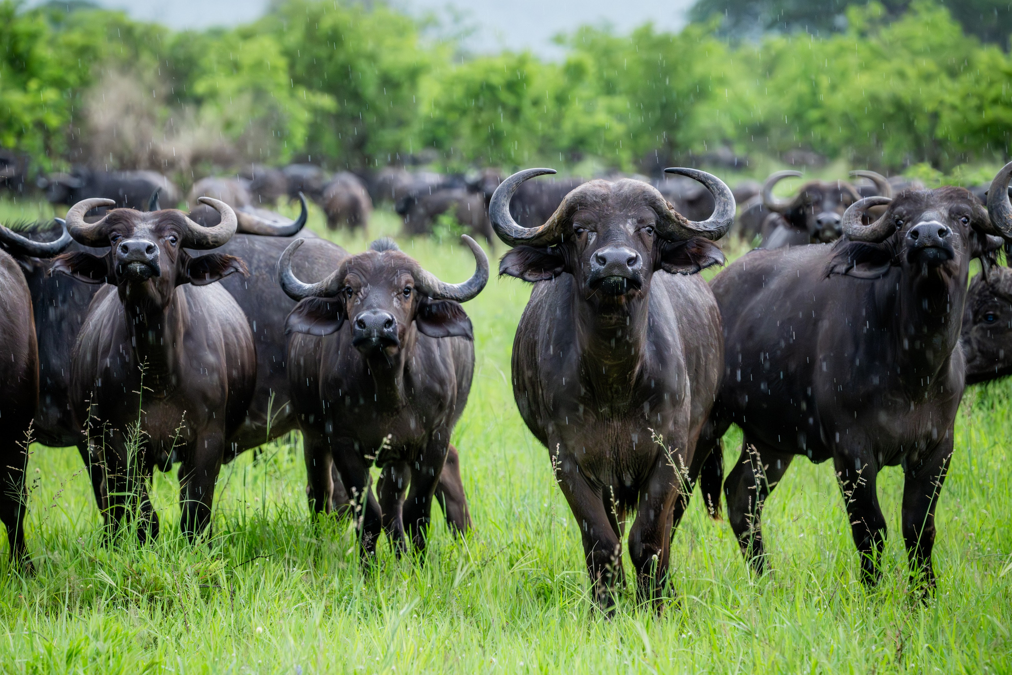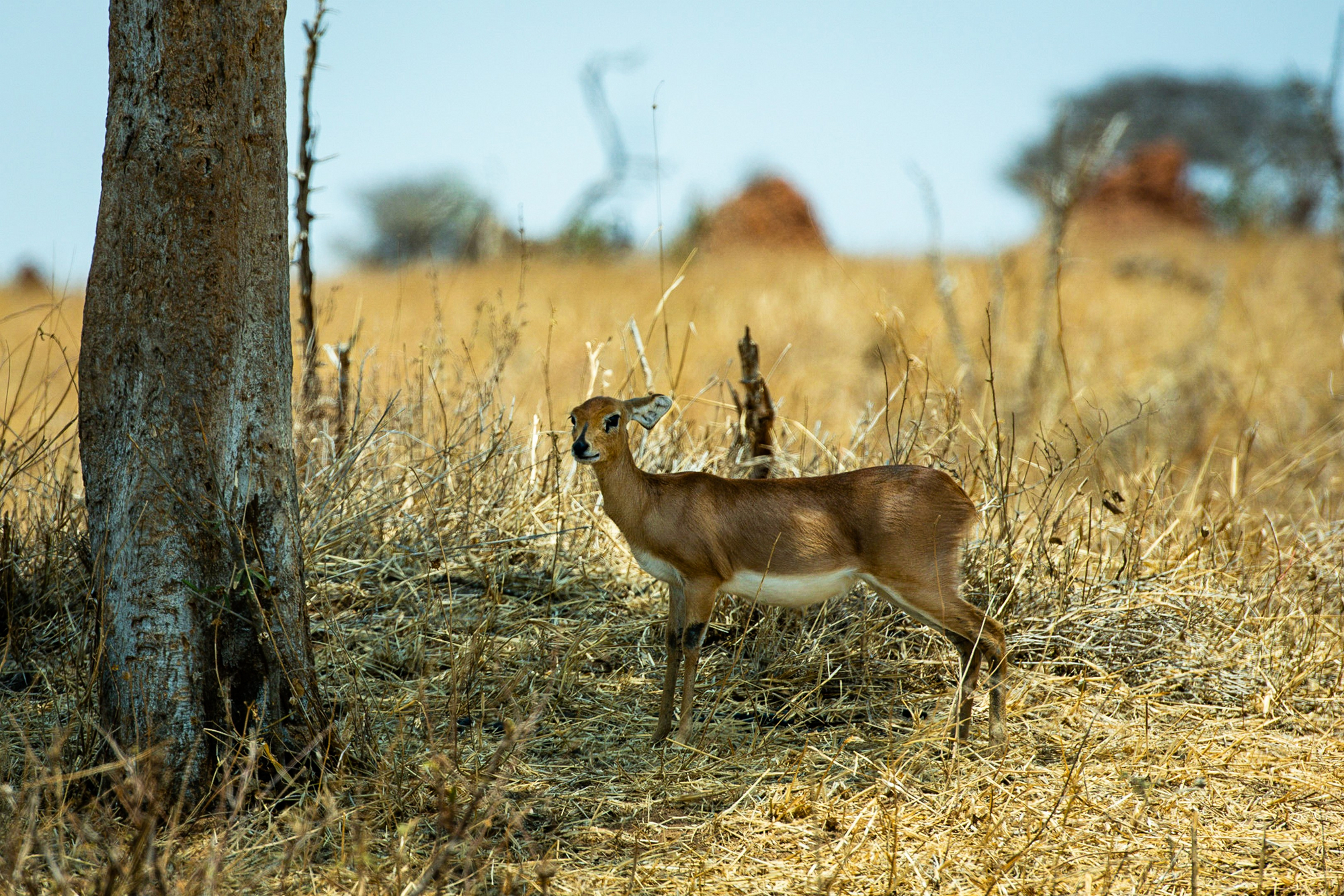 Raubtiere: Regelmäßig vorkommend sind Löwen, Leoparden und Tüpfelhyänen. Geparden sind in offeneren Bereichen möglich, jedoch weniger häufig als in Teilen der Serengeti. Schabrackenschakale sind verbreitet.