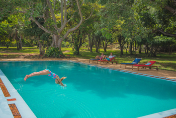 Die Lodge bietet 10 Gästevillen mit geschwungenem Grundriss. Darunter befinden sich 4 Villen mit Doppelbetten, 4 mit zwei Einzelbetten, eine Honeymoon-Villa und eine Familienvilla. Jede Villa verfügt über eine private Veranda, ein grasbewachsenes Dach für natürliche Kühlung, zwei Waschbecken, eine Badewanne, eine Dusche, ein WC sowie fließendes Kalt- und Warmwasser. Die Honeymoon-Villa bietet zusätzlich eine Außendusche. Alle Villen bieten einen Blick auf den See und sind mit Klimaanlage und Ventilatoren ausgestattet.
