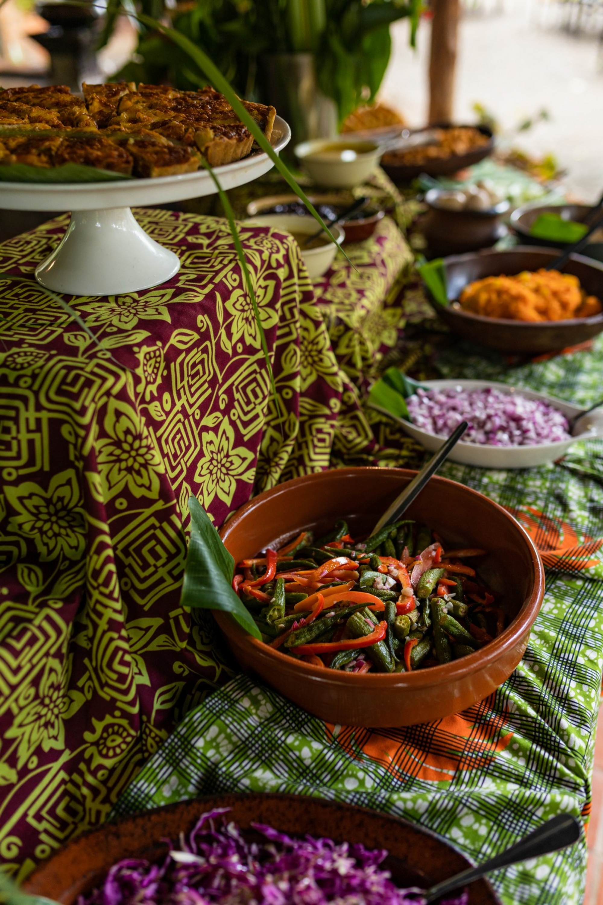 Das Rivertrees Country Inn bucht man auf Basis von Halbpension mit einem reichhaltigen kontinentalen Frühstück. Besondere Wünsche wie z. B. Pfannkuchen werden gerne erfüllt. Zum Abendessen, das ab 19:30 Uhr stattfindet, gibt es ein 4- oder 5-Gänge-Menü mit internationaler Küche mit einem afrikanischen Einschlag. Aufgrund der offenen Küche kann man den Köchen dabei zusehen, wie sie die Gerichte kreieren. Es ist auch ein Pizza-Ofen vorhanden. Man kann wetterabhängig im Innen- oder Außenbereich speisen. In einem separaten Gebäude gibt es auch eine Bar.