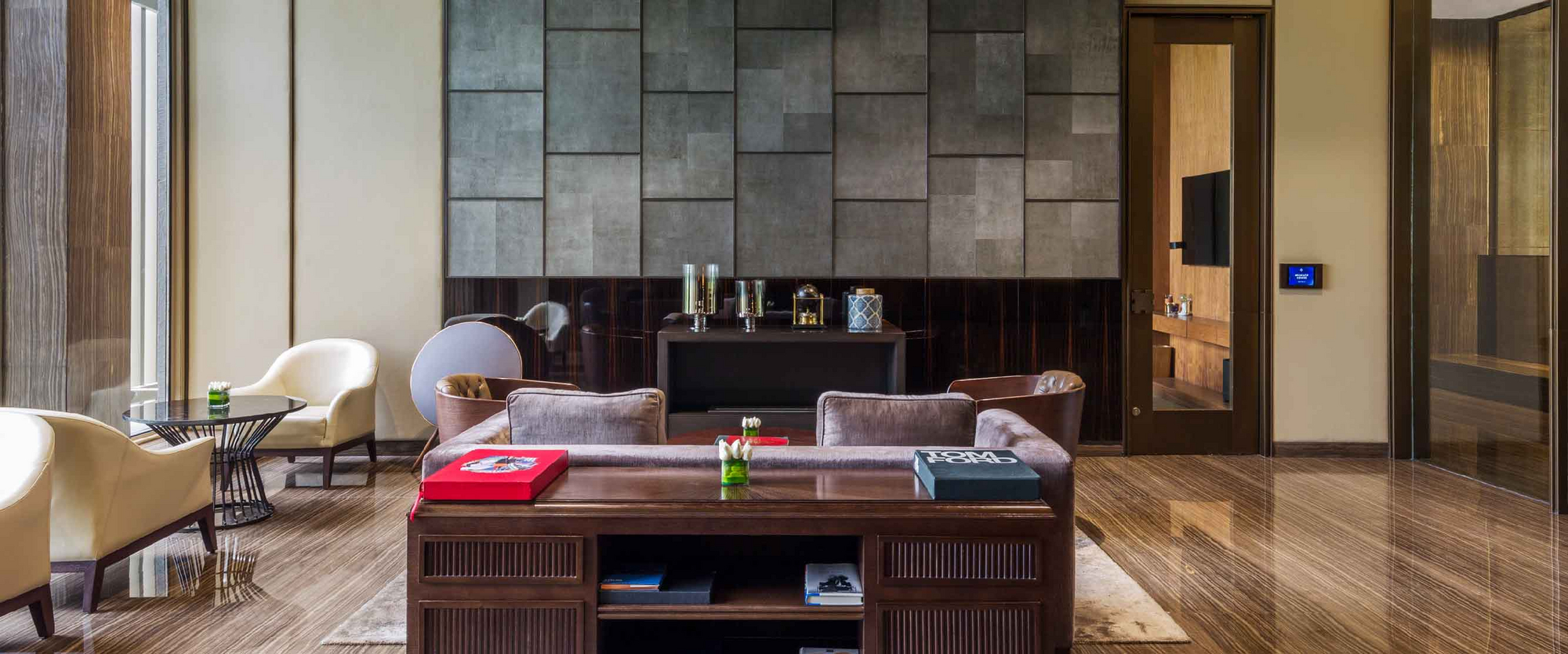 Die 216 Zimmer und Suiten sind modern und hochwertig eingerichtet mit Kingsize- oder Twin-Betten, Sitzbereich, Schreibtisch, Klimaanlage, Minibar, Safe und großen Fenstern mit Stadtblick. Die Badezimmer sind ausgestattet mit Dusche, teilweise Badewanne, WC, Waschbecken und fließendem Warm- und Kaltwasser. Höhere Zimmerkategorien bieten zusätzliche Wohnbereiche, größere Grundflächen und erweiterte Ausstattung.