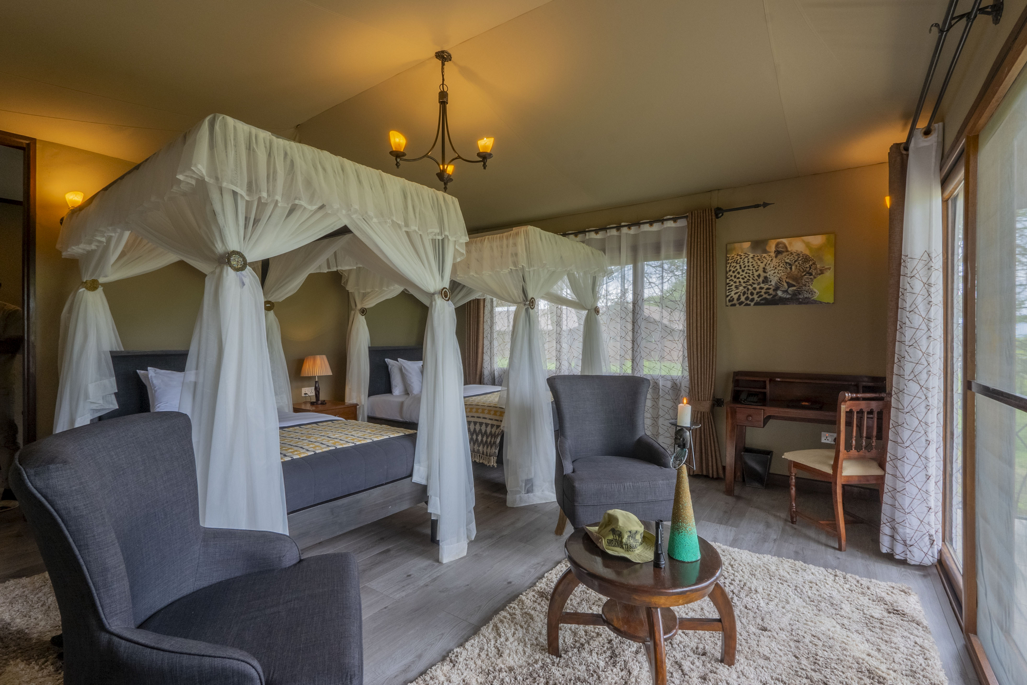 Pirschfahrten morgens und nachmittags im eigenen Safari-Fahrzeug mit Guide. Ganztagesausflüge mit Lunchpaket möglich. Schwerpunkt auf Tierbeobachtung, besonders Raubtiere und Migration. Nachtfahrten und Walking Safaris nicht erlaubt (im Nationalpark nicht gestattet). Fotografie-orientierte Safaris auf Anfrage. Aktivitäten sind inklusive, Anzahl der Gäste pro Fahrzeug wird auf sechs limitiert.