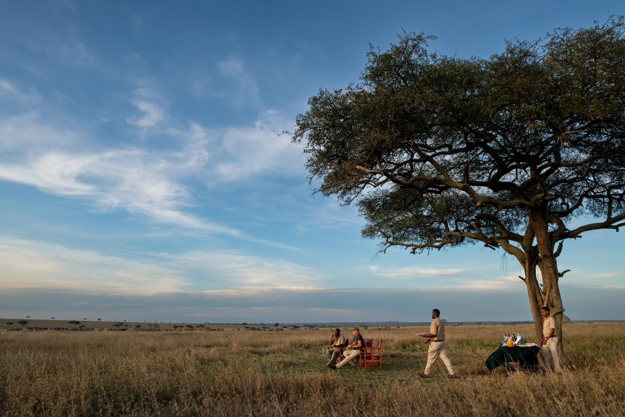 Tansania, Zentral-Serengeti, nahe den Soit Le Motonyi- und Sametu-Ebenen. Die Lage am östlichen Rand der Seronera-Region erlaubt frühe Wildbeobachtungen abseits stark frequentierter Pisten. Offenes Grasland mit verstreuten Felsformationen (Kopjes) und Akazien. Kein anderes Camp in direkter Nähe.