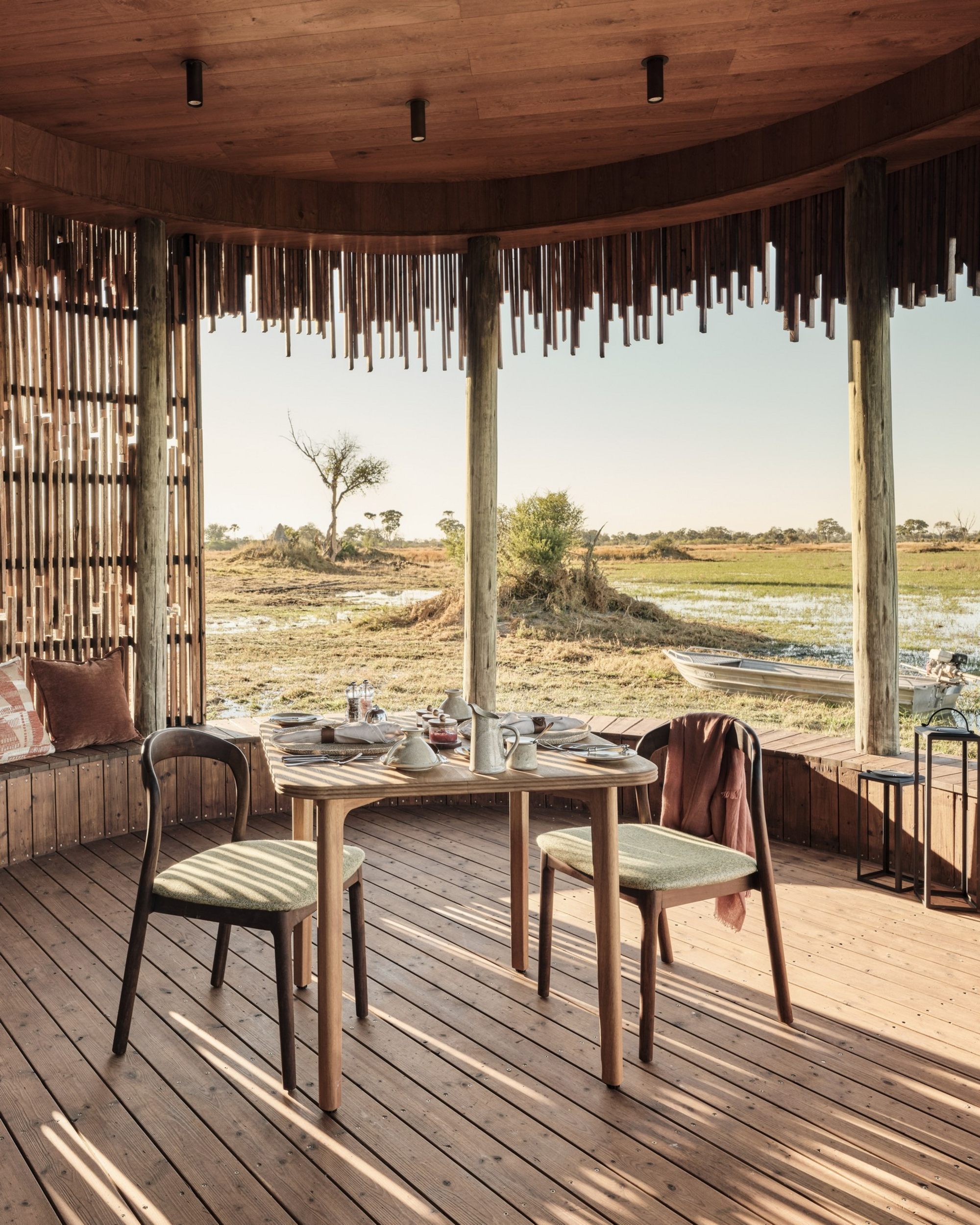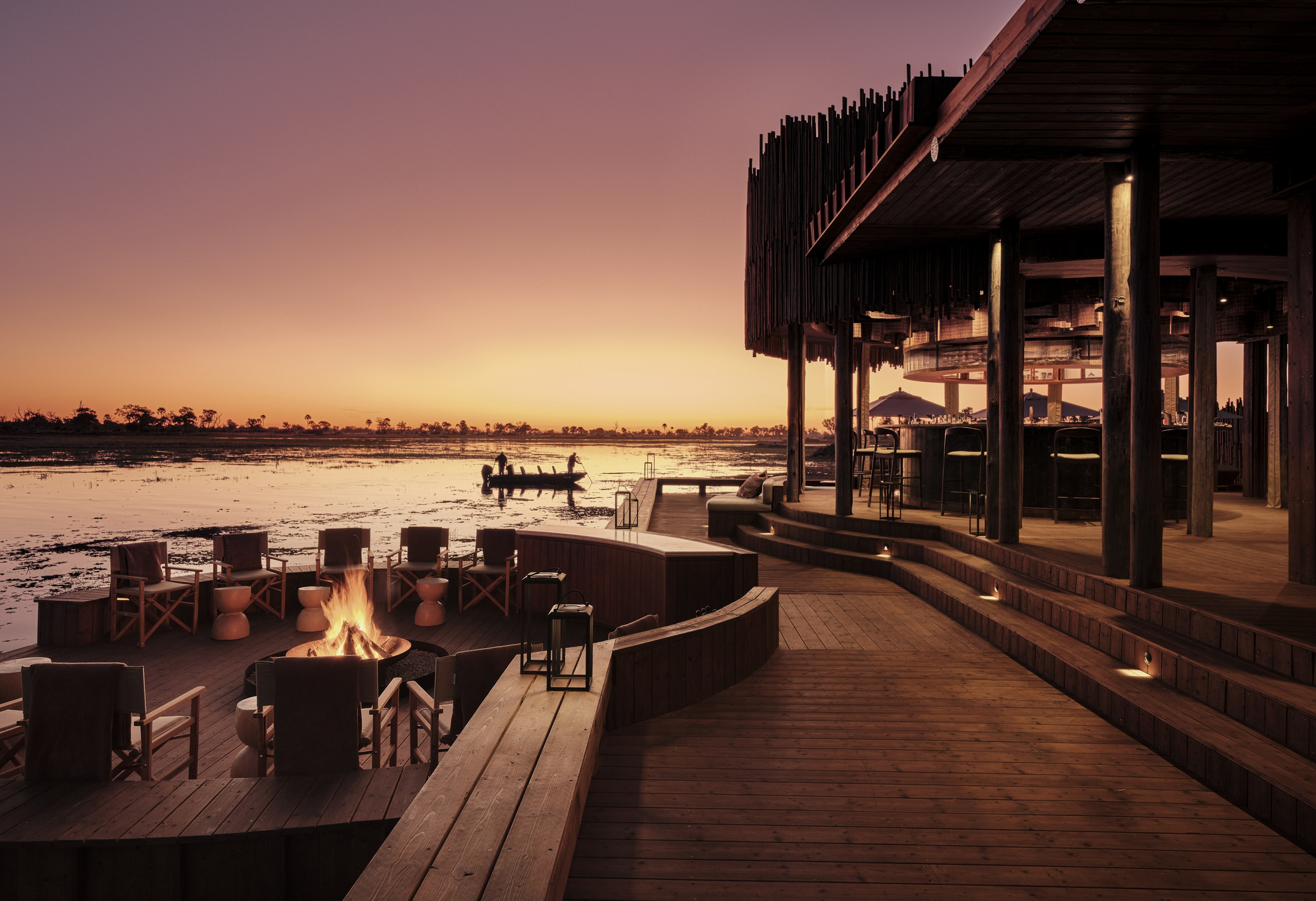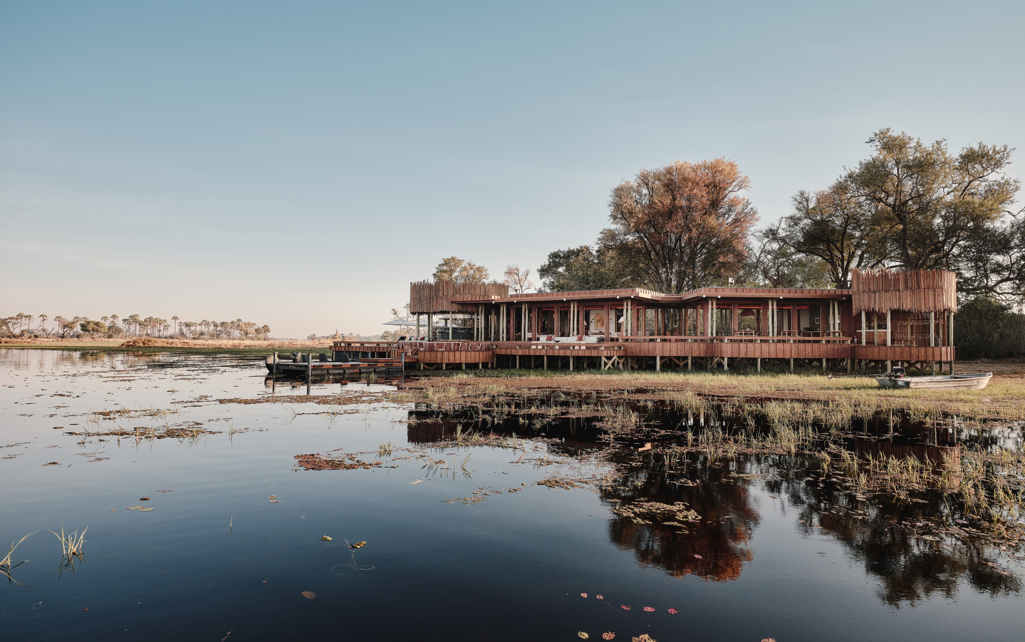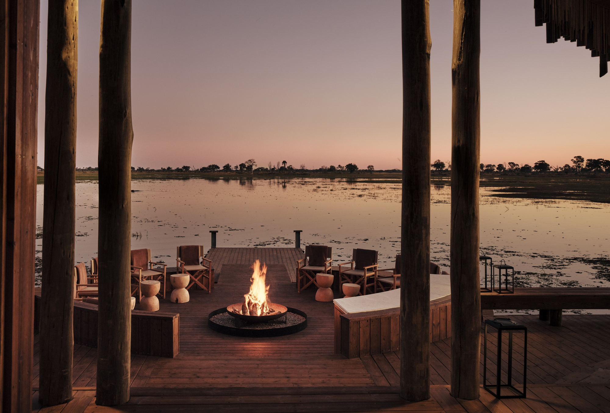 Das Sanctuary Baines Camp liegt stimmungsvoll unter Bäumen am Schilfgürtel des Boro River. Es ist 2025 vollständig neu gebaut worden und erscheint nun voller Eleganz. Luxuriöse Suiten mit Betten und Sunken Lounges auf den privaten Veranden bieten eine entspannte Atmosphäre.