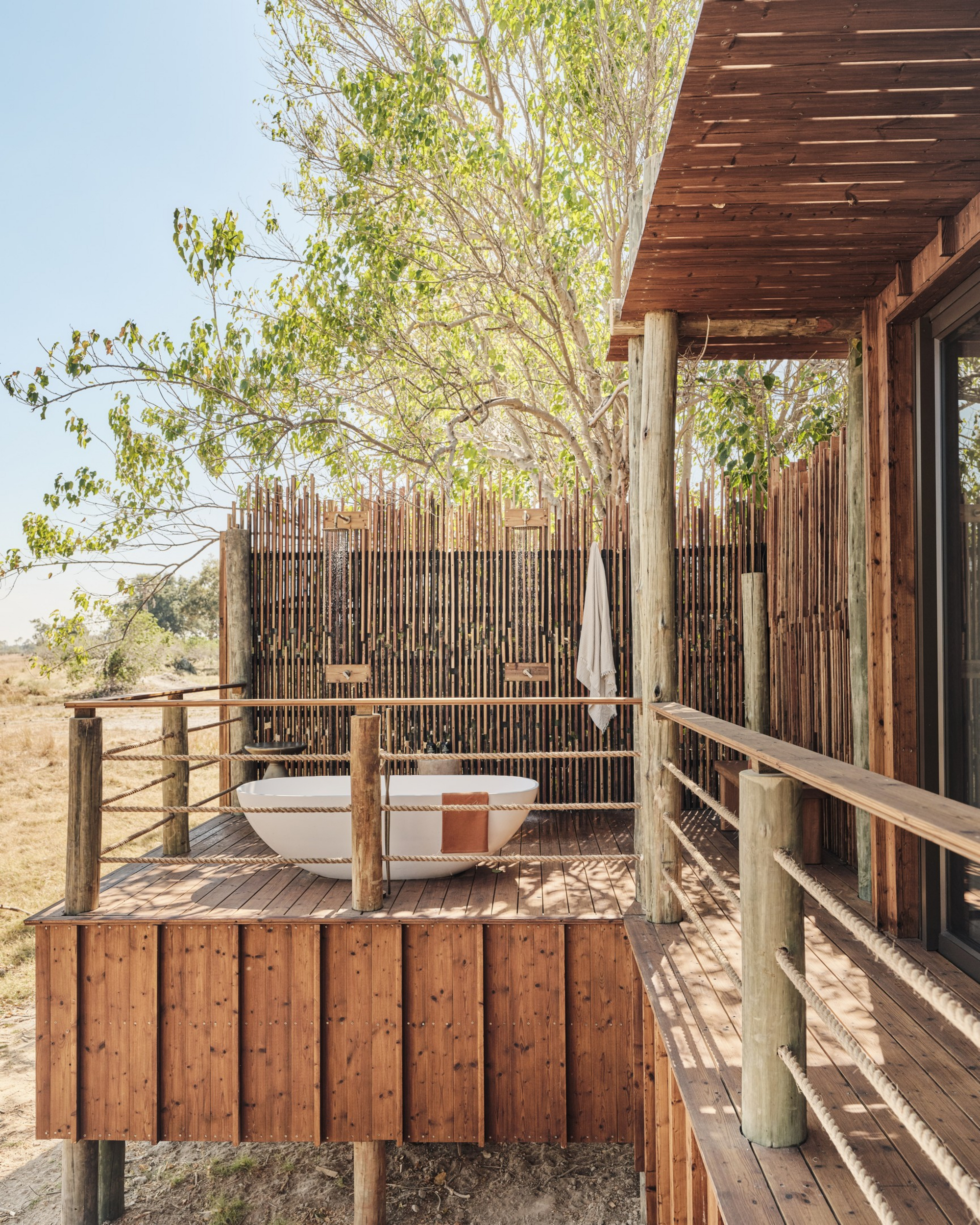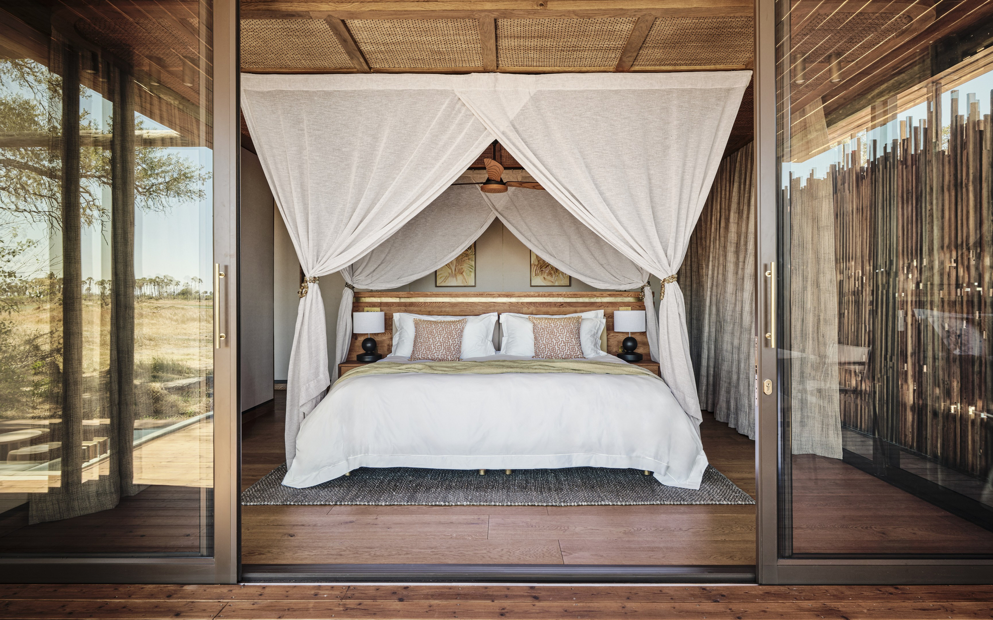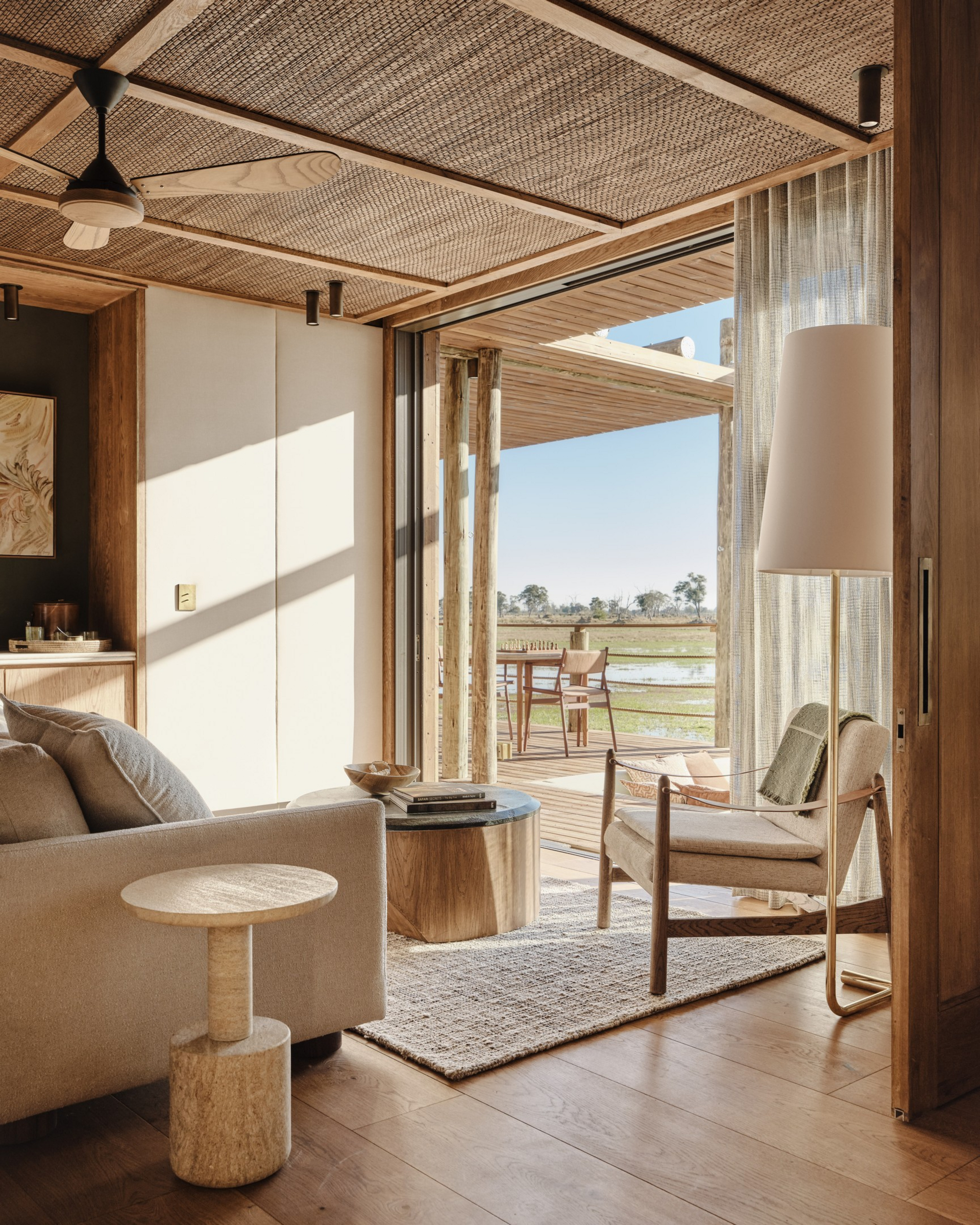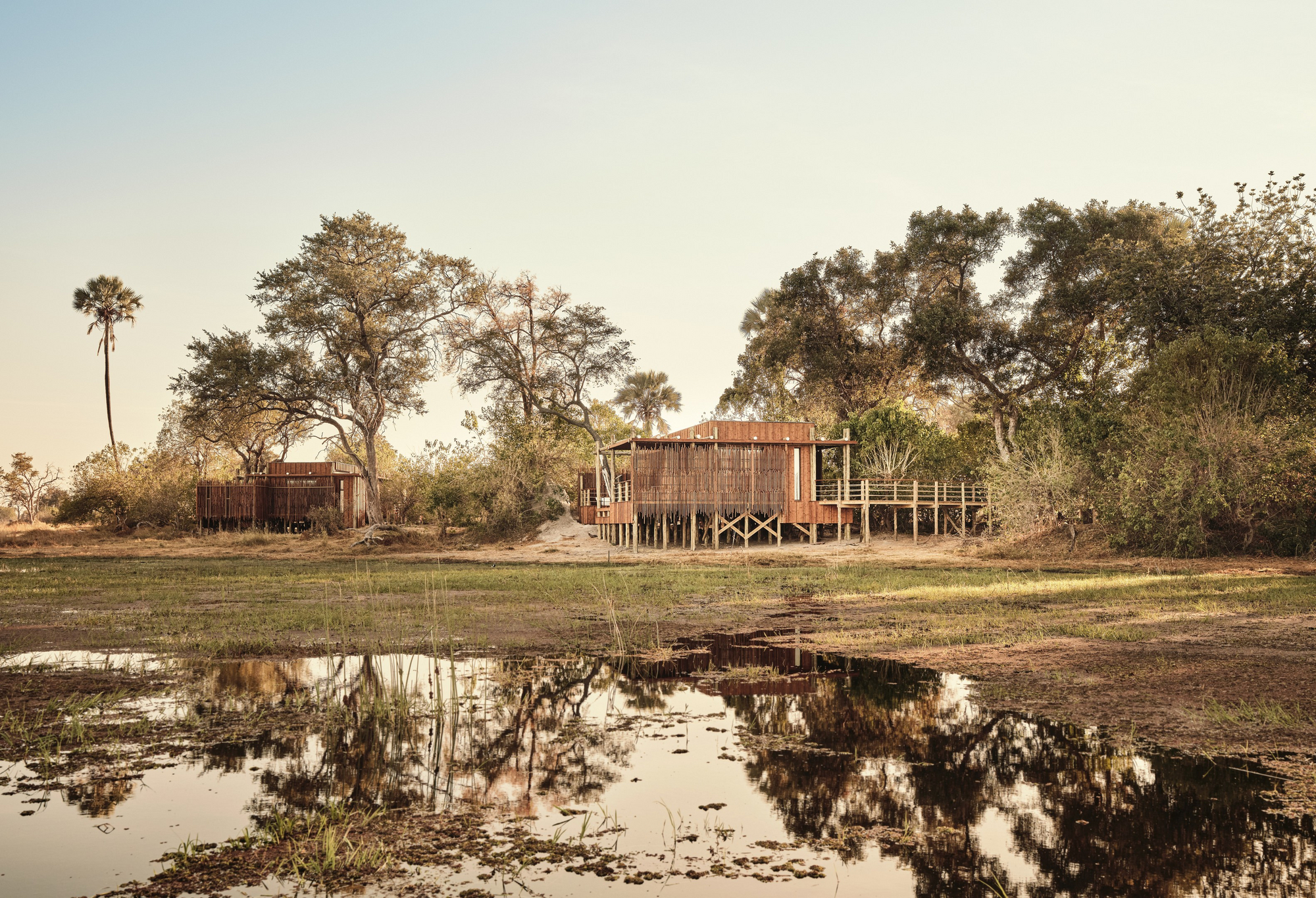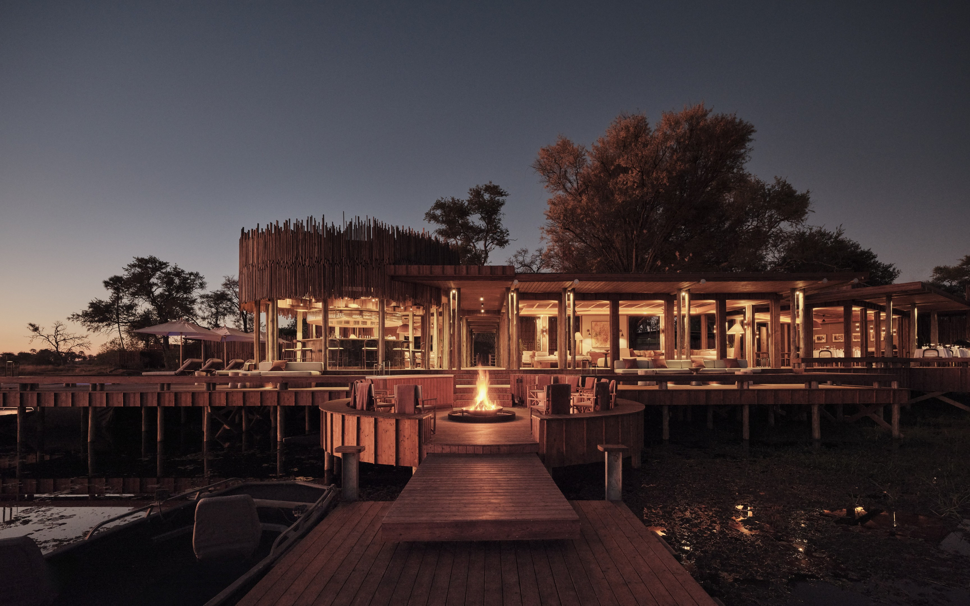 Das Sanctuary Baines Camp liegt stimmungsvoll unter Bäumen am Schilfgürtel des Boro River. Es ist 2025 vollständig neu gebaut worden und erscheint nun voller Eleganz. Luxuriöse Suiten mit Betten und Sunken Lounges auf den privaten Veranden bieten eine entspannte Atmosphäre.