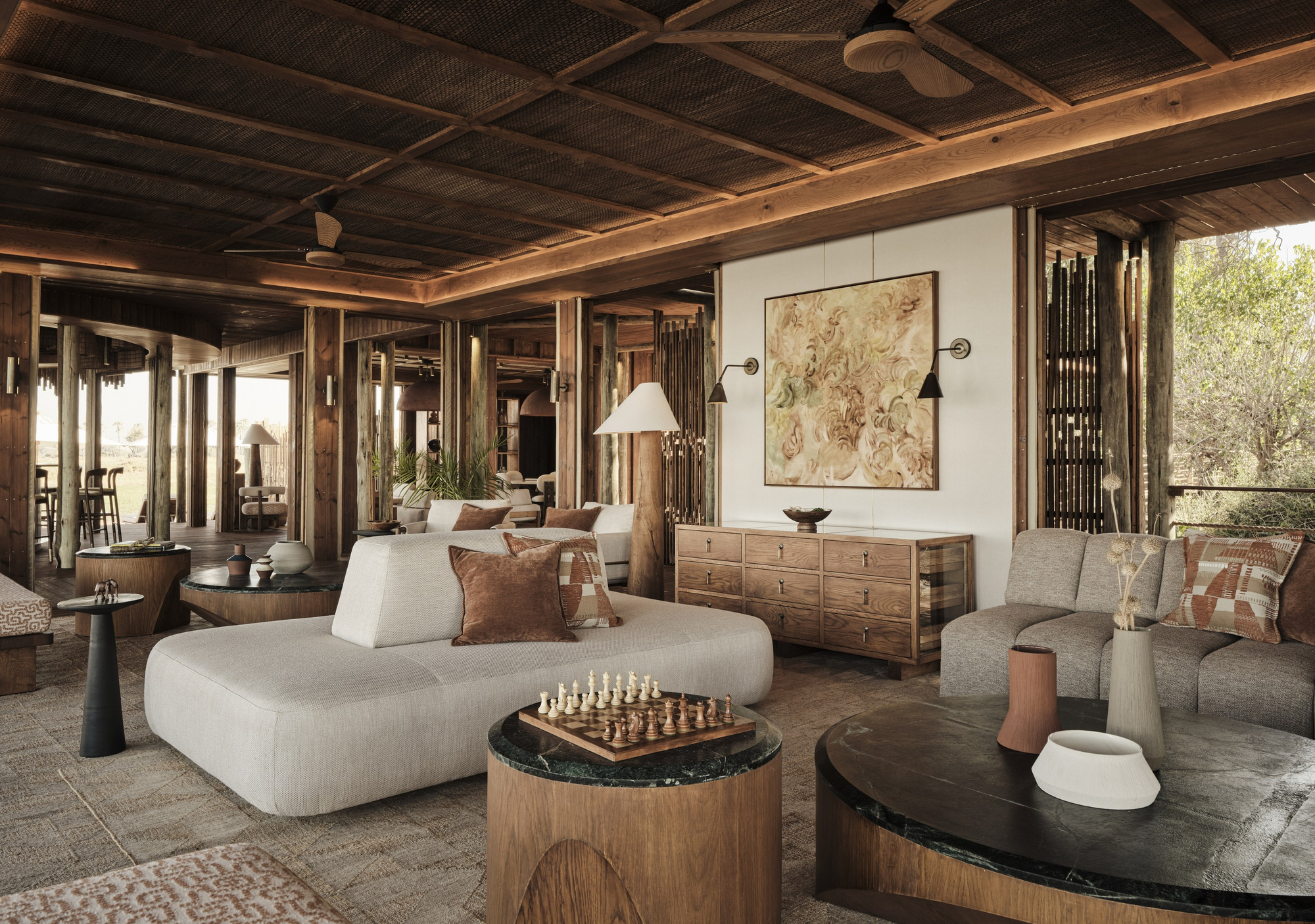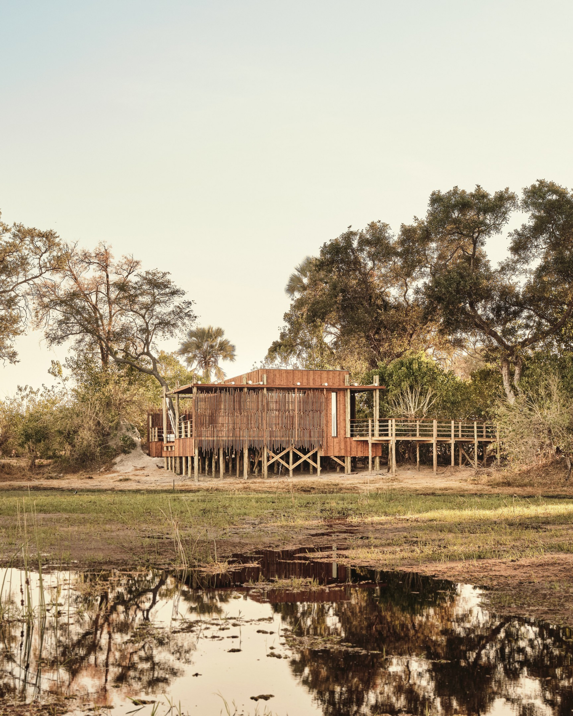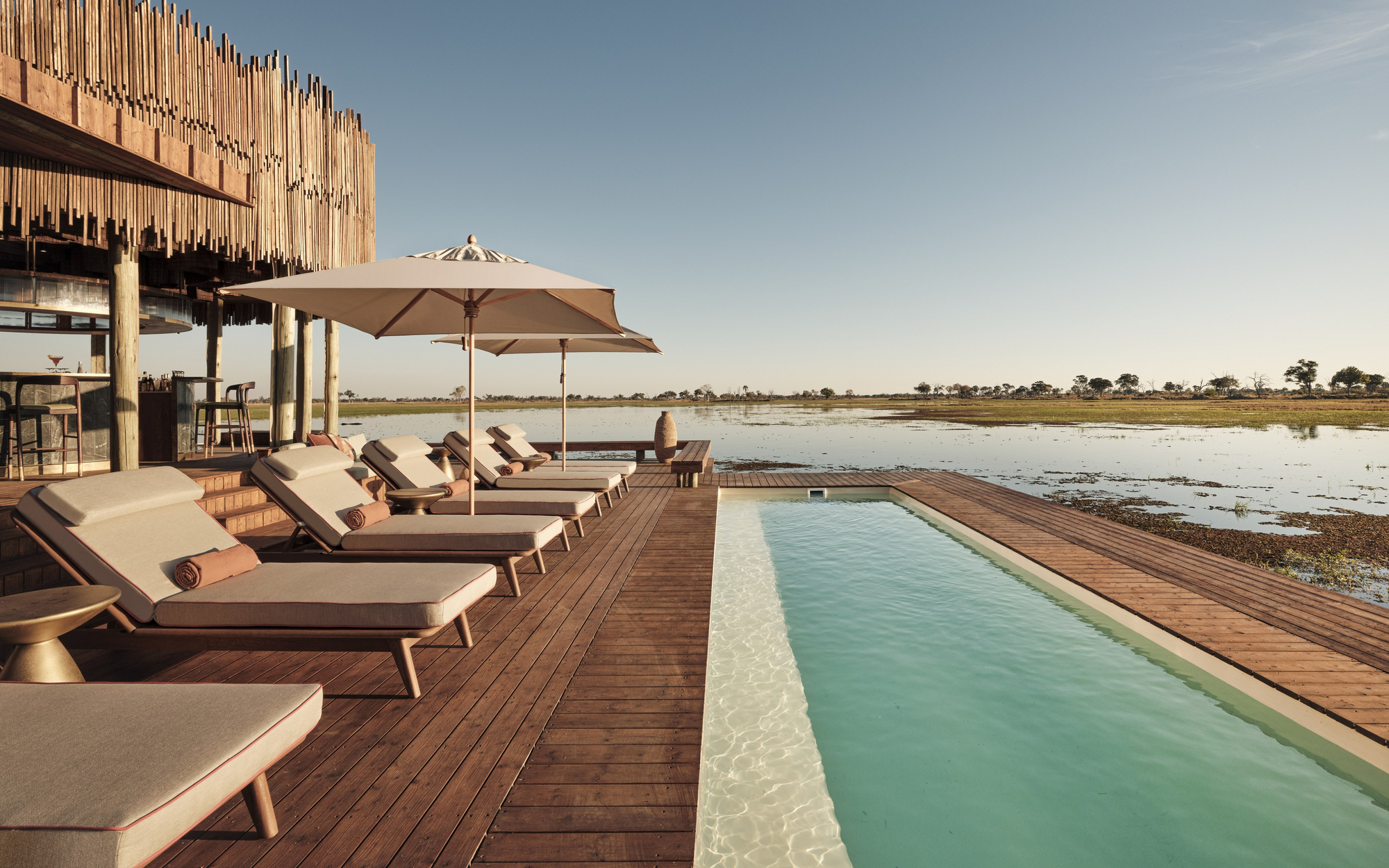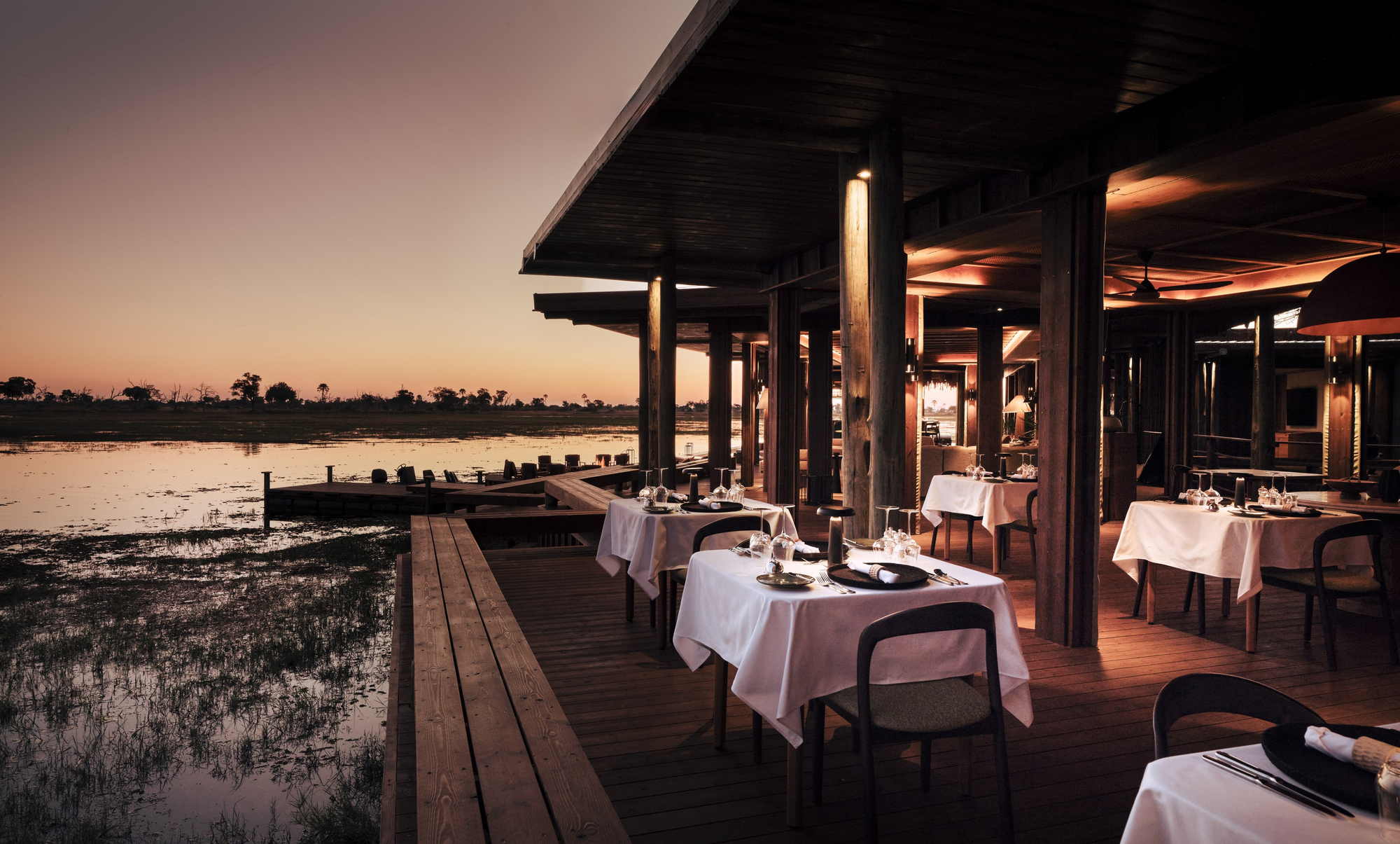 Das Sanctuary Baines Camp liegt stimmungsvoll unter Bäumen am Schilfgürtel des Boro River. Es ist 2025 vollständig neu gebaut worden und erscheint nun voller Eleganz. Luxuriöse Suiten mit Betten und Sunken Lounges auf den privaten Veranden bieten eine entspannte Atmosphäre.