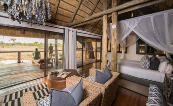 Die Savute Safari Lodge verfügt über 12 geräumige, reetgedeckte Gästechalets. Diese wurden direkt am Savuti-Ufer auf erhöhten, hölzernen Plattformen errichtet. Die luxuriöse Einrichtung beinhaltet einen Schreibtisch, einen Sessel, einen Kaffeetisch und ein Bad mit Dusche, WC und Waschbecken. Fließendes Wasser ist kalt und warm vorhanden. Jede Unterkunft hat eine private Veranda mit bequemen Sitzgelegenheiten und freiem Ausblick auf den Savuti-Kanal.