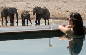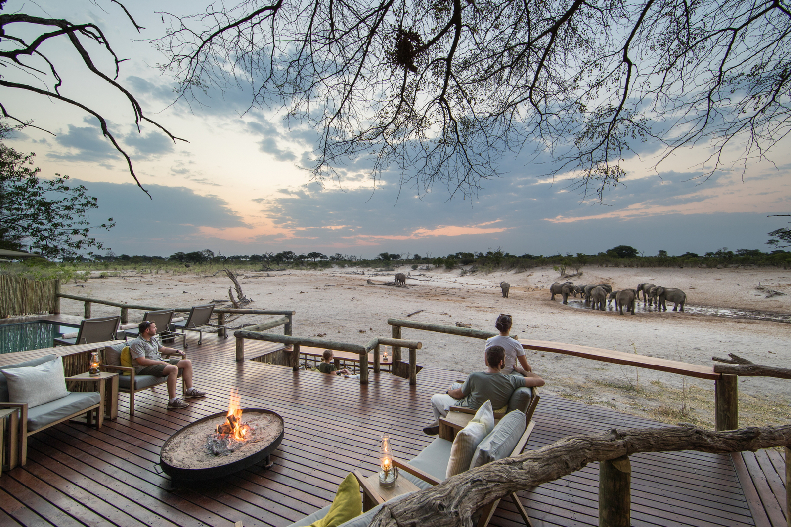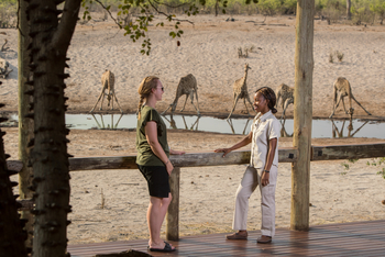 Die Chalets Nr. 8 und 9 bieten den besten Blick auf das Wasserloch.