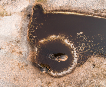 August bis Oktober sind die heißen Monate. Es ist sehr trocken, die Vegetation ist abgefressen und verdorrt.