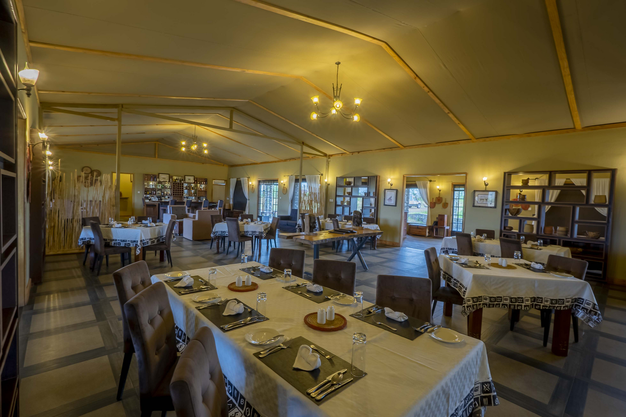 Das Serengeti Mara River Camp verfügt über einen zentralen Speise- und Loungebereich, in dem Gäste Mahlzeiten und Ruhe genießen können. Es gibt Decks bzw. Veranden zur Aussicht auf die Natur sowie WiFi im Campbereich.