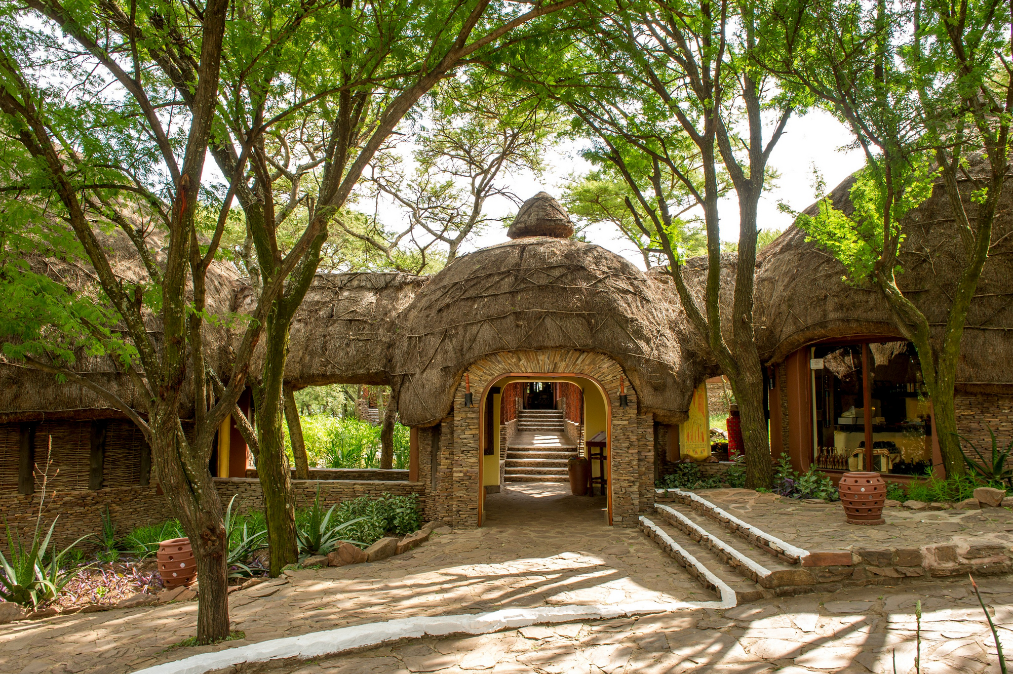 Rezeption mit Souvenirshop, Lounge und Bar, hoch dominiertes Dining-Rondavel mit Panorama-Terrasse, Massage-/Spa-Räume, Infinity-Pool mit Blick über die Ebene, WLAN in öffentlichen Bereichen, täglicher Wäscheservice, Rund-um-die-Uhr-Service.