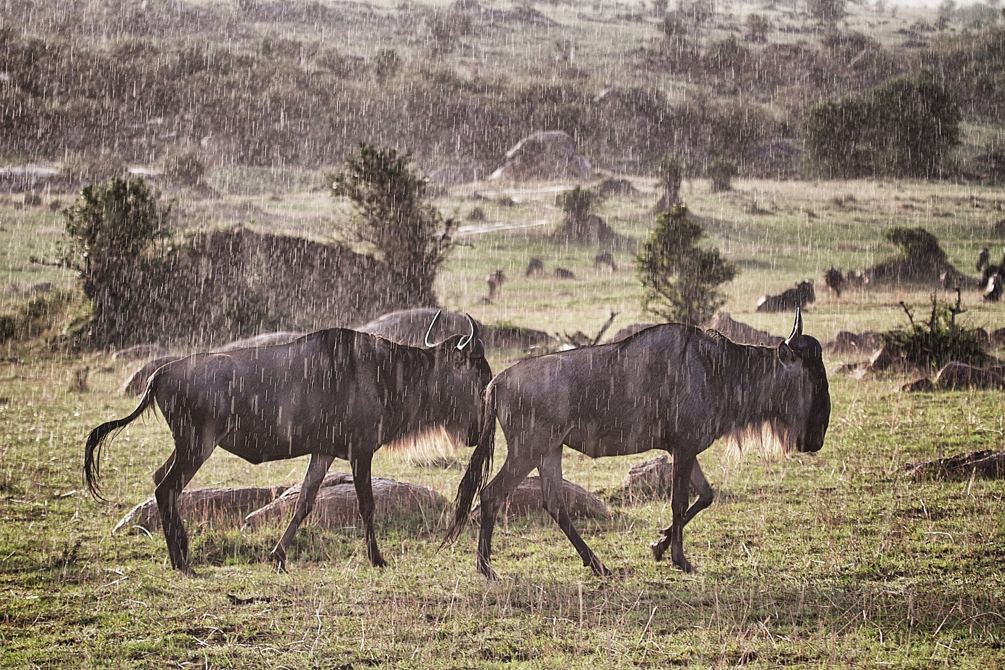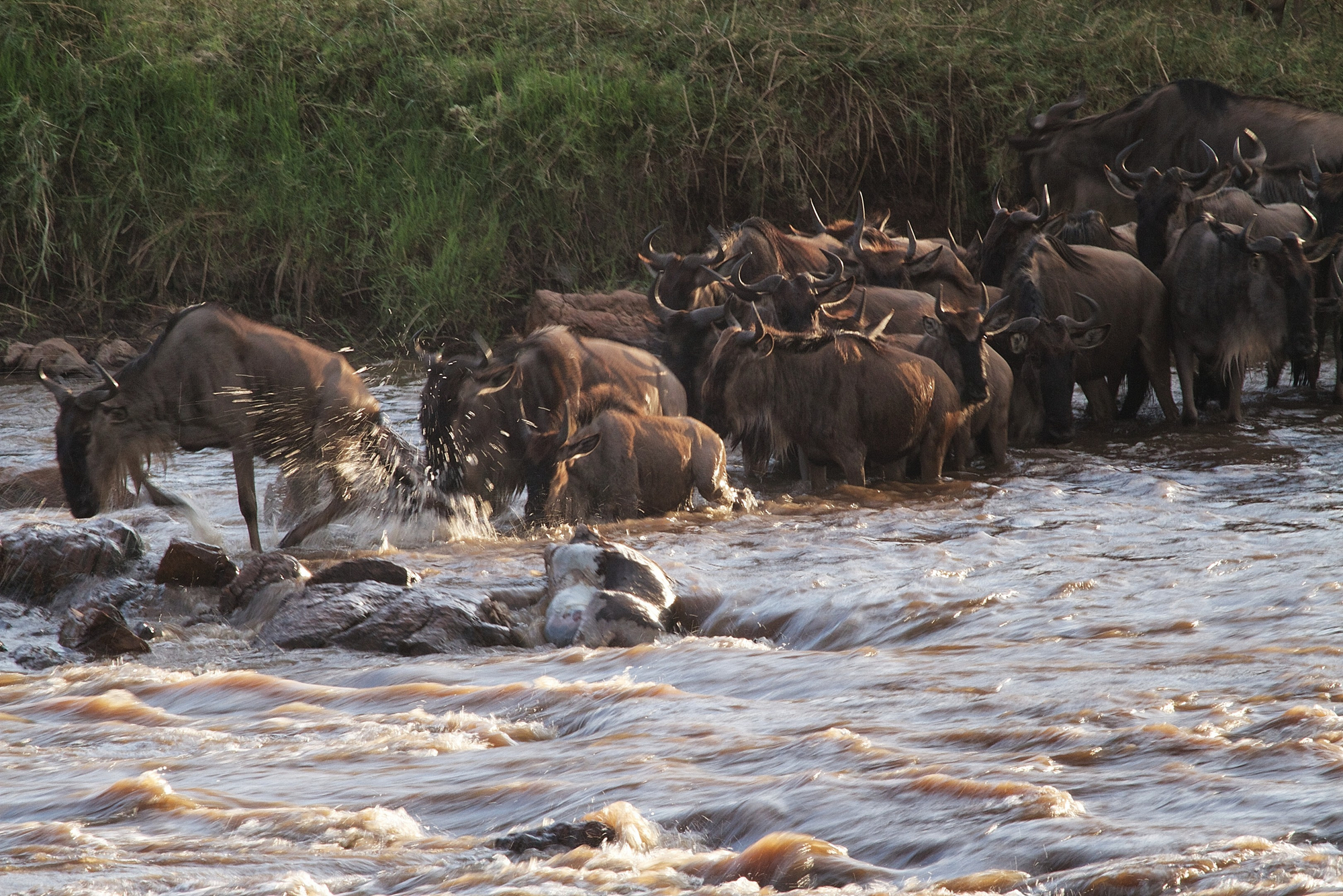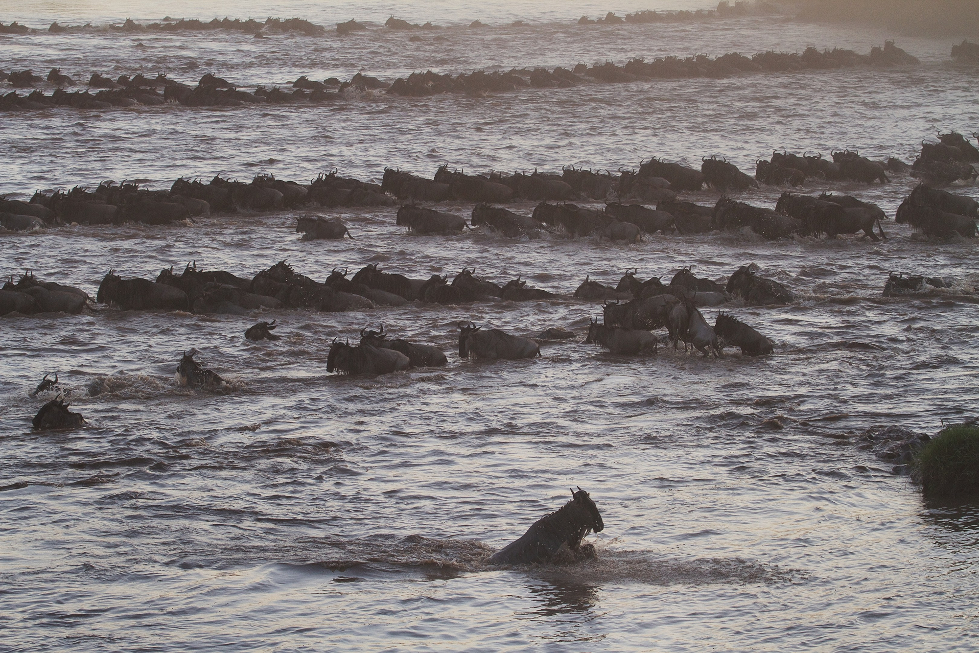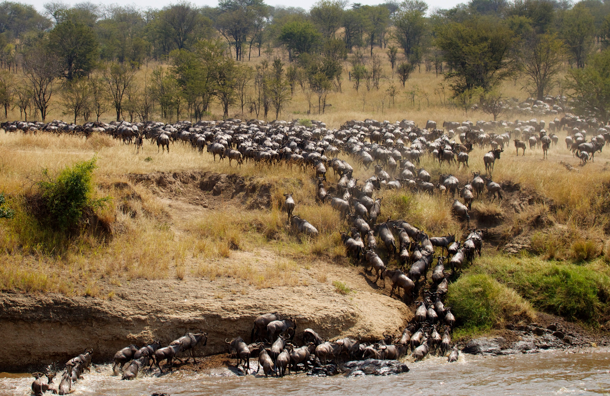 Campstandort saisonal: Nord-Serengeti von Juli bis Mitte November (Migration). Tagsüber 25–30 °C, nachts ca. 15 °C. Beste Beobachtungszeit während der Gnu-Flussüberquerungen.