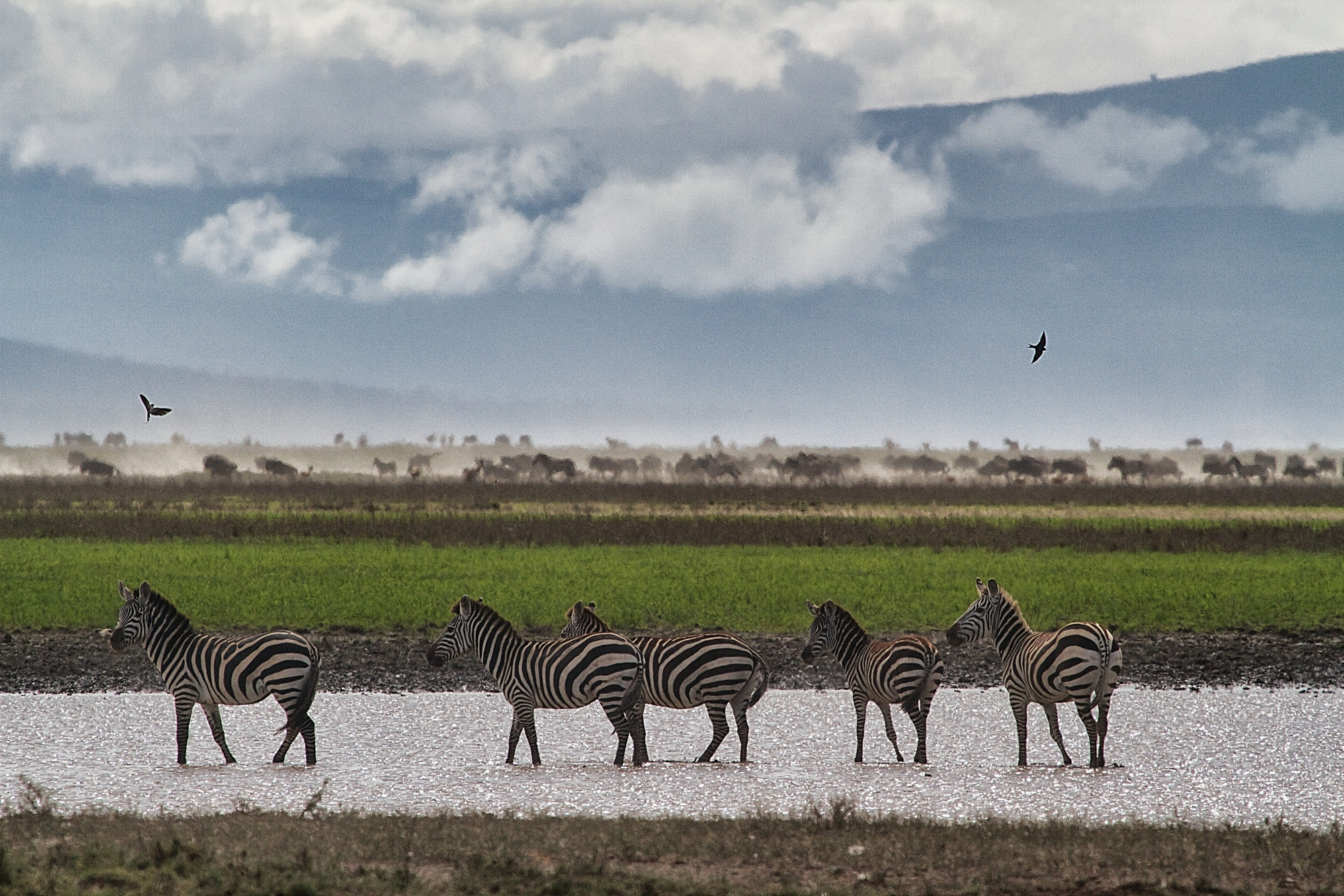 Direkt im Lamai Wedge mit häufigen River Crossings: Gnus, Zebras, Flusspferde, Krokodile; begleitende Raubtiere wie Löwen, Leoparden, Geparde; Elefanten, Gazellen, Greifvögel und mehr. Bewohner und Migrationstiere dicht am Camp.