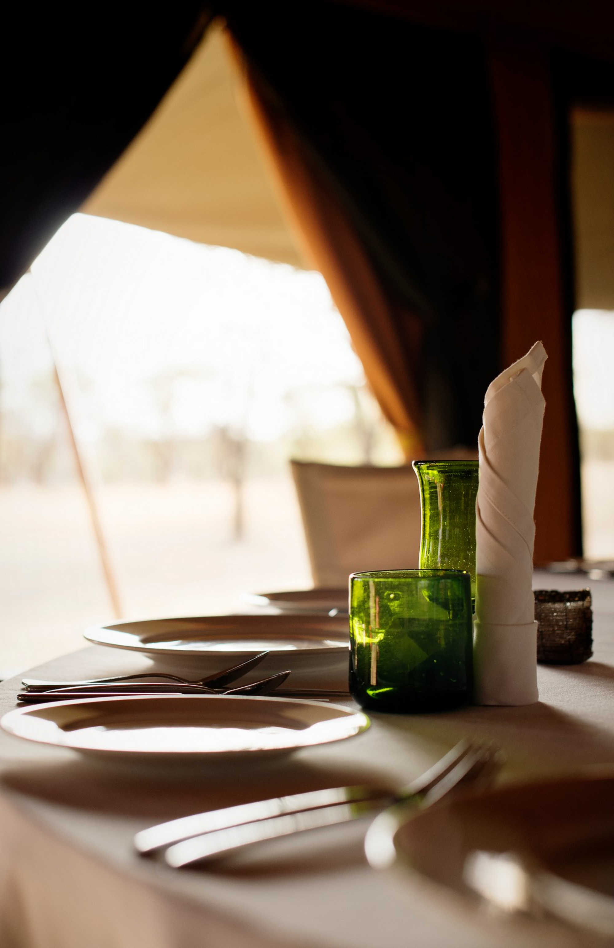 Vollpension mit Frühstück, Lunch und Dinner im Messzelt („en famille“); Getränke inklusive Softdrinks und Tee/Kaffee, alkoholische Getränke je nach Angebot. Sundowner, Picnic und Bush-Breakfasts integrativ organisiert.