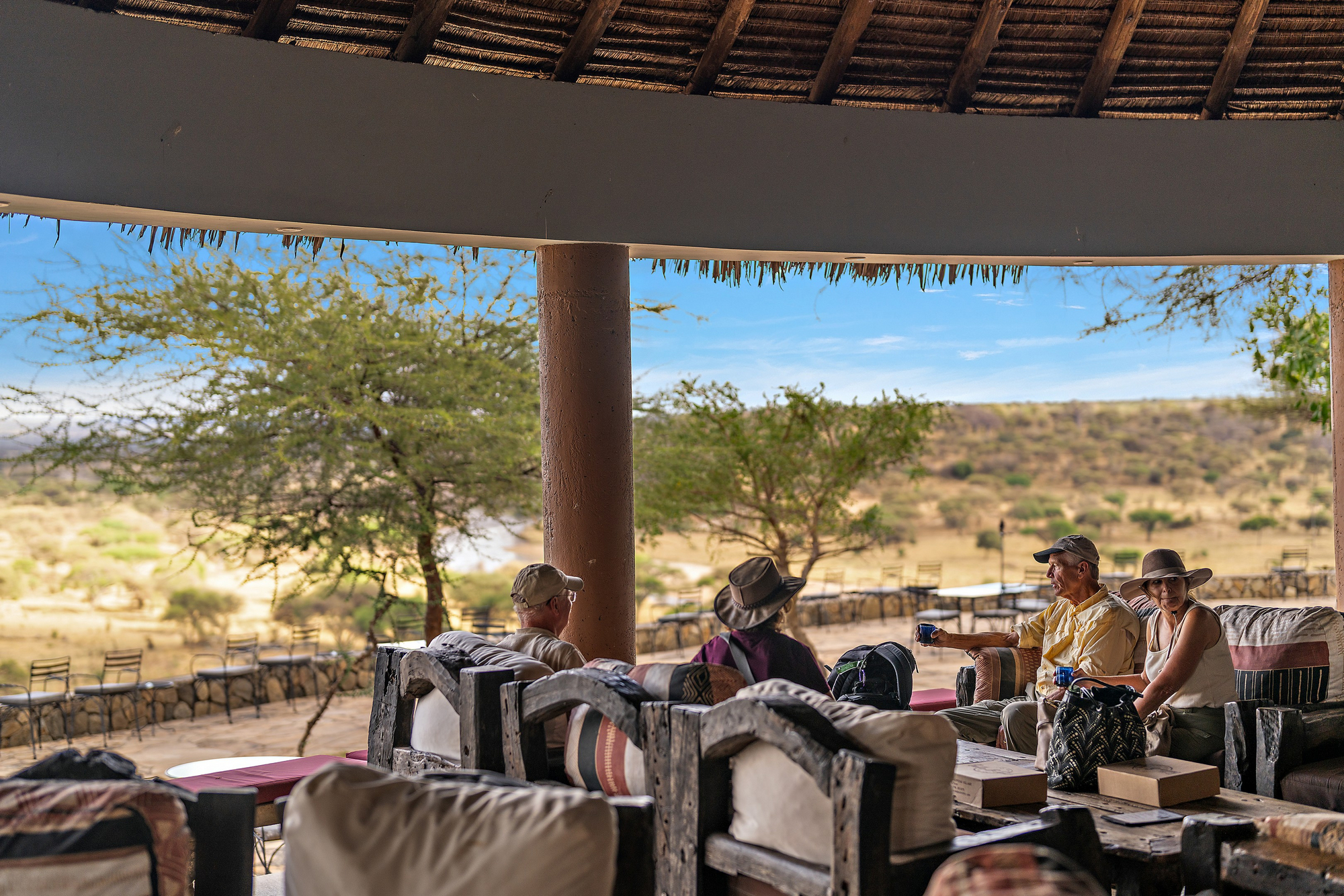 Im Hauptbereich der Tarangire Safari Lodge gibt es einen offenen Speisesaal, eine große, überdachte Lounge mit Sesseln und eine großzügige Panorama-Terrasse mit Ausblick auf die umgebende Wildnis und den Tarangire Fluss, an dem diverse Tiere wie Elefanten regelmäßig trinken. Ein Swimmingpool mit Sonnenschirmen und Liegen sorgt für die willkommene Erfrischung. Ein flaches Planschbecken für Kinder ist auch vorhanden. Gegen separate Bezahlung kann man auf einer Holzplattform, dem Patuliva, private Sundowner genießen oder Massagen in Anspruch nehmen. Im Bereich der Bar gibt es zudem eine Ladestation für elektronische Geräte und einen WLAN-Zugang. Die Gebäude sind ebenerdig erreichbar. Man kann einen Wäscheservice, der extra bezahlt werden muss, nutzen.