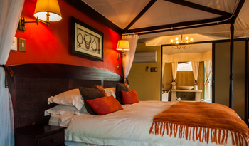 Das The Elephant Camp hat 12 luxuriöse Gästezelte für bis zu 24 Gäste. Von den Gästezelten aus hat man Ausblick auf den Victoria Falls National Park und kann auch die Gischt der Viktoriafälle sehen. Alle Zelte verfügen jeweils über ein Doppelbett, eine Lounge, Moskitoschutz, Ventilatoren, eine Klimaanlage, eine Minibar, 220-V-Steckdosen, eine Kaffee- und Teestation und ein großzügiges privates Bad mit Badewanne, Innen- und Außendusche, WC und Waschtisch. Es gibt fließendes kaltes und warmes Wasser. Im Außenbereich gehört jeweils eine eigene Veranda mit Plunge Pool zur Unterkunft. Im Preis ist ein Wäscheservice enthalten.