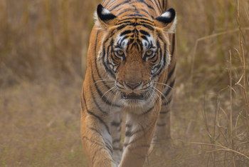 Bengalischer Tiger - einige der im Park lebenden Tiger haben eigene Namen und werden "Celebrity Tigers" genannt, weil ihre Präsenz sehr gut dokumentiert ist und über ihre Verhalten viel publiziert wurde.